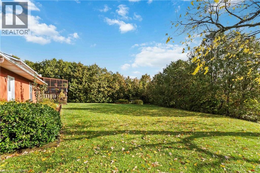 Quality built country property in the quaint, family friendly village of Onondaga in the County of Brant. Minutes away from Hamilton, Brantford and major highways, this 0.446 Acre property sits on a beautifully maintained lot with mature trees, a privacy wall of cedars covering most of the rear yard, and manicured gardens. This generous raised bungalow layout features 3 bedrooms on main floor, an updated eat in kitchen w/ sliding door leading to covered and screened in porch. The main level is completed by a warm inviting Living Room and a 4 piece bath. Downstairs boasts an inviting Family Room w/ electric fireplace, 3 piece bath with walk in shower, generous sized bonus room where the original garage was, and an abundance of storage. One of the stars of this show is the oversized 2+ Vehicle garage (added 1983) with a 220V outlet and is attached to the house and accessible from the inside and out - this is complemented by a generous workshop area to store just about anything. This home was custom built in 1976 and has been lovingly cared for by the same family since - pride of ownership is evidenced throughout. (id:64974)