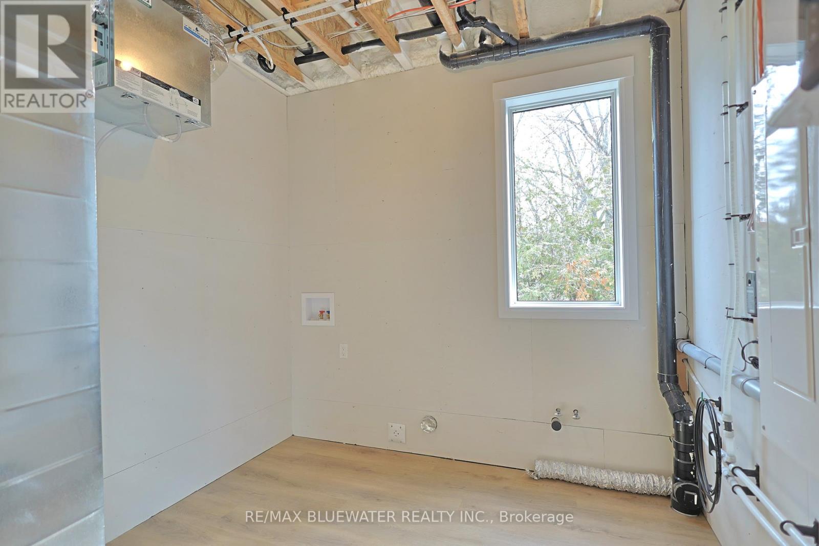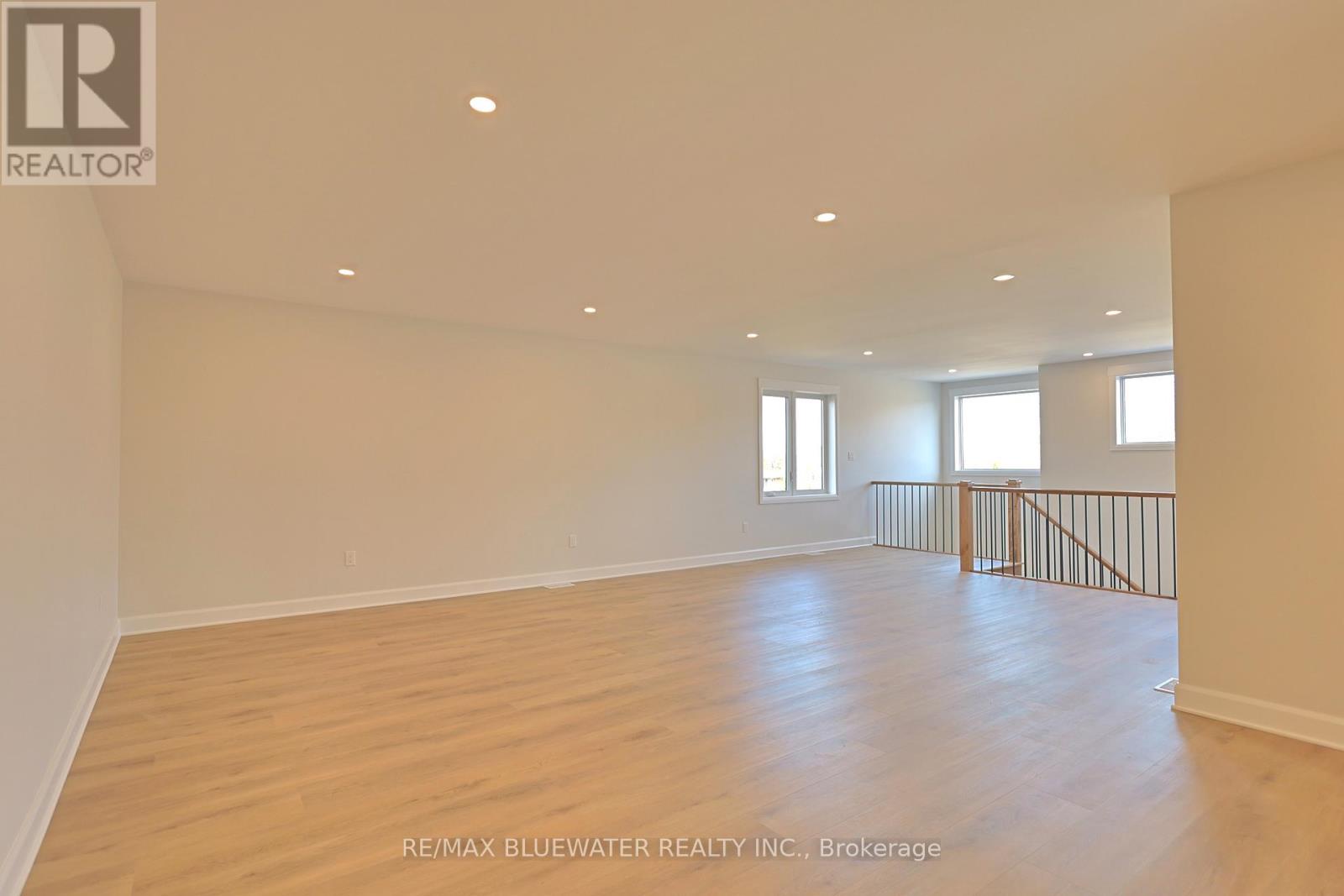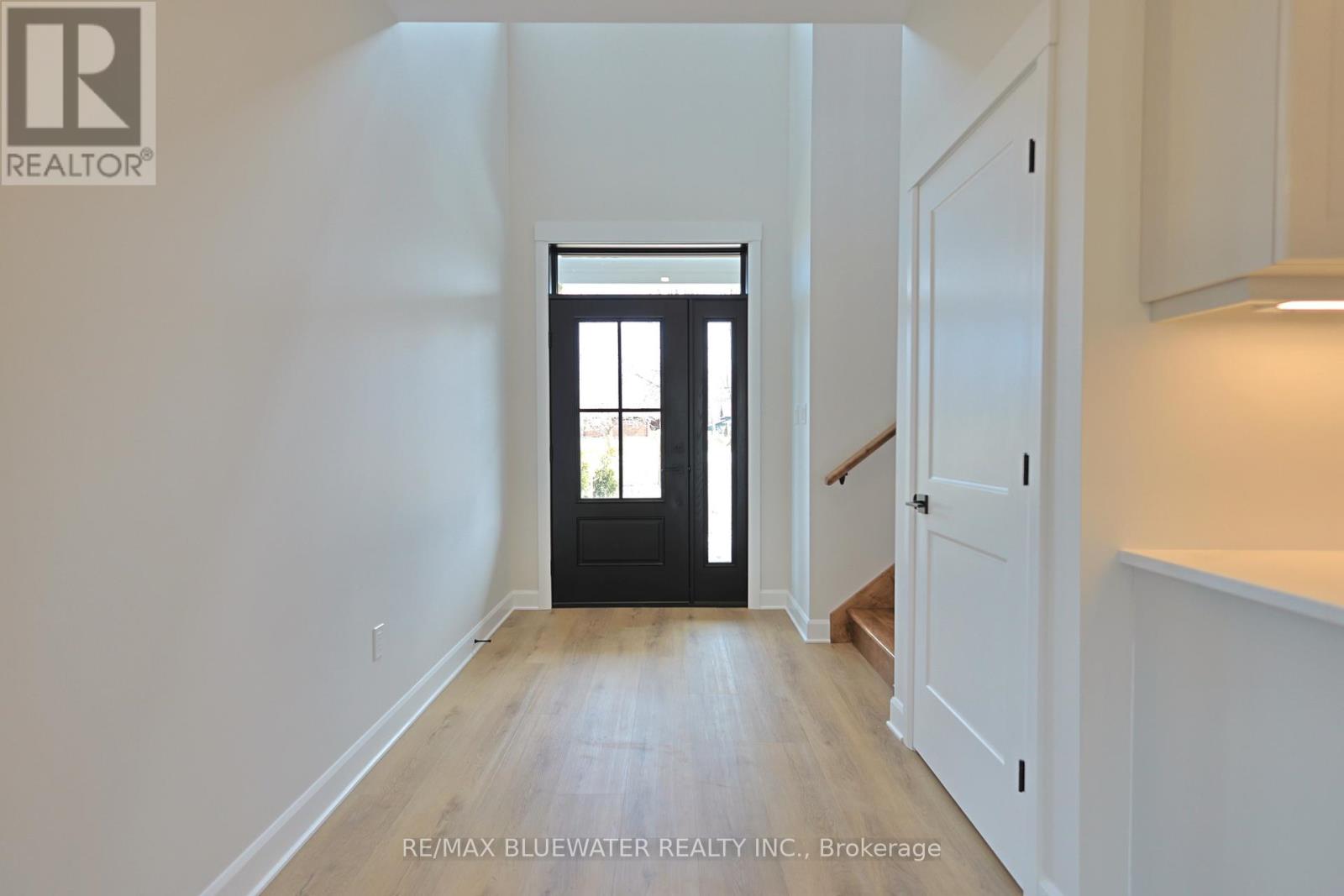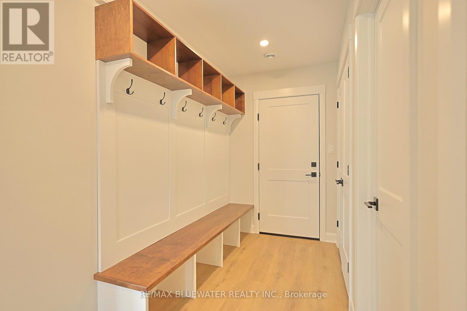 Are you searching for a lakeside property but nothing checks all the boxes? Take a look at this NEW BUILD home by Steeper Construction. Just steps to the beach, new construction, Tarion warranty, modern finishes, open concept design, covered front and back patio, low maintenance exterior and attached oversized garage. Located just north of Grand Bend at Bayview Subdivision this home is just steps to Lake Huron, the community playground and only 800 meters to the White Squirrel Golf Course. The exterior features hardie board siding with a board and batten finish on the main level complimented with horizontal siding on the upper level. Covered front entry with sitting area and a gravel walkway with landscaped gardens welcomes you to the property. Inside, the main floor features an open concept design with pot lighting, luxury vinyl plank flooring and a floor plan flowing with natural light. Two level foyer provides an entrance area that feels spacious. The kitchen features custom maple cabinetry with quartz countertops, island with contrasting wood finish and corner pantry. Spacious eating areas allows lots of room for friends and family to gather. Living room includes a gas insert fireplace on a white ship lap feature wall with patio doors leading to the covered patio. Main floor primary bedroom suite with walk in closet and access to the main floor bathroom, complete with tile shower walls and quartz countertops. Mudroom off the garage entrance with built in cubbies for organized storage above the bench seating for convenience. Bonus main floor laundry in the utility room with forced air gas furnace, on demand hot water heater and central air. Additional living space on the second level with a large family room, two additional bedrooms for guests or the kids and a full bathroom. Enjoy the back yard space of the large lot, Gas hookup so the BBQ is always ready to go and entertaining on the large covered concrete patio complete with wood ceiling and pot lighting. (id:64974)