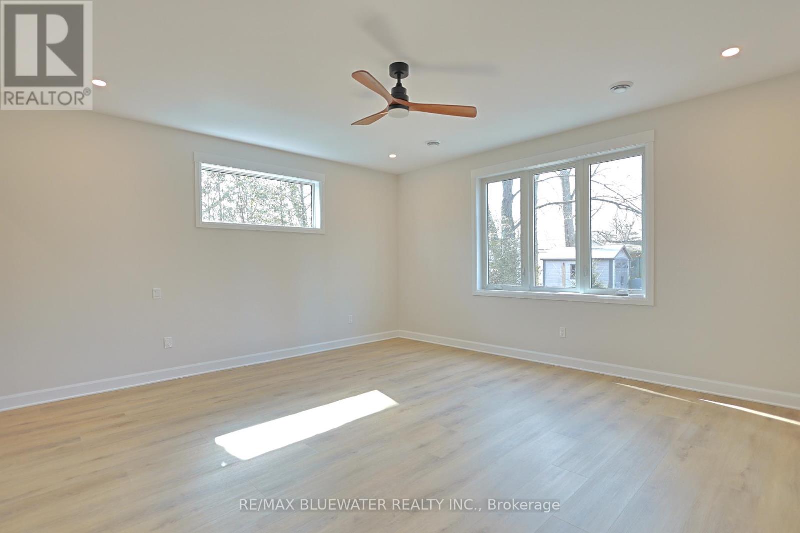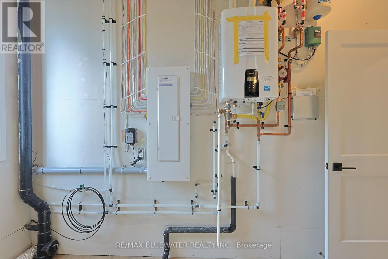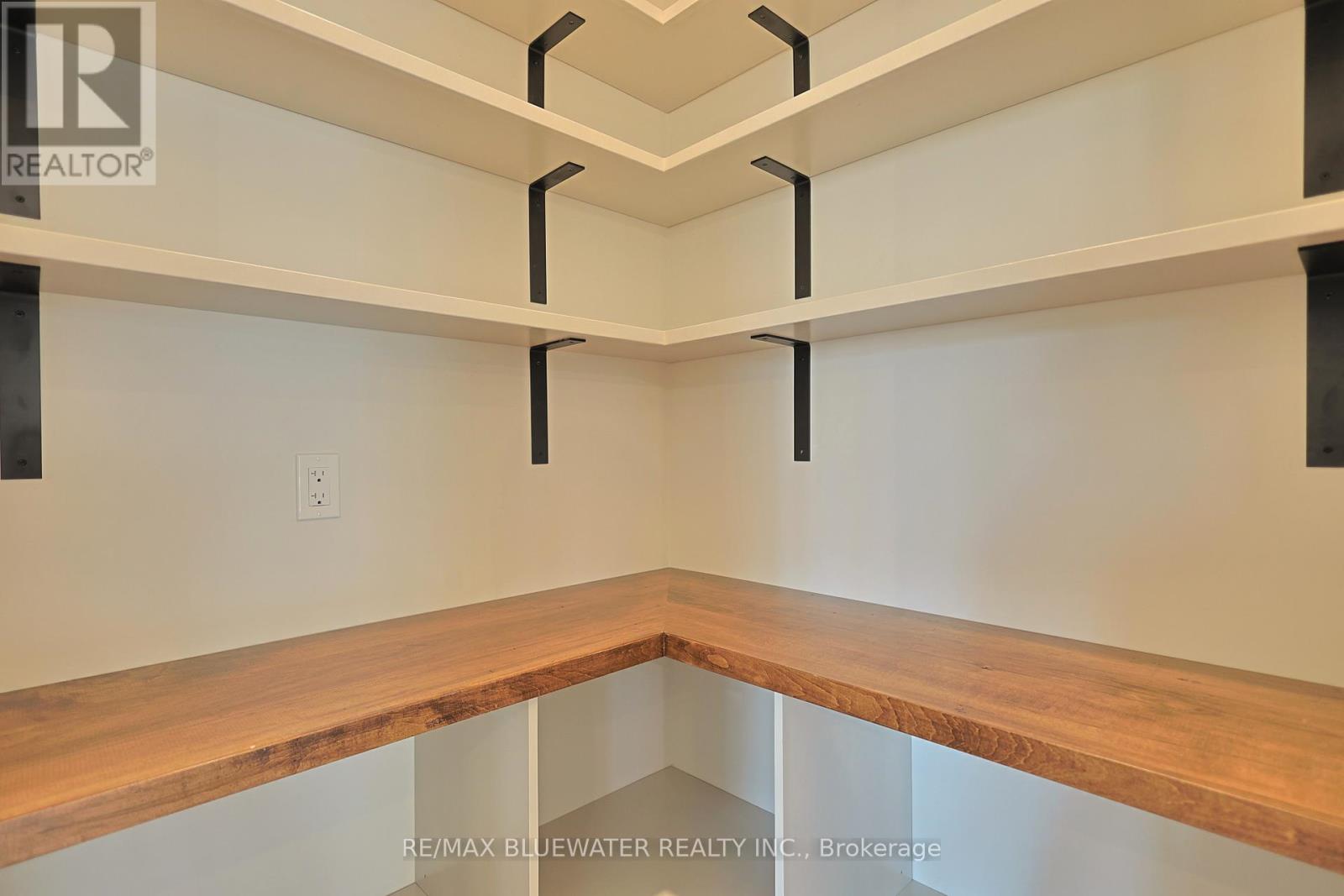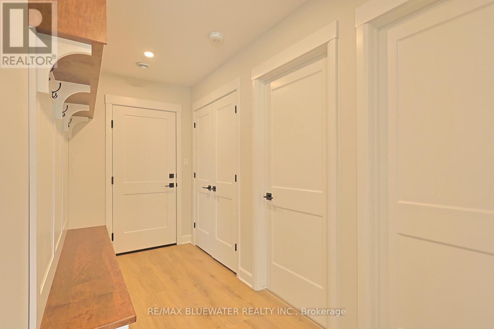 Are you searching for a lakeside property but nothing checks all the boxes? Take a look at this NEW BUILD home by Steeper Construction. Just steps to the beach, new construction, Tarion warranty, modern finishes, open concept design, covered front and back patio, low maintenance exterior and attached oversized garage. Located just north of Grand Bend at Bayview Subdivision this home is just steps to Lake Huron, the community playground and only 800 meters to the White Squirrel Golf Course. The exterior features hardie board siding with a board and batten finish on the main level complimented with horizontal siding on the upper level. Covered front entry with sitting area and a gravel walkway with landscaped gardens welcomes you to the property. Inside, the main floor features an open concept design with pot lighting, luxury vinyl plank flooring and a floor plan flowing with natural light. Two level foyer provides an entrance area that feels spacious. The kitchen features custom maple cabinetry with quartz countertops, island with contrasting wood finish and corner pantry. Spacious eating areas allows lots of room for friends and family to gather. Living room includes a gas insert fireplace on a white ship lap feature wall with patio doors leading to the covered patio. Main floor primary bedroom suite with walk in closet and access to the main floor bathroom, complete with tile shower walls and quartz countertops. Mudroom off the garage entrance with built in cubbies for organized storage above the bench seating for convenience. Bonus main floor laundry in the utility room with forced air gas furnace, on demand hot water heater and central air. Additional living space on the second level with a large family room, two additional bedrooms for guests or the kids and a full bathroom. Enjoy the back yard space of the large lot, Gas hookup so the BBQ is always ready to go and entertaining on the large covered concrete patio complete with wood ceiling and pot lighting. (id:64974)