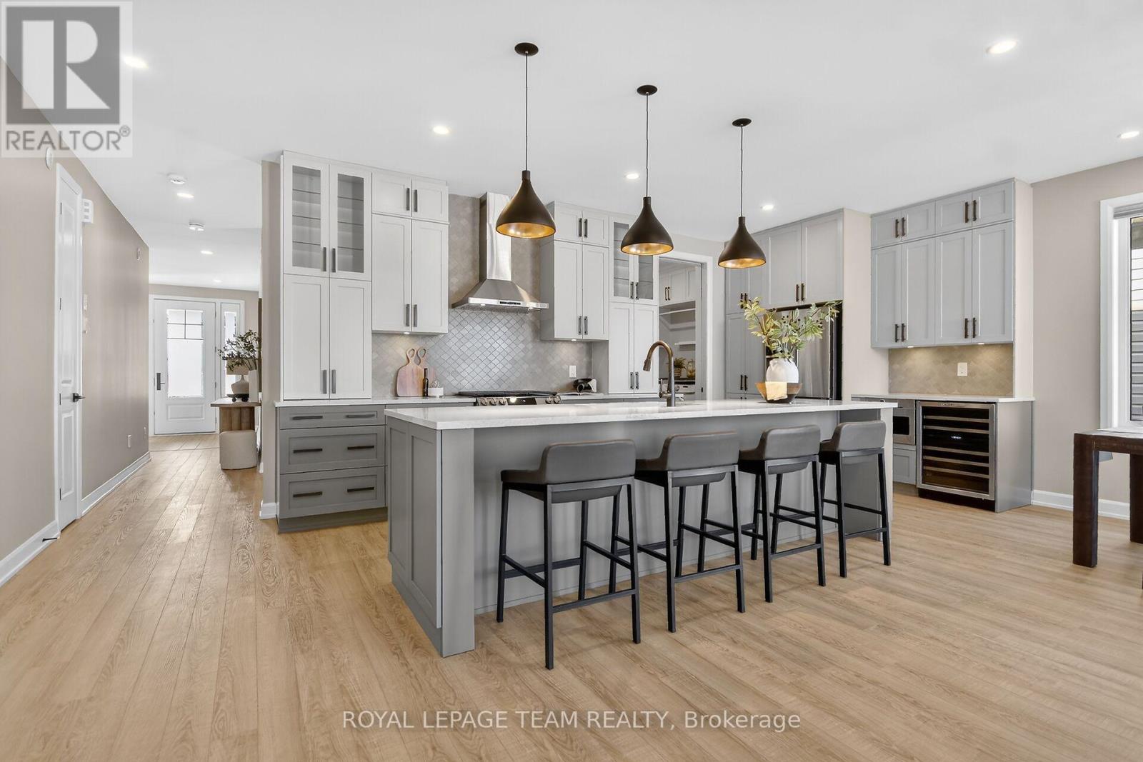 Welcome to 727 Coast Circle, a newly built Minto Group Bungalow in the sought-after Mahogany community of Manotick. Perfectly positioned with no immediate rear neighbours, this exceptional property backs onto a tranquil conservation area with a gentle creek-offering privacy, natural views, and a rare sense of serenity. Designed for seamless indoor-outdoor living, the kitchen opens onto a spacious deck overlooking the landscaped yard below, complete with stairs to the garden and a gas hookup for effortless BBQ entertaining. The fully fenced yard features professional landscaping, irrigation system, and abuts peaceful green space beyond. The primary features a full ensuite w/ double sinks, heated tile, a curb less shower, & walk-in customized closet. A full walk-out basement enhances both functionality and lifestyle flexibility. Inside, the thoughtfully designed layout showcases quality custom finishes throughout. The fully finished lower level boasts 8-foot ceilings, a generous bedroom with a large walk-in closet, a stylish 4-piece bath w/ heated tile, and a well-appointed kitchenette with Laurysen millwork-ideal for guests, extended family, or multigenerational living. A large cold storage room is available and a custom open staircase add both practicality and architectural interest. Additional highlights include Laurysen custom millwork in the mudroom/laundry area and closet organizers, updated light fixtures, custom window coverings, two flat-screen TVs, a gas fireplace, under-counter beverage fridge, microwave drawer plus a dual fuel system for enhanced efficiency. A Kohler generator and security system provide added peace of mind. This is refined bungalow living in one of Manotick's most desirable communities-backing onto nature, beautifully upgraded, and truly move-in ready. 24 Hr. Irrevocable required. Listing Agent to be present for all showings. (id:64974)