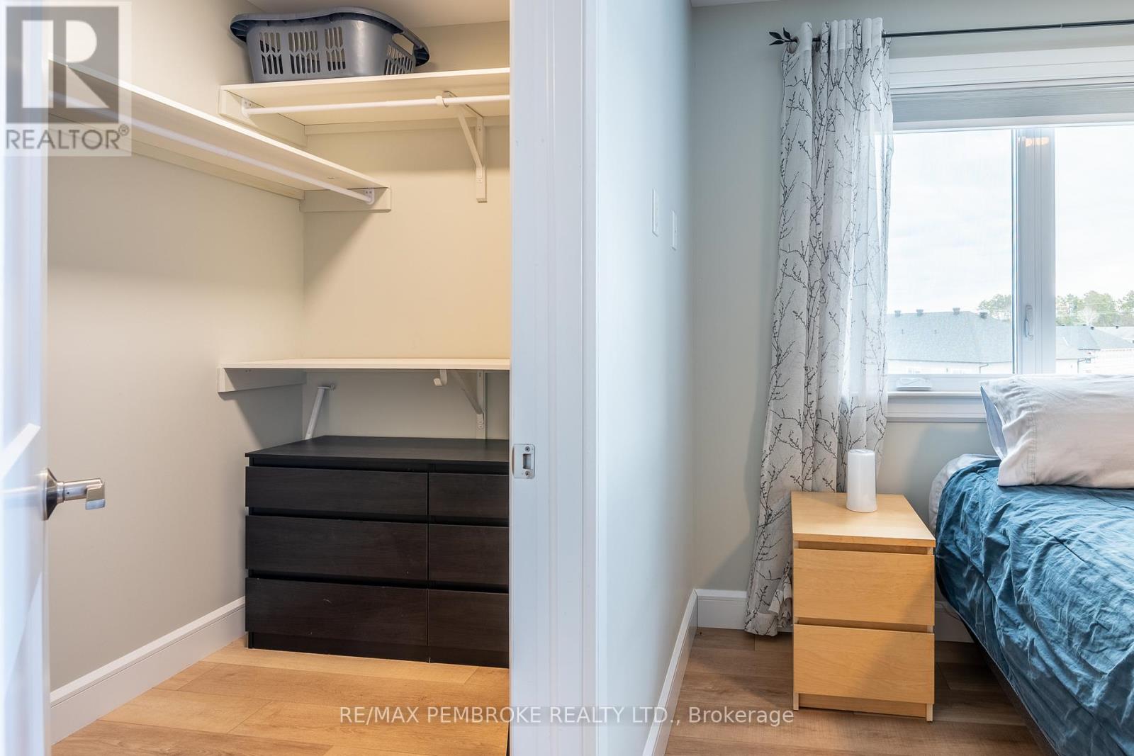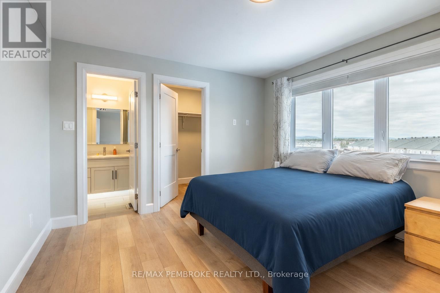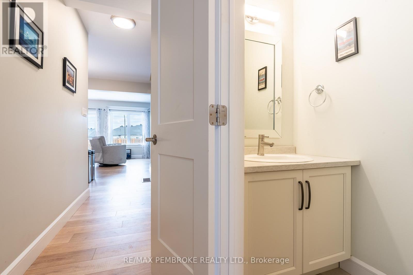 This modern, beautifully maintained three-bedroom, three-bathroom townhouse is ideal for someone looking for quality finishes and style throughout. This bright and airy home is move-in ready, whether to owner-occupy or as an investment property. The main floor features an open concept living-dining-kitchen layout with 8.5' ceilings and large windows offering ample natural light and patio doors that lead to a deck with a privacy partition- perfect for outdoor lounging. The generous kitchen is finished with plenty of custom cabinetry, a large island offering additional seating space, and stainless steel appliances. The main floor is completed with a convenient powder room and foyer with a large closet and direct access to the attached garage. Water-resistant and scratch-resistant flooring throughout the main and second levels; all bathroom floors have beautiful tile. The large primary suite includes an impressive walk-in closet and a full ensuite with a walk-in shower. Two additional bedrooms share a full bathroom, perfect for family or guests. The upper floor is complete with a handy laundry closet and a large linen closet. The upstairs bathrooms both feature toe-kick/under vanity lighting. The lower level has a spacious family room as well as a large enclosed storage area. This home offers the added convenience of an attached garage with an automatic opener. Close to Garrison Petawawa and a short commute to Highway 17 and CNL, this location is fantastic. Minimum 36-hour Irrevocable on any written Offer from a Buyer. (id:64974)