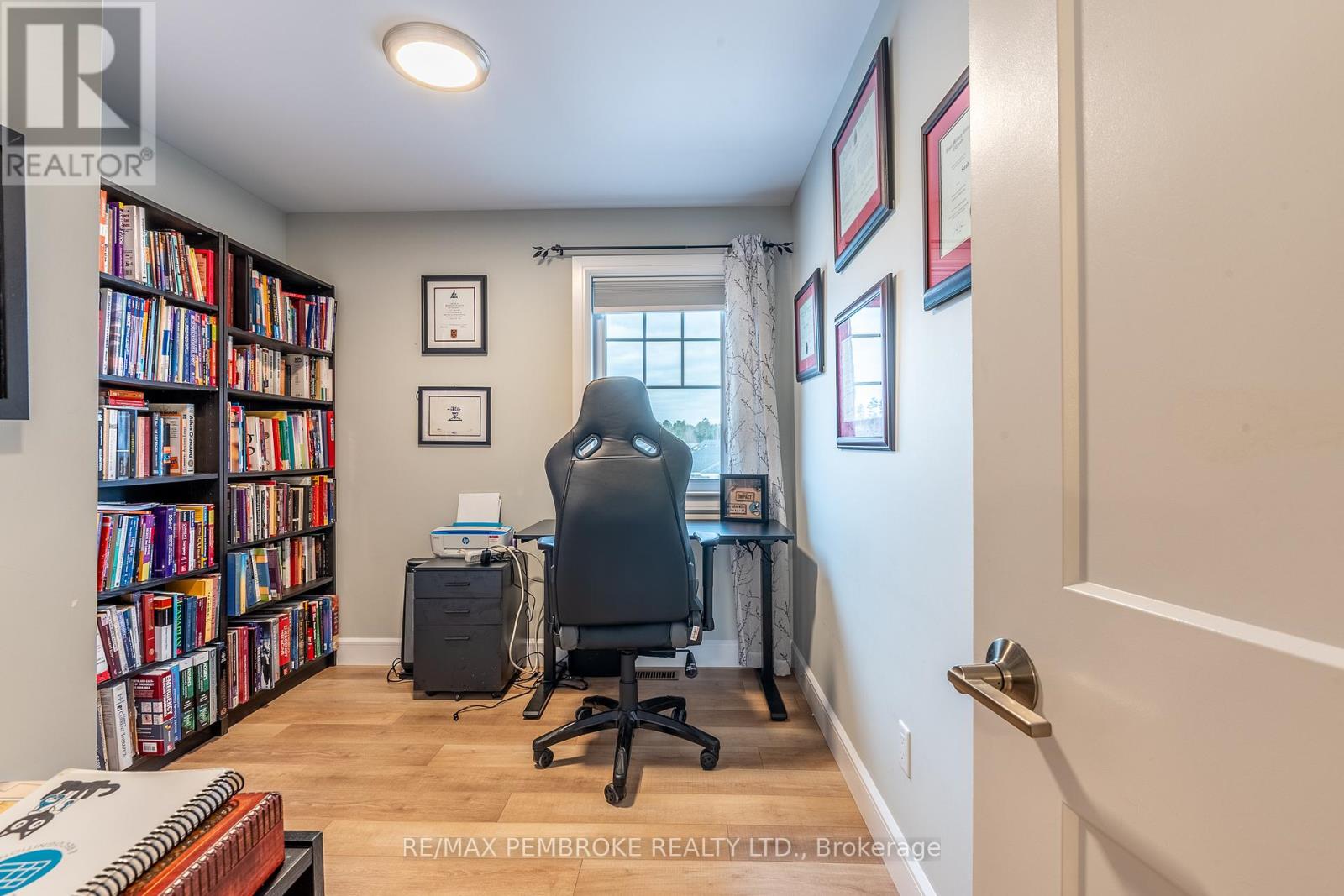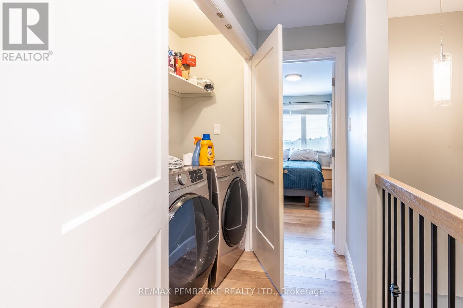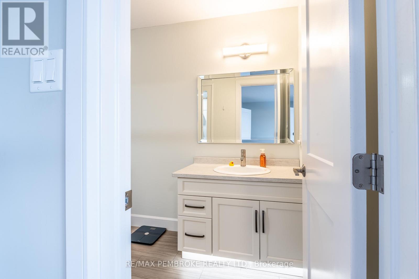 This modern, beautifully maintained three-bedroom, three-bathroom townhouse is ideal for someone looking for quality finishes and style throughout. This bright and airy home is move-in ready, whether to owner-occupy or as an investment property. The main floor features an open concept living-dining-kitchen layout with 8.5' ceilings and large windows offering ample natural light and patio doors that lead to a deck with a privacy partition- perfect for outdoor lounging. The generous kitchen is finished with plenty of custom cabinetry, a large island offering additional seating space, and stainless steel appliances. The main floor is completed with a convenient powder room and foyer with a large closet and direct access to the attached garage. Water-resistant and scratch-resistant flooring throughout the main and second levels; all bathroom floors have beautiful tile. The large primary suite includes an impressive walk-in closet and a full ensuite with a walk-in shower. Two additional bedrooms share a full bathroom, perfect for family or guests. The upper floor is complete with a handy laundry closet and a large linen closet. The upstairs bathrooms both feature toe-kick/under vanity lighting. The lower level has a spacious family room as well as a large enclosed storage area. This home offers the added convenience of an attached garage with an automatic opener. Close to Garrison Petawawa and a short commute to Highway 17 and CNL, this location is fantastic. Minimum 36-hour Irrevocable on any written Offer from a Buyer. (id:64974)