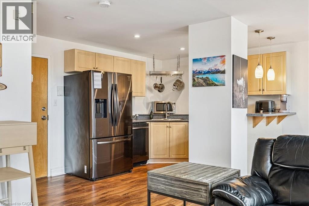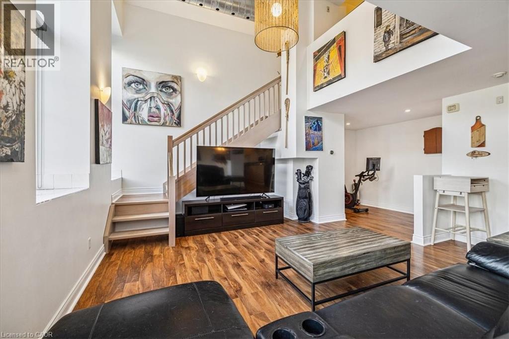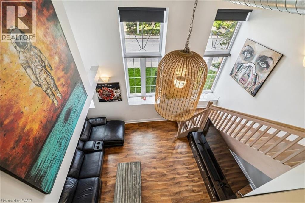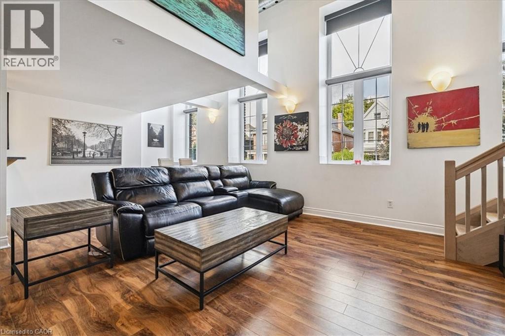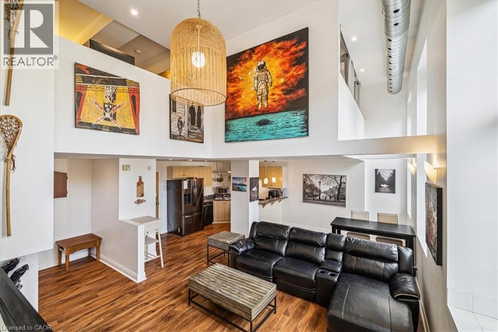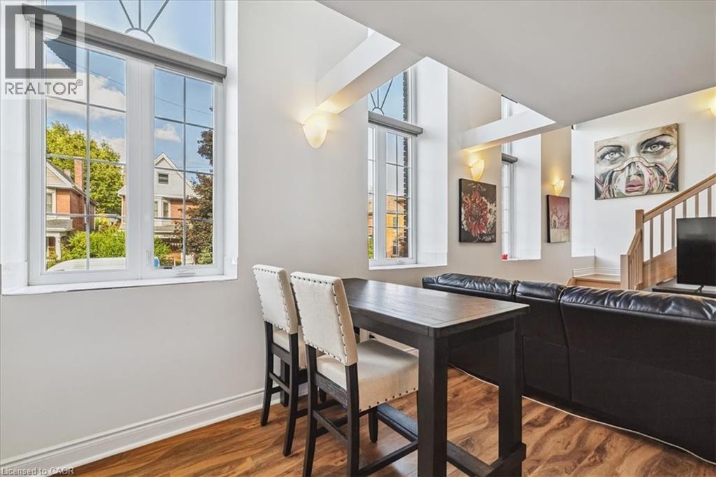 Welcome to this stunning two-level loft-style condo in the heart of Hamilton Centre! Step through your private main-floor entrance into a bright and spacious 1-bedroom, 1-bath suite featuring soaring vaulted ceilings and an open-concept layout that’s perfect for entertaining. Transformed into boutique lofts in 2001, this historic building beautifully combines heritage character with modern design. The kitchen showcases stainless steel appliances, a breakfast bar, and a seamless flow into the living and dining area. Automatic blinds add modern convenience and a touch of luxury to your living space. Upstairs, retreat to your generous primary bedroom, offering the perfect balance of comfort and privacy. Enjoy being just minutes from Gage Park, local shops, restaurants, transit, and all the amenities that make Hamilton living so convenient. Experience urban living with a touch of history! (id:64974)