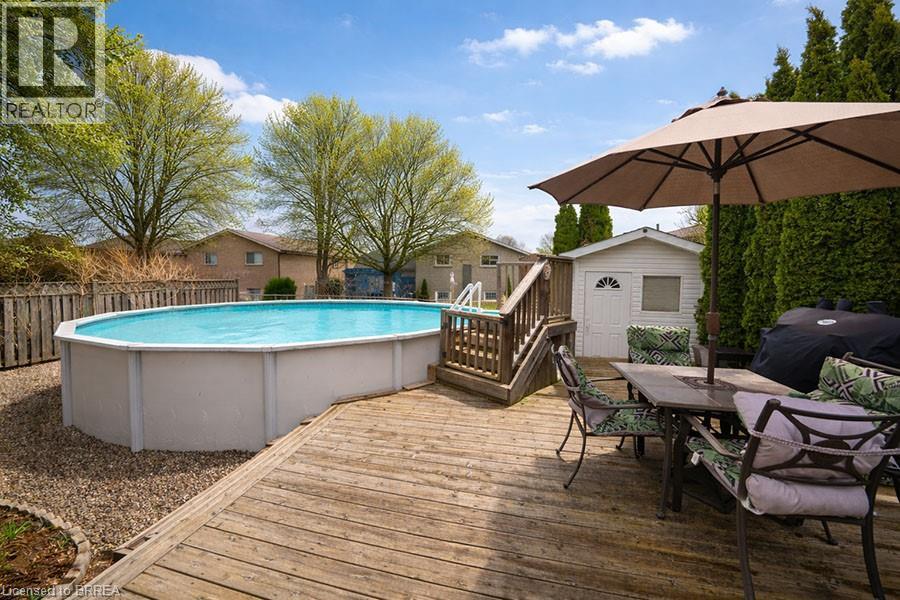 Location, Location, Location! Welcome to the highly sought-after Lynden Hills community, where this beautifully maintained and thoughtfully updated raised bungalow awaits. Set on a quiet, established street surrounded by mature trees, this home is ideally located just minutes from parks, schools, and convenient highway access, offering an excellent balance of comfort, accessibility, and everyday convenience.Offering 2,088 total finished square feet, this home features 3+1 bedrooms and 2 full bathrooms, providing a functional layout for families, multi-generational living, or those looking for added flexibility. The main floor is bright and inviting, showcasing engineered hardwood flooring, updated trim and lighting, and a refreshed kitchen complete with granite countertops, updated cabinetry, and a centre island-perfect for everyday living and entertaining.The main level offers three spacious bedrooms and a beautifully updated 4-piece bathroom, while the lower level expands your living space with a large recreation room, an additional bedroom, and a renovated 3-piece bathroom. A kitchen area (just requiring a fridge) and flexible layout provide excellent potential to create an in-law suite, making it ideal for extended family or future income opportunities.Step outside to a private, fully usable backyard featuring a deck, gazebo, and above-ground pool-ideal for enjoying summer days with family and friends. With a double-wide driveway, single car garage, and numerous updates throughout, this home is move-in ready and offers exceptional value in a prime location.A fantastic opportunity to get into one of Brantford's most desirable neighbourhoods!!! (id:64974)