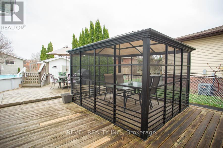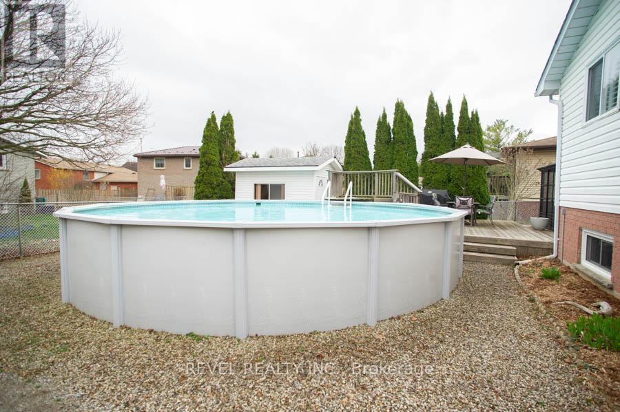 Location, Location, Location! Welcome to the highly sought-after Lynden Hills community, where this beautifully maintained and thoughtfully updated raised bungalow awaits. Set on a quiet, established street surrounded by mature trees, this home is ideally located just minutes from parks, schools, and convenient highway access, offering an excellent balance of comfort, accessibility, and everyday convenience.Offering 2,088 total finished square feet, this home features 3+1 bedrooms and 2 full bathrooms, providing a functional layout for families, multi-generational living, or those looking for added flexibility. The main floor is bright and inviting, showcasing engineered hardwood flooring, updated trim and lighting, and a refreshed kitchen complete with granite countertops, updated cabinetry, and a centre island-perfect for everyday living and entertaining.The main level offers three spacious bedrooms and a beautifully updated 4-piece bathroom, while the lower level expands your living space with a large recreation room, an additional bedroom, and a renovated 3-piece bathroom. A kitchen area (just requiring a fridge) and flexible layout provide excellent potential to create an in-law suite, making it ideal for extended family or future income opportunities.Step outside to a private, fully usable backyard featuring a deck, gazebo, and above-ground pool-ideal for enjoying summer days with family and friends. With a double-wide driveway, single car garage, and numerous updates throughout, this home is move-in ready and offers exceptional value in a prime location.A fantastic opportunity to get into one of Brantford's most desirable neighbourhoods!!! (id:64974)