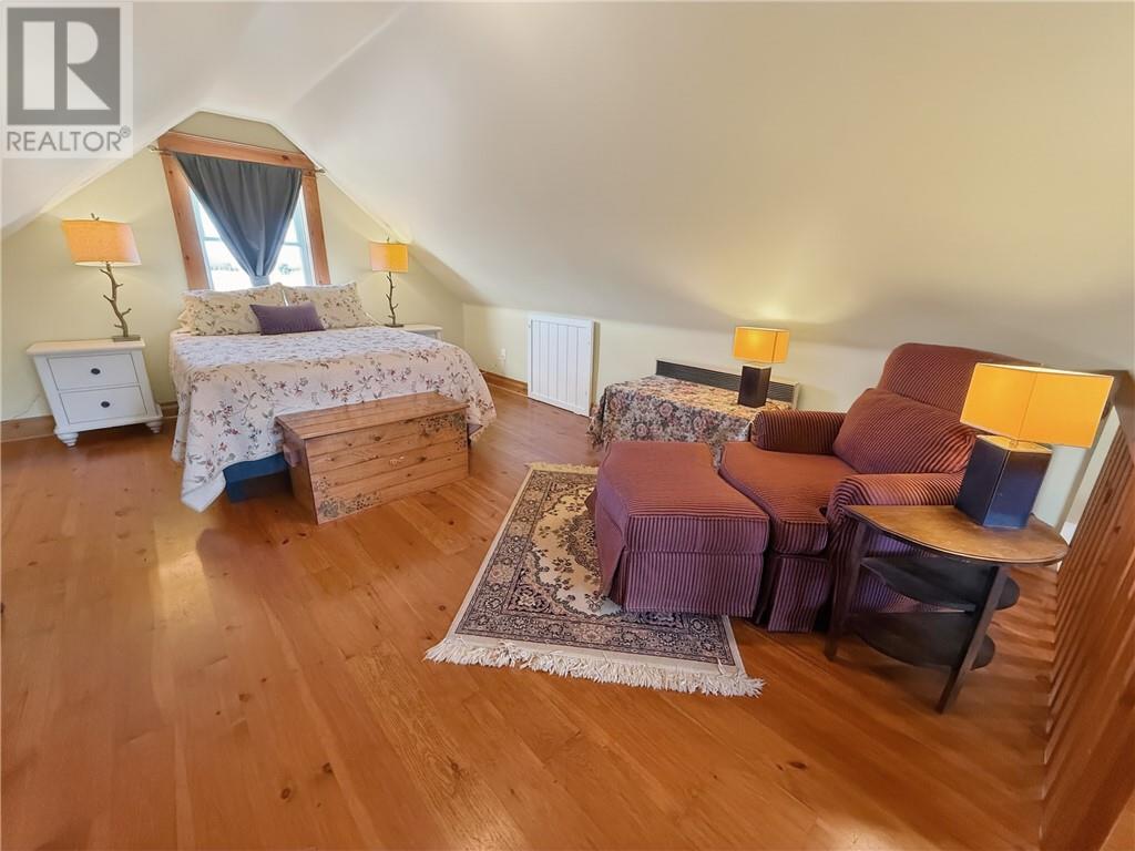 Welcome to this exceptional 100-acre property in the rural community of Kagawong, offering a mix of open fields and mature bush on a scenic corner lot. The setting has the feel of an old farmstead with four log outbuildings, a garage with hydro, wood-burning sauna, stamped concrete patio, and private trails. The home sits well back from the road and features vinyl siding and a modern tile-style metal roof. Inside, you’ll find warmth and character throughout, highlighted by pine flooring. The spacious entrance doubles as a sitting room with a wood stove, 3-piece bath, and a loft suite perfect for guests. A large formal dining room leads to the updated kitchen, complete with an antique wood cookstove, modern appliances, tile flooring, and a dual-level island. A cozy living room with propane fireplace, front hall, pantry, laundry area, and utility room complete the main floor. The second level offers two inviting bedrooms and a generous 4-piece bathroom with a freestanding tub. The third floor adds a flexible bonus room ideal for an additional bedroom, sitting area, or home gym. Mechanical highlights include in-floor propane heat on the main level, wood stove at the entrance, propane fireplace in the living room, heat pump with air conditioning, electric convection heaters upstairs, drilled well, septic system, hot water on demand, and an indoor cistern. Hydro services both the sauna and garage. Antique furniture that complements the home’s character is negotiable. A rare opportunity to own a spacious, character-filled home on a stunning parcel of Manitoulin countryside—perfect for those seeking privacy, charm, and year-round outdoor enjoyment. (id:64974)