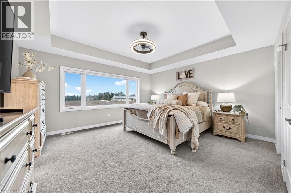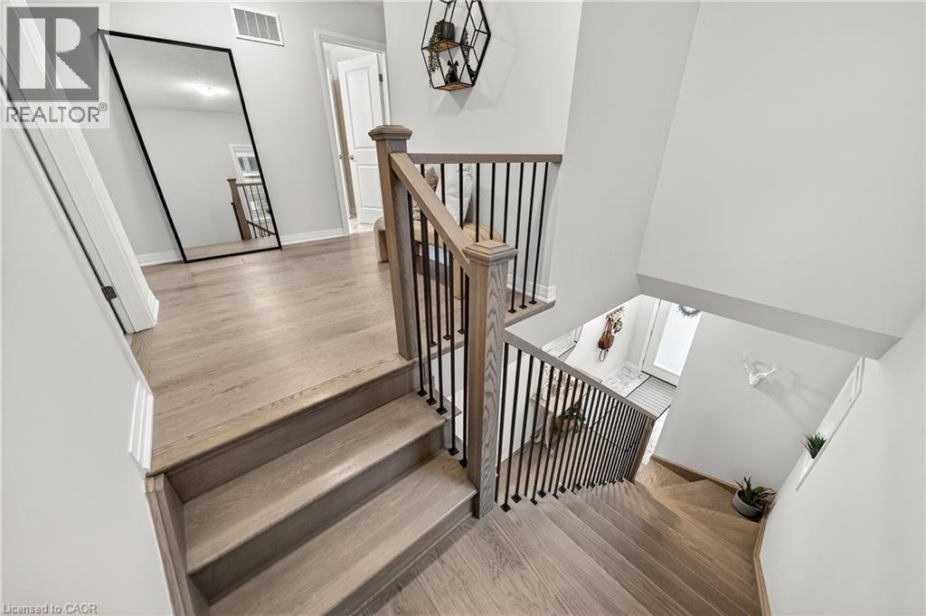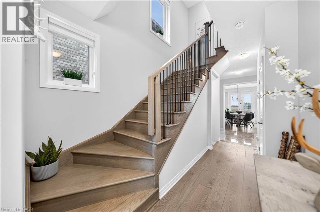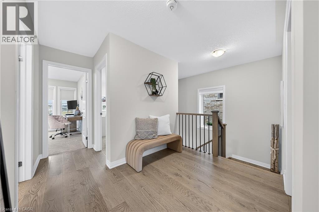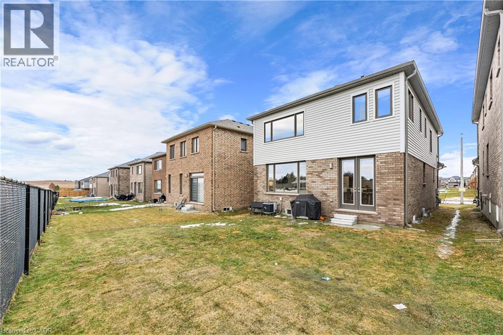 Welcome to this stunning family home in the heart of the village of Ayr - located in a newer subdivision and backing onto peaceful farmers' fields with breathtaking sunrise and sunset views. Built in 2024 and beautifully upgraded throughout, this approximately 2,200 sq. ft. home offers the perfect blend of modern design and functional family living. The main floor features gorgeous hardwood flooring throughout, including the staircase, and a thoughtfully updated kitchen designed to impress. You'll love the oversized island - ideal for entertaining - along with high-end GE Café appliances, pantry with pull-out cabinetry, and stunning oversized subway tile backsplash. A spacious living and dining area flows seamlessly for gatherings, while the added coffee bar, floating shelves, and extra storage bring both charm and practicality. Upstairs, you'll find four generous bedrooms - perfect for growing families. The primary suite offers a custom walk-in closet and a luxurious ensuite complete with double sinks, a soaker tub, and separate shower. A second upstairs bathroom also features double sinks with a private shower and water closet - ideal for busy mornings. The convenient upper-level laundry room includes custom cabinetry for added organization. French doors lead to the backyard where uninterrupted field views create a peaceful and private setting - a rare find in a family-friendly neighbourhood. The unfinished basement offers incredible potential to expand your living space - whether you envision a recreation room, gym, additional bedroom, or in-law setup. Neutral tones throughout make this home truly move-in ready. Stylish, functional, and beautifully maintained - this is the perfect next step for a family looking to settle into one of Ayr's most desirable communities. (id:64974)