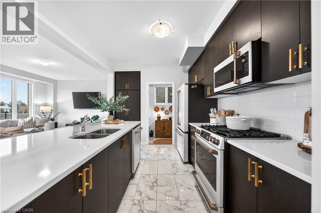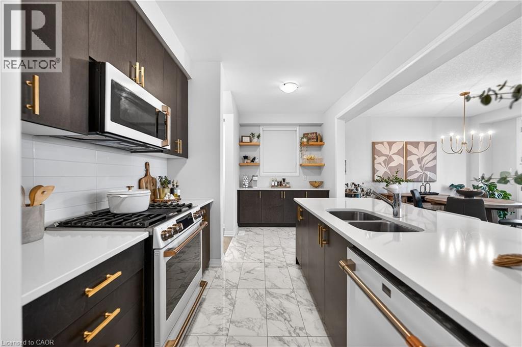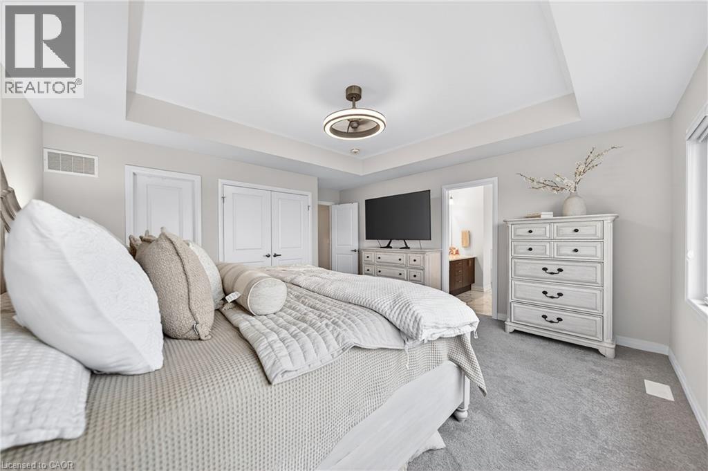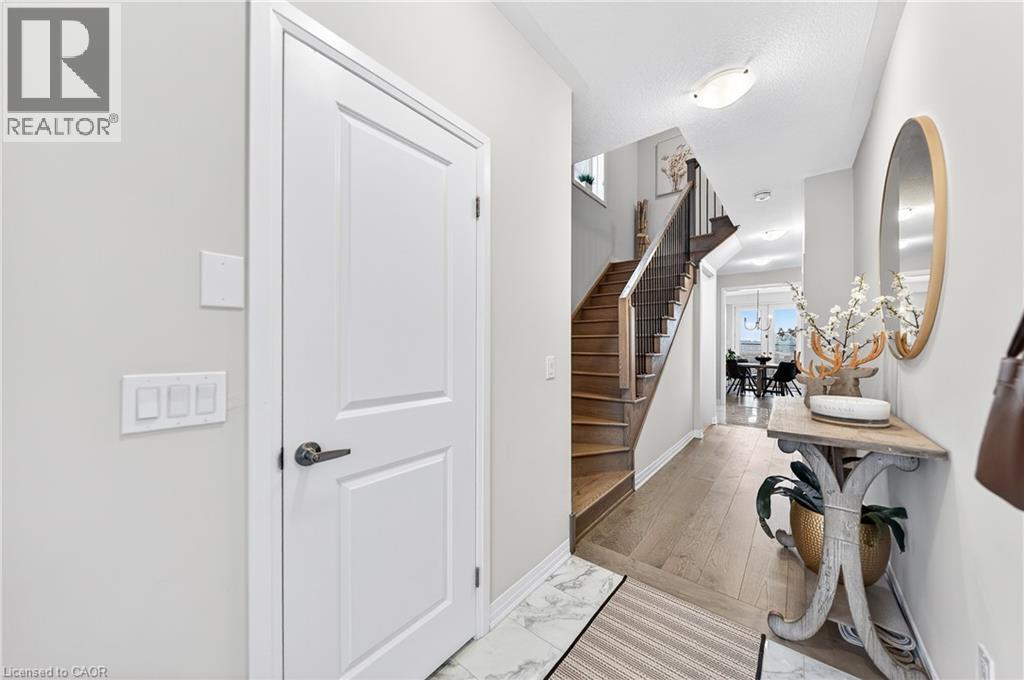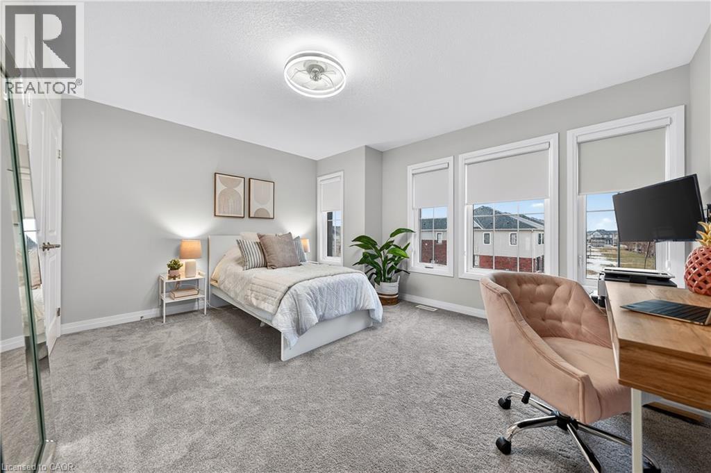 Welcome to this stunning family home in the heart of the village of Ayr - located in a newer subdivision and backing onto peaceful farmers' fields with breathtaking sunrise and sunset views. Built in 2024 and beautifully upgraded throughout, this approximately 2,200 sq. ft. home offers the perfect blend of modern design and functional family living. The main floor features gorgeous hardwood flooring throughout, including the staircase, and a thoughtfully updated kitchen designed to impress. You'll love the oversized island - ideal for entertaining - along with high-end GE Café appliances, pantry with pull-out cabinetry, and stunning oversized subway tile backsplash. A spacious living and dining area flows seamlessly for gatherings, while the added coffee bar, floating shelves, and extra storage bring both charm and practicality. Upstairs, you'll find four generous bedrooms - perfect for growing families. The primary suite offers a custom walk-in closet and a luxurious ensuite complete with double sinks, a soaker tub, and separate shower. A second upstairs bathroom also features double sinks with a private shower and water closet - ideal for busy mornings. The convenient upper-level laundry room includes custom cabinetry for added organization. French doors lead to the backyard where uninterrupted field views create a peaceful and private setting - a rare find in a family-friendly neighbourhood. The unfinished basement offers incredible potential to expand your living space - whether you envision a recreation room, gym, additional bedroom, or in-law setup. Neutral tones throughout make this home truly move-in ready. Stylish, functional, and beautifully maintained - this is the perfect next step for a family looking to settle into one of Ayr's most desirable communities. (id:64974)