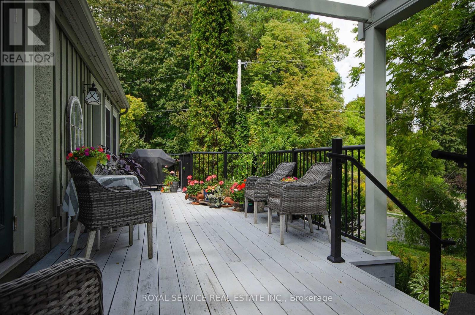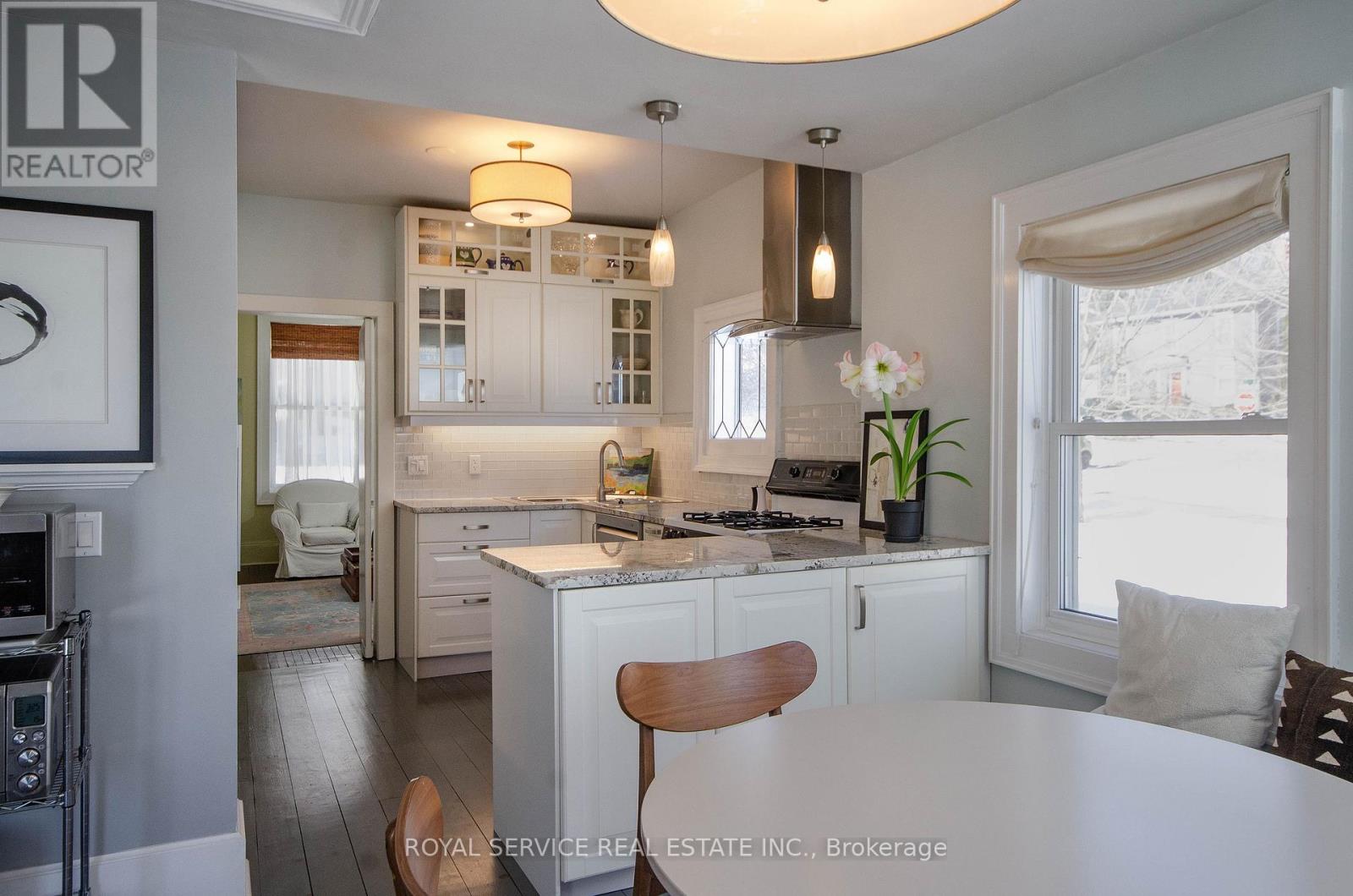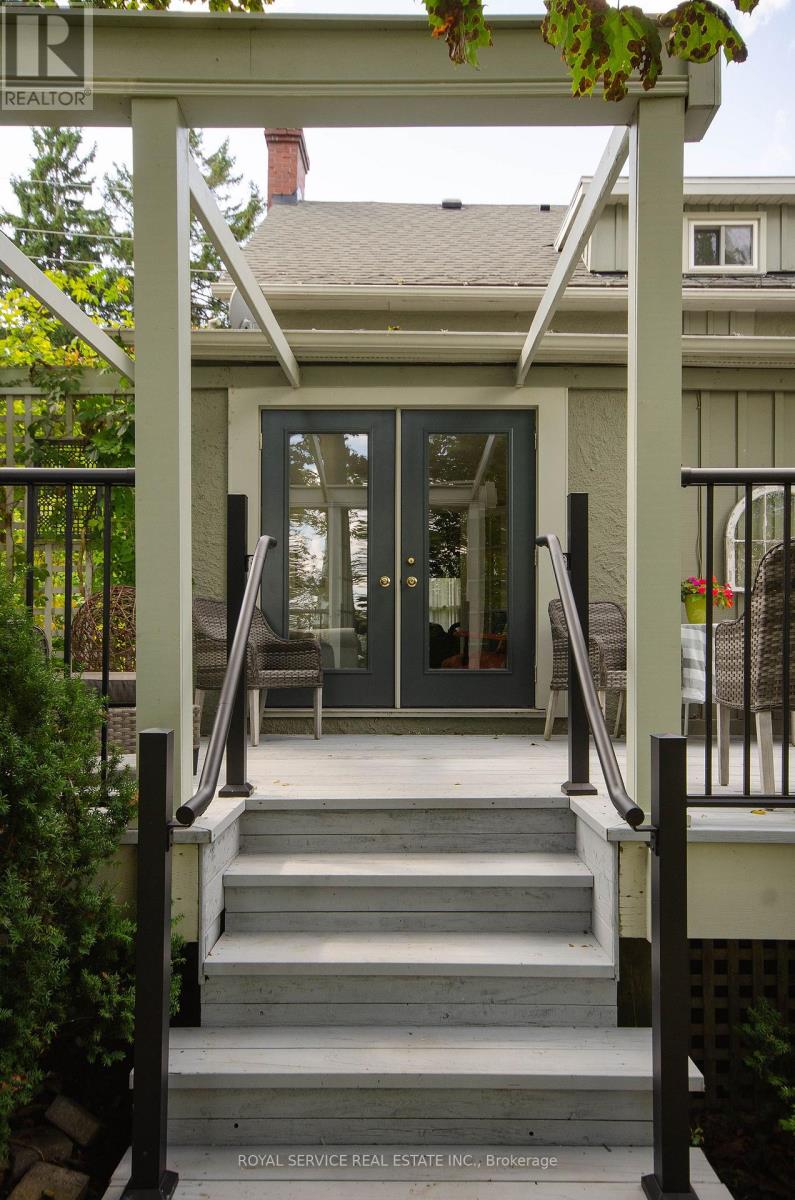 Circa 1870 Century home located in a prime residential neighbourhood walking distance to downtown Port Hope. Just steps to shops, restaurants, the library and the Ganaraska river, this lovely home has everything. A classic centre hall plan entrance leads to a spacious living room open to the dining room and sunroom and across the hall, walk through the den to the large kitchen with granite counters, ample storage and a large seating area, a wet bar and pantry area, main floor laundry and 2 pc bath. On the upper level, there are 3 bedrooms and a 4 pc bath with a separate glass and tile shower. Walk out from the kitchen or the sunroom to the large raised deck overlooking the downtown and the nicely landscaped yard with mature trees. Dry stonewalls line both sides of the driveway leading to the attached garage which has an entrance into the house through the basement.Updates include: furnace (6 yrs), A/C & heat pump (2024), fridge (2022), dishwasher, (2025), range hood (2020), eaves & leaf guard (2021), shingles (2013), deck rebuilt with railings (2025) (id:64974)