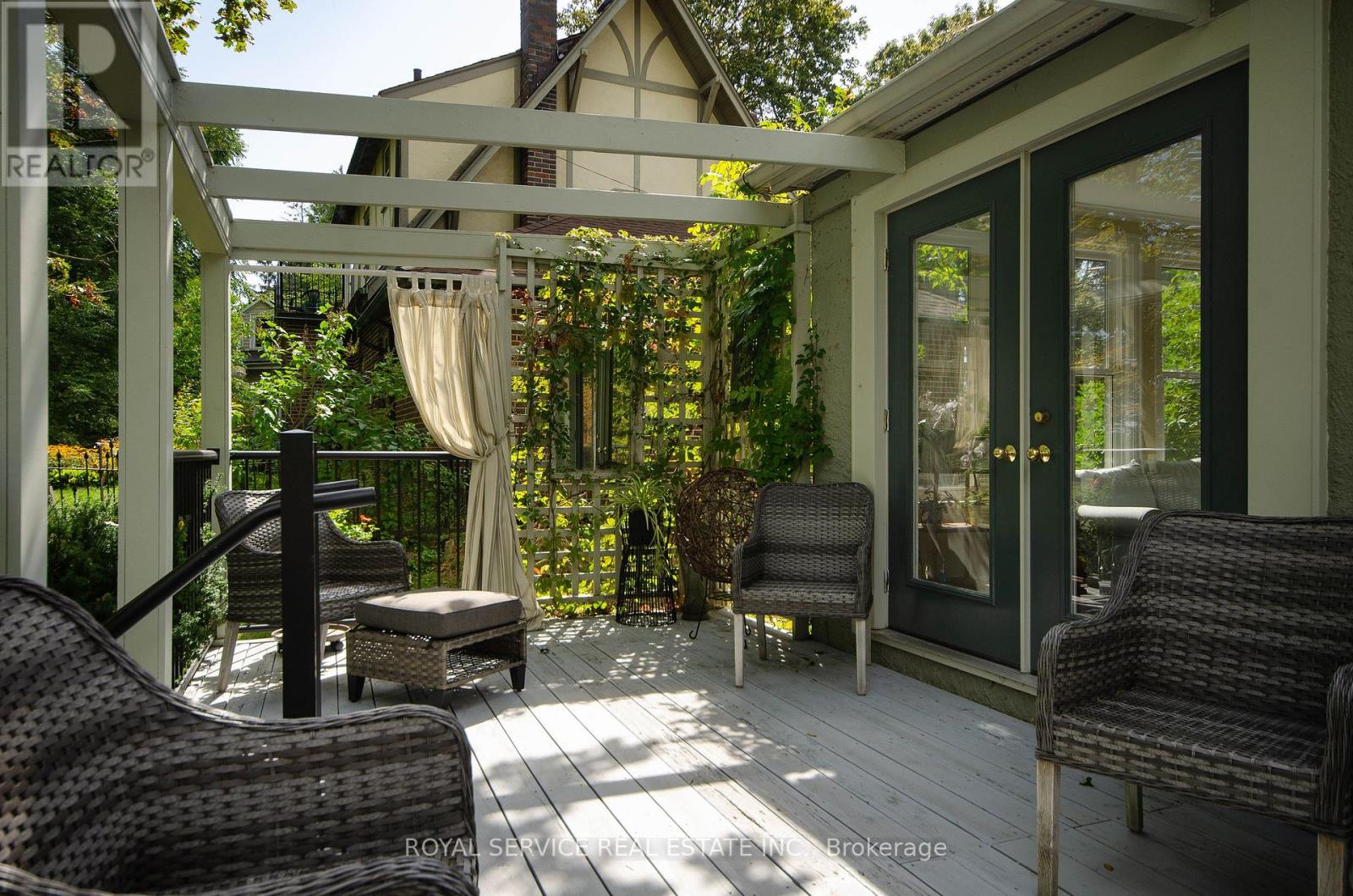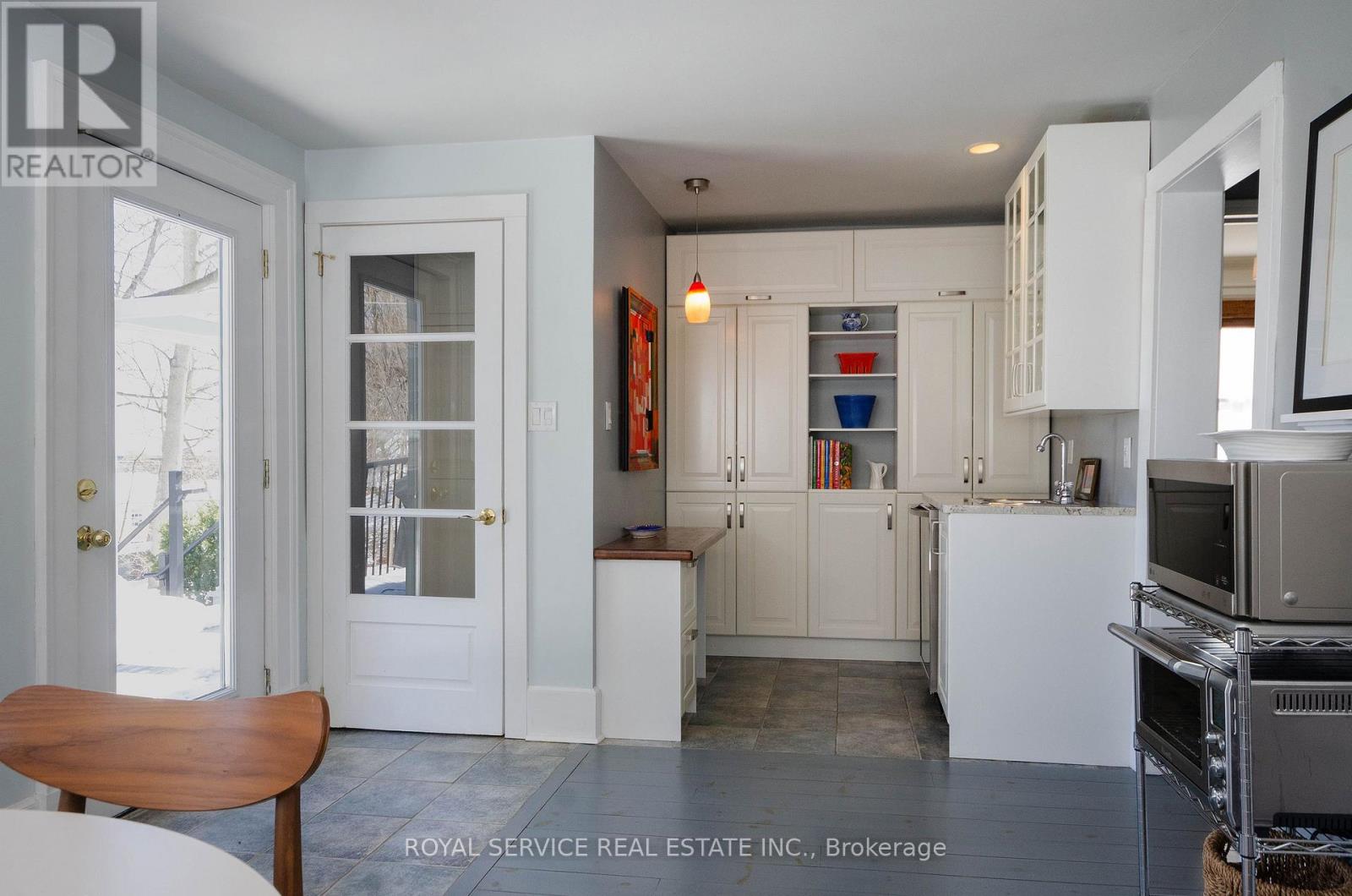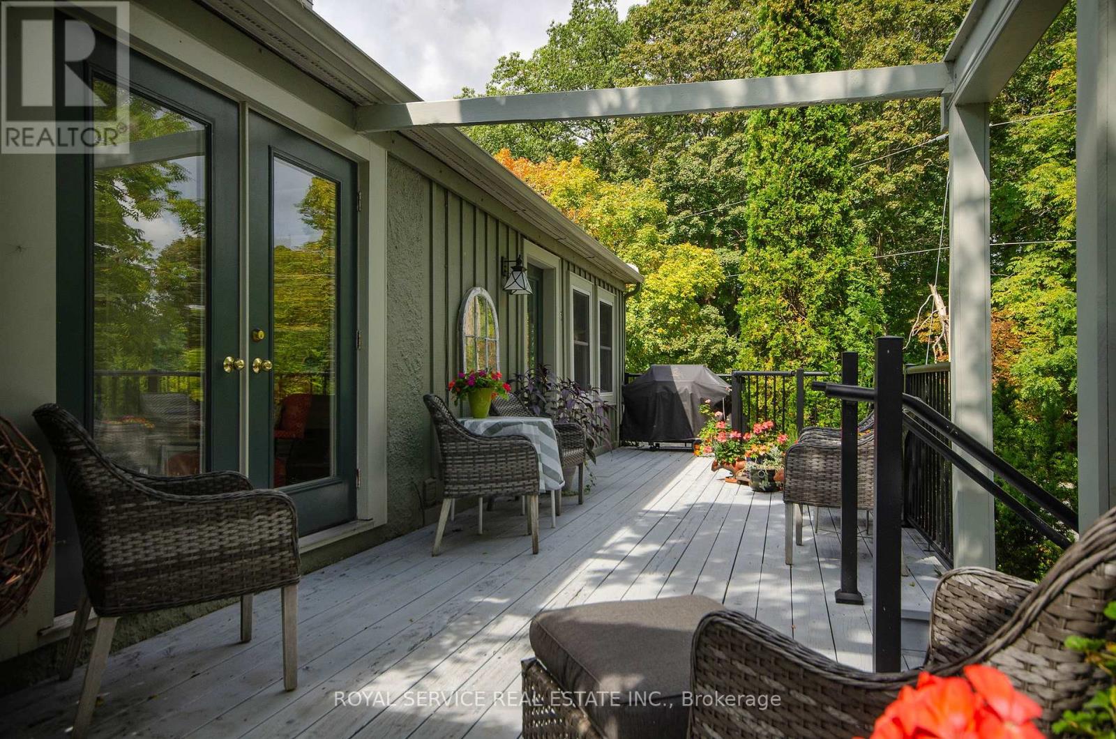 Circa 1870 Century home located in a prime residential neighbourhood walking distance to downtown Port Hope. Just steps to shops, restaurants, the library and the Ganaraska river, this lovely home has everything. A classic centre hall plan entrance leads to a spacious living room open to the dining room and sunroom and across the hall, walk through the den to the large kitchen with granite counters, ample storage and a large seating area, a wet bar and pantry area, main floor laundry and 2 pc bath. On the upper level, there are 3 bedrooms and a 4 pc bath with a separate glass and tile shower. Walk out from the kitchen or the sunroom to the large raised deck overlooking the downtown and the nicely landscaped yard with mature trees. Dry stonewalls line both sides of the driveway leading to the attached garage which has an entrance into the house through the basement.Updates include: furnace (6 yrs), A/C & heat pump (2024), fridge (2022), dishwasher, (2025), range hood (2020), eaves & leaf guard (2021), shingles (2013), deck rebuilt with railings (2025) (id:64974)