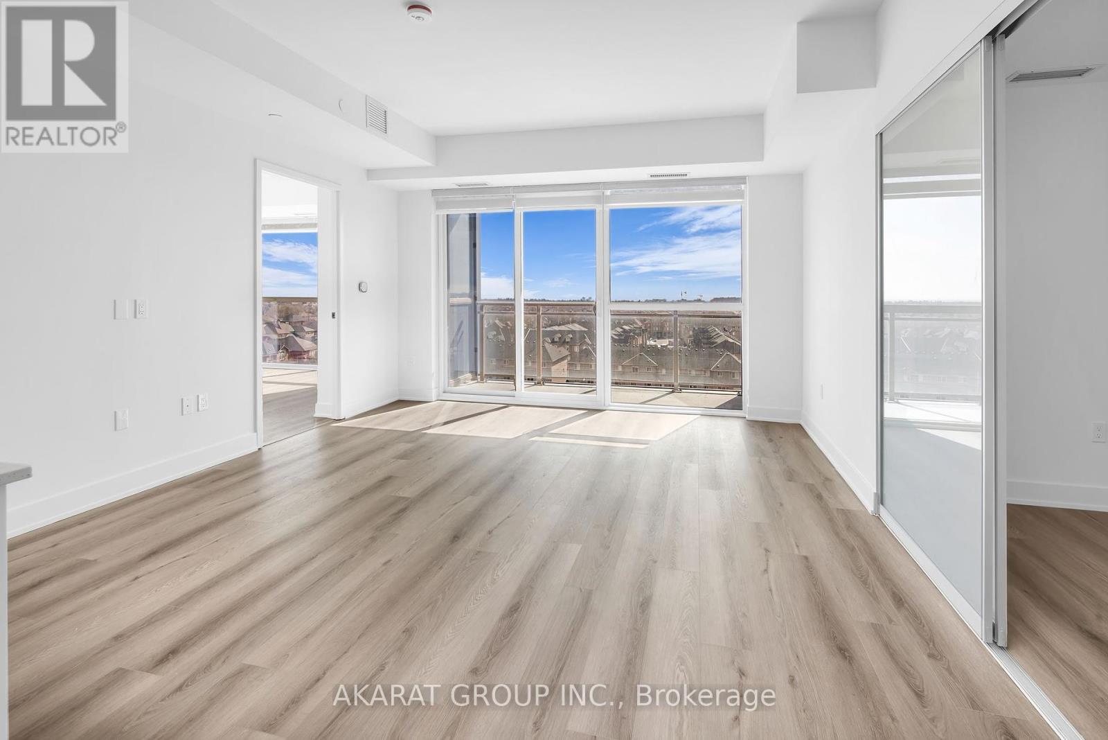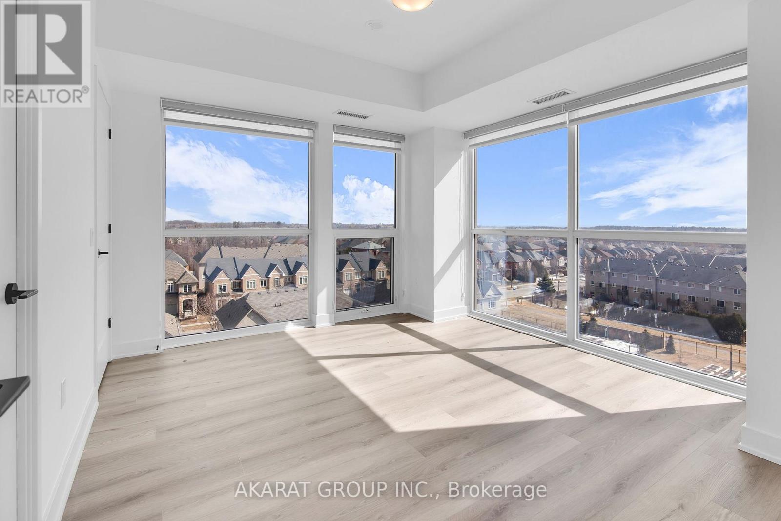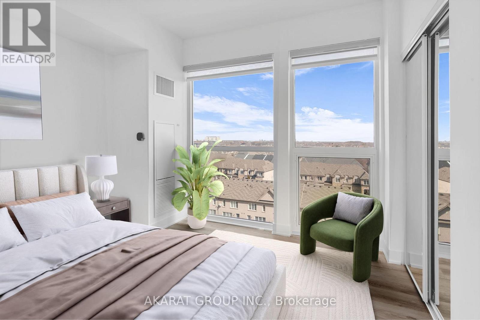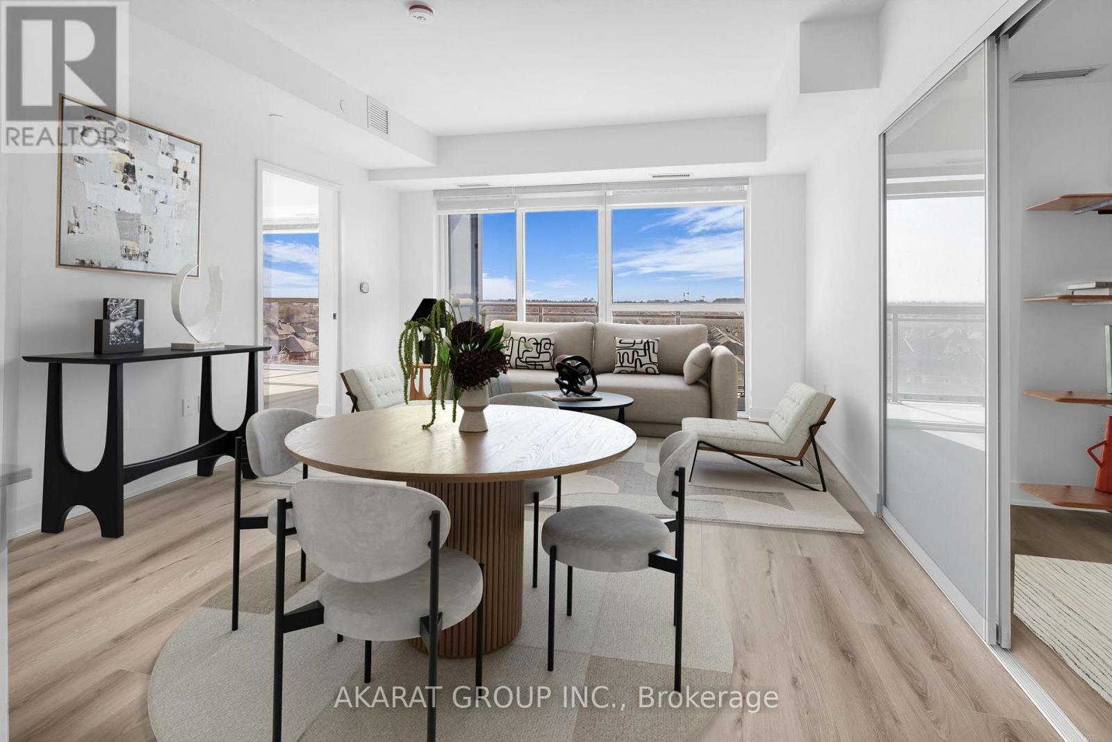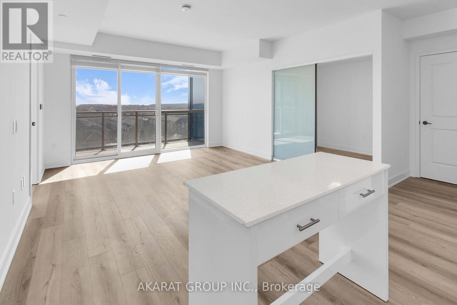 Welcome to this spacious 962 SQFT and well-designed 2 Bedroom + Den, 2 Washroom unit located on the 7th floor, offering a clear and unobstructed southeast view that reaches Lake Ontario and brings in natural light all day. This open-concept layout features approximately 9-foot smooth ceilings and thoughtfully selected finishes throughout. The kitchen is equipped with stainless steel appliances, white shadow granite countertops, subway tile backsplash, 39" upper cabinets, and under-cabinet lightingideal for everyday cooking and entertaining. The living and dining areas flow seamlessly, finished with modern laminate flooring, Zebra blinds, and pre-wired for wall-mounted TV. The den offers a flexible space for a home office, reading nook, or extra storage.The primary bedroom includes a walk-in closet and a private ensuite with a glass shower and premium ceramic tile. The second bedroom is bright and well-sized, with a full bathroom nearby. Additional features include a stacked washer and ventless dryer, mirrored closet doors, USB charging outlets, and Ecobee Smart Thermostat with Alexa. Step out onto the balcony for fresh air and a clear southeast view.Includes one parking and one locker. Tarion Warranty included, as this is a brand new unit.Located in a modern smart building with keyless entry, free internet, and full connectivity. Enjoy resort-style amenities: gym with Peloton bikes, rooftop lounge, pool/spa, pickleball court, golf simulator, BBQ areas, media/games room, work/share space, car wash, pet wash station, and access to 200 km of scenic trails.Property Taxes not assessed yet. ** Some Photos Virtually Staged. (id:64974)
