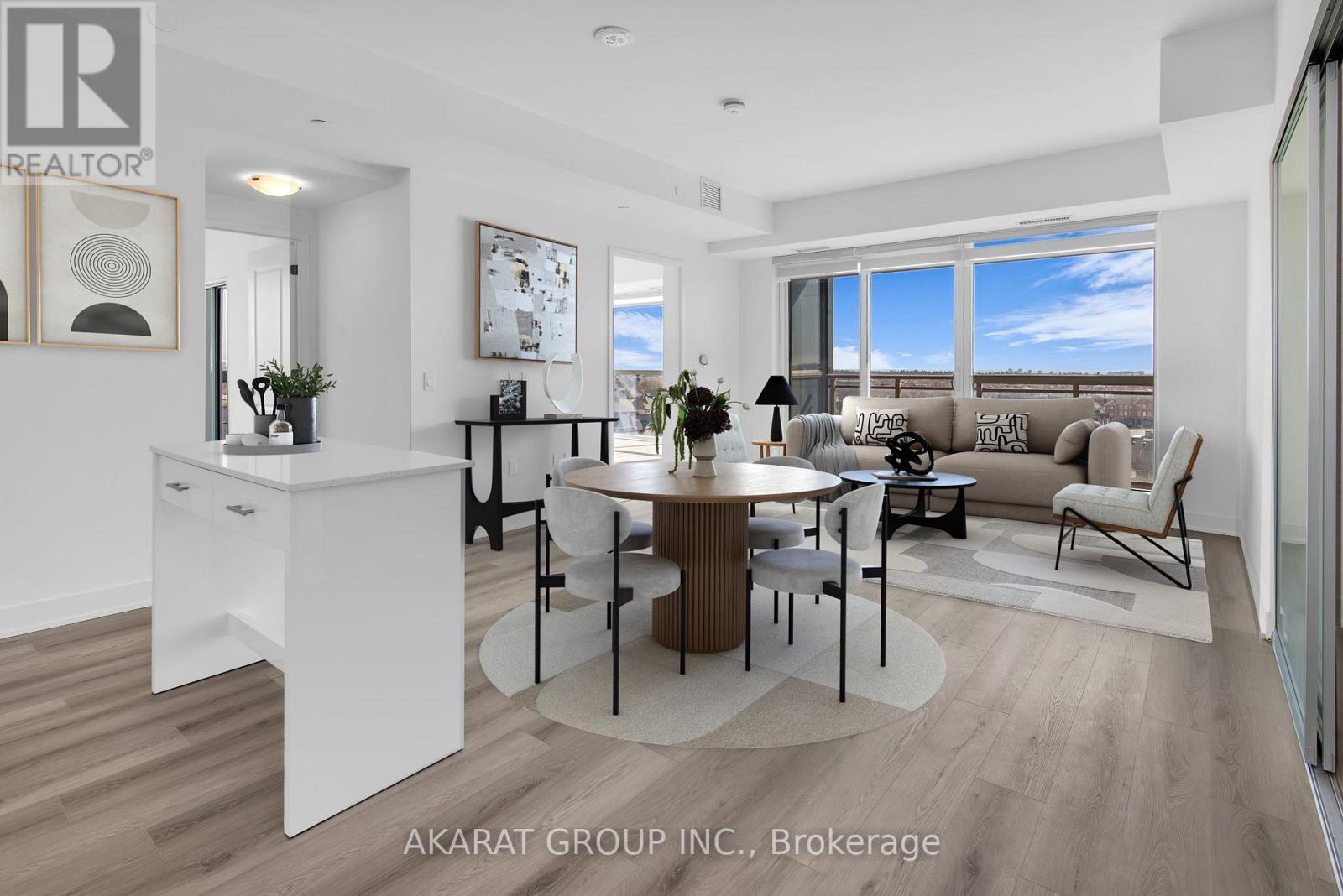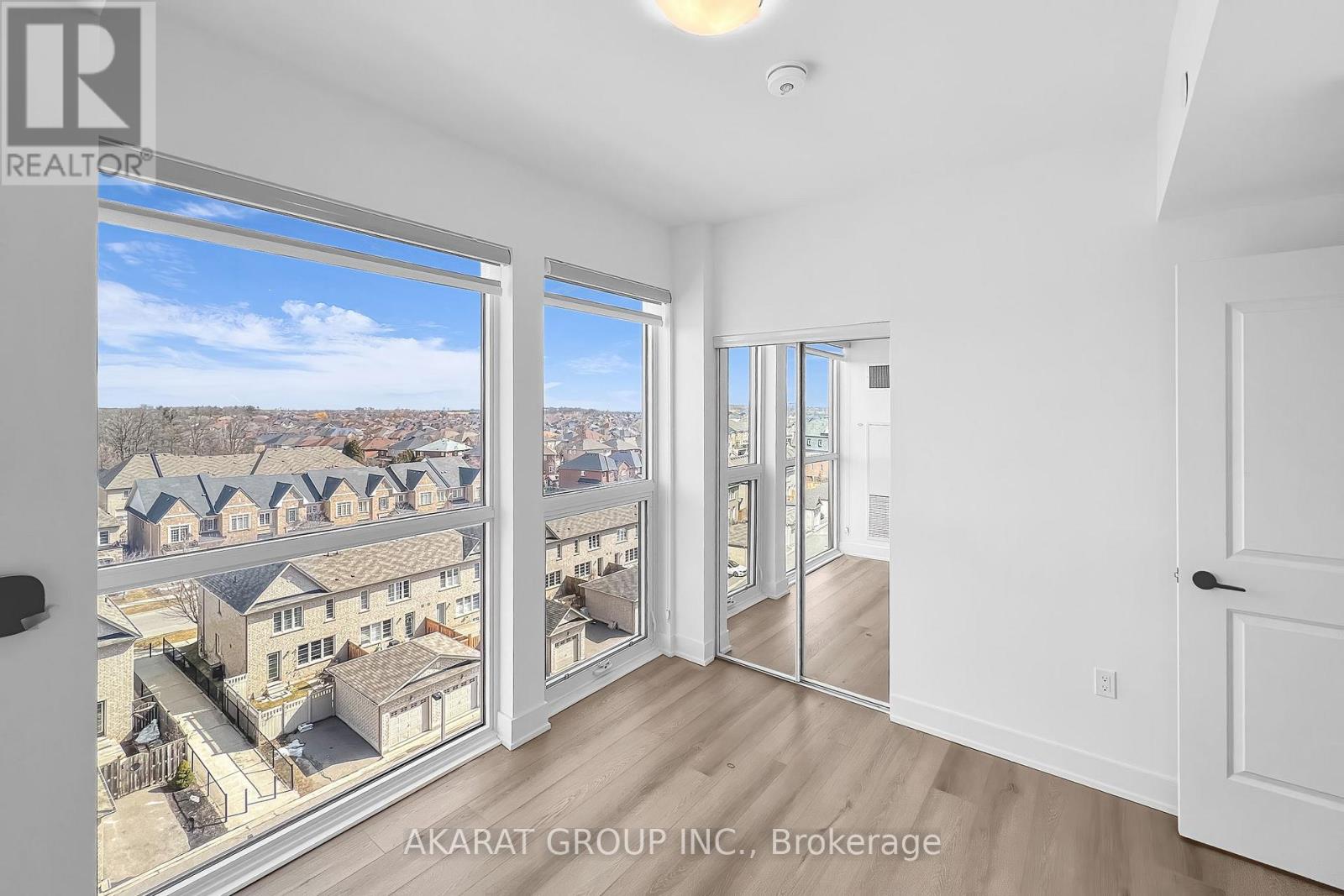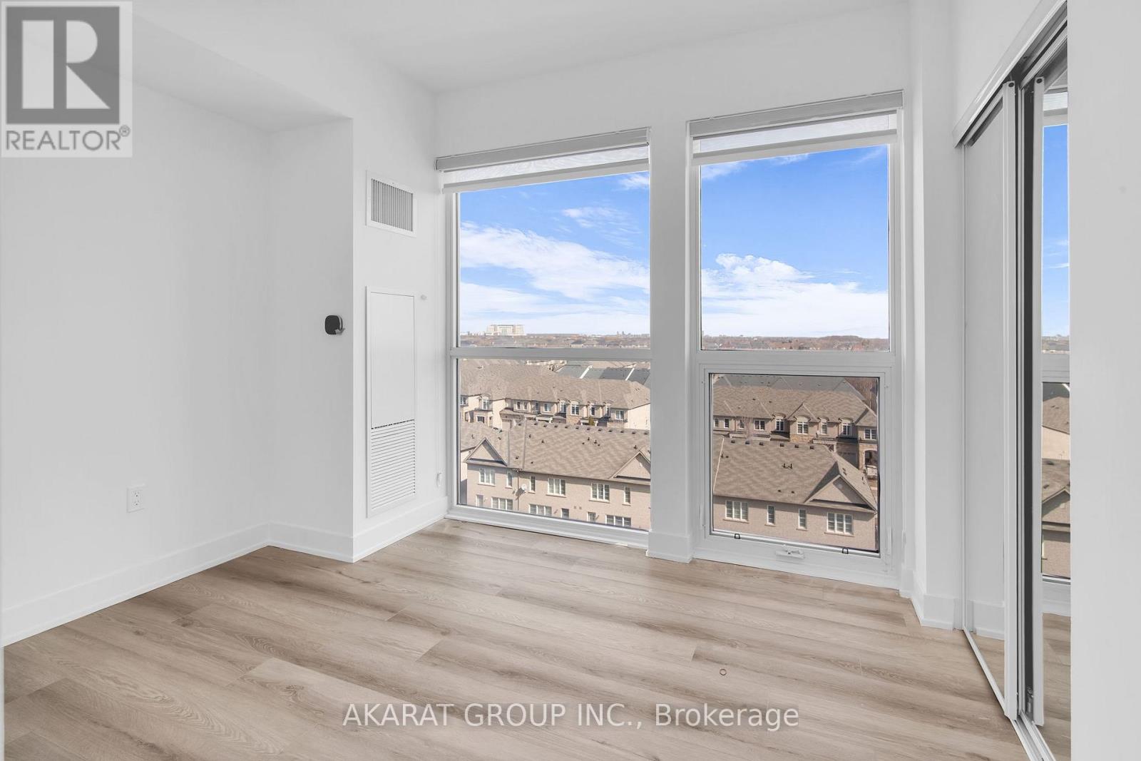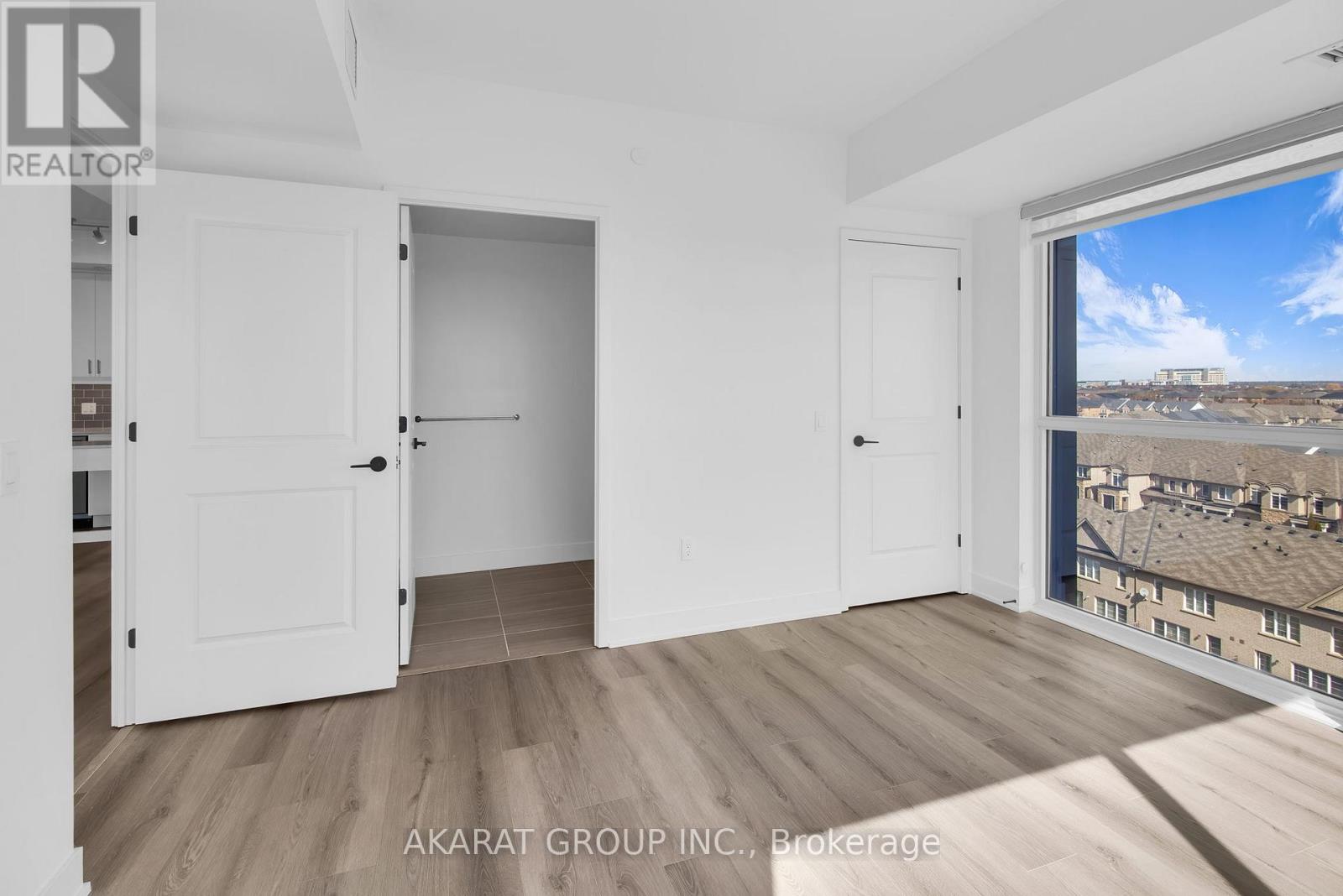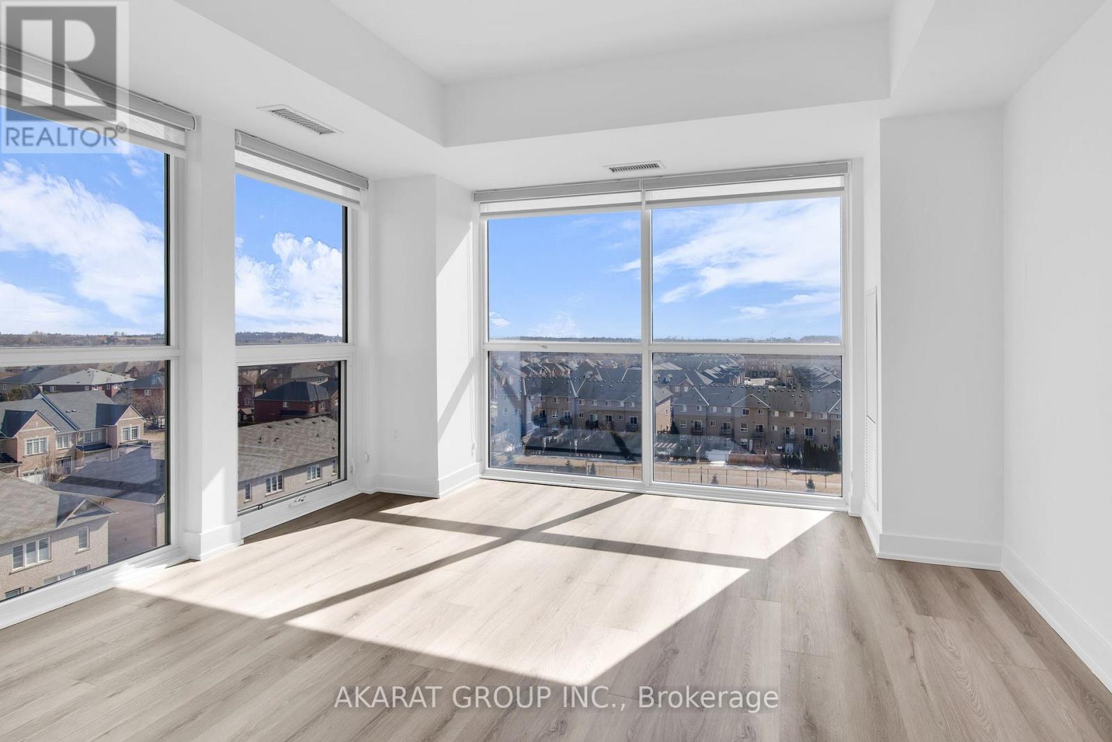 Welcome to this spacious 962 SQFT and well-designed 2 Bedroom + Den, 2 Washroom unit located on the 7th floor, offering a clear and unobstructed southeast view that reaches Lake Ontario and brings in natural light all day. This open-concept layout features approximately 9-foot smooth ceilings and thoughtfully selected finishes throughout. The kitchen is equipped with stainless steel appliances, white shadow granite countertops, subway tile backsplash, 39" upper cabinets, and under-cabinet lightingideal for everyday cooking and entertaining. The living and dining areas flow seamlessly, finished with modern laminate flooring, Zebra blinds, and pre-wired for wall-mounted TV. The den offers a flexible space for a home office, reading nook, or extra storage.The primary bedroom includes a walk-in closet and a private ensuite with a glass shower and premium ceramic tile. The second bedroom is bright and well-sized, with a full bathroom nearby. Additional features include a stacked washer and ventless dryer, mirrored closet doors, USB charging outlets, and Ecobee Smart Thermostat with Alexa. Step out onto the balcony for fresh air and a clear southeast view.Includes one parking and one locker. Tarion Warranty included, as this is a brand new unit.Located in a modern smart building with keyless entry, free internet, and full connectivity. Enjoy resort-style amenities: gym with Peloton bikes, rooftop lounge, pool/spa, pickleball court, golf simulator, BBQ areas, media/games room, work/share space, car wash, pet wash station, and access to 200 km of scenic trails.Property Taxes not assessed yet. ** Some Photos Virtually Staged. (id:64974)