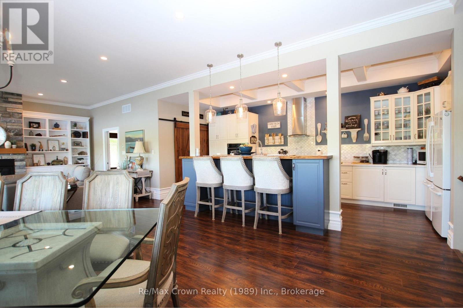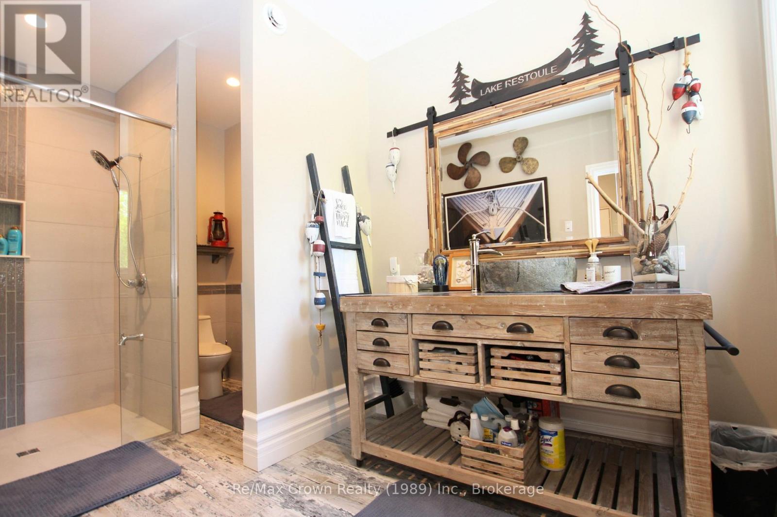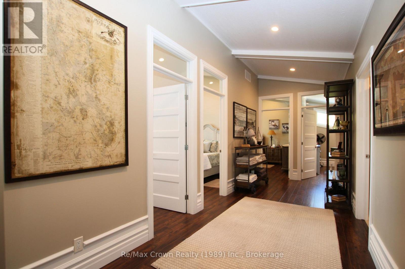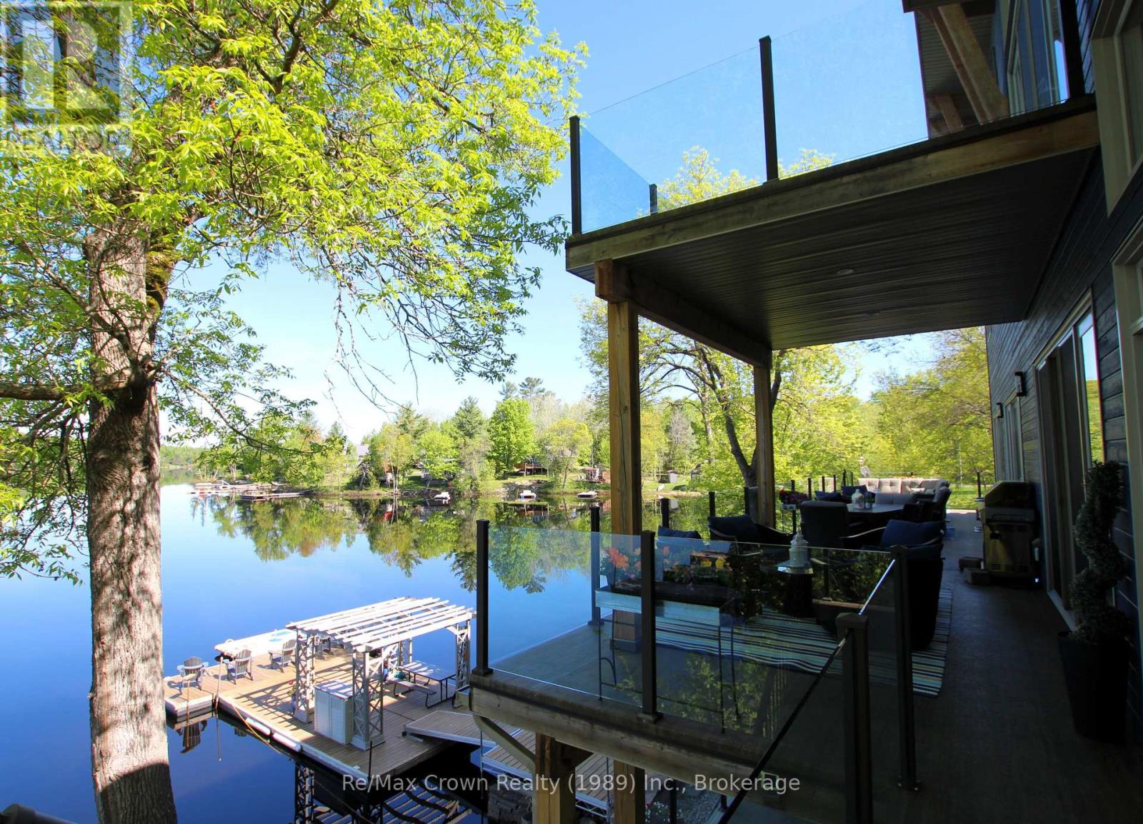 Welcome to luxury living on sought-after Restoule Lake-an exceptional 5-bedroom, 4-bath executive waterfront home offering over 4,000 sq. ft. of living space, soaring 10-foot ceilings, and more than 500 feet of spectacular shoreline. Designed to capture breathtaking lake views, the open-concept living, dining, and kitchen area features a dramatic wall of windows overlooking the water and flows seamlessly onto an impressive 60-foot front deck with sleek glass railings-perfect for entertaining or simply soaking in the scenery. The chef-inspired galley kitchen is built for both everyday living and large gatherings, offering double dishwashers, double wall ovens, two refrigerators, and a spacious walk-in pantry, all open to the heart of the home. The main level also includes: a private office ideal for working from home, bright three-season sunroom & convenient 3-piece bath. Upstairs, you'll find five spacious bedrooms, including a beautiful primary suite with W/I closet and ensuite plus a private balcony overlooking the lake. A second-floor laundry and additional bathroom provide comfort and convenience for family and guests. The fully finished lower level offers exceptional space for relaxing and entertaining with a rec room/games room, and media area, all with a covered walkout to the patio and hot tub. Step outside to a beautifully designed interlocking brick patio with fire pit, and enjoy effortless access to the water with a 50' x 16' floating dock just steps from the patio. This absolutely stunning waterfront property delivers space, style, and spectacular lakefront living on one of the area's most desirable lakes. (id:64974)