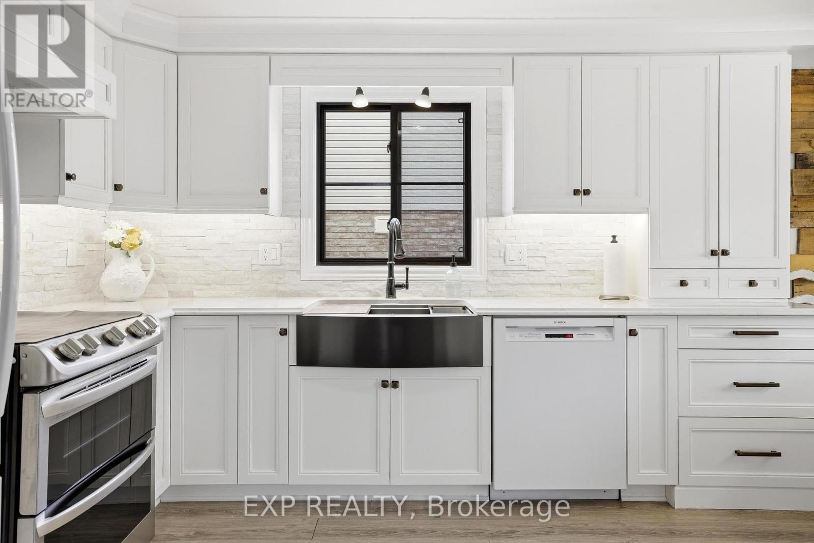 Welcome to 733 Breakwater Cres, a beautifully updated family home tucked into one of Waterloo's most connected and community-focused neighbourhoods. Offering just over 1,600 sq ft of thoughtfully designed living space, a finished basement, and a distinctive exterior, this home blends style, comfort, and functionality. From the moment you arrive, you'll notice that no other home in the subdivision looks quite like this one, thanks to the custom front entrance and inviting porch. In the spring, the porch sits beneath a fragrant canopy of lilacs, creating the perfect place to sit and enjoy the neighbourhood. The landscaped gardens are designed for easy maintenance with Boston ivy and flowering periwinkle ground cover, while the backyard's yellow trumpet creeper often attracts hummingbirds. Inside, the home welcomes you with soaring ceilings at the front entrance and warm natural light throughout. Morning sun fills the kitchen and living room, highlighting the beautifully updated farmhouse-inspired kitchen (2017) with quartz countertops, furniture-style cabinetry with crown moulding, an apron sink, double oven, and hidden range hood. The raised west-facing family room is the perfect place to relax while enjoying sunset views. Upstairs you'll find three comfortable bedrooms and an updated main bathroom with a practical low-profile tub ideal for kids or pets. The finished basement features a theatre room with surround sound and sound-absorbing panels, perfect for movie nights. Updates include roof (2019), black-framed windows (2024), heat pump (2025), dishwasher (2021), and oven (2023). Poured concrete patios at the front and back add outdoor living space. Located steps from walking and biking trails connecting to RIM Park, this neighbourhood is known for its strong community with a neighbourhood garden, winter skating rink, and seasonal gatherings. With a dbl car garage, modern finishes, and a welcoming community, 733 Breakwater Cres is a place you'll love to call home. (id:64974)