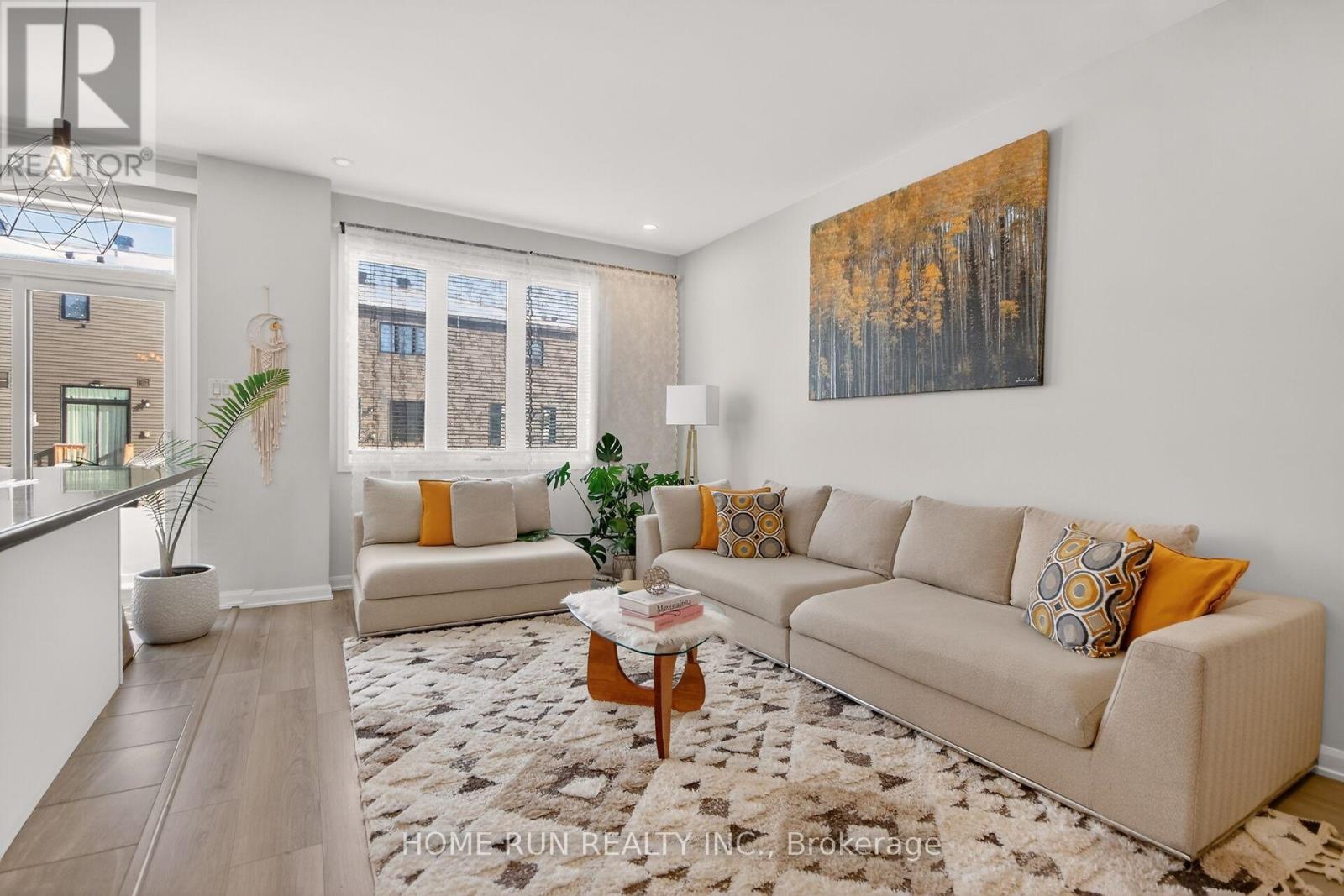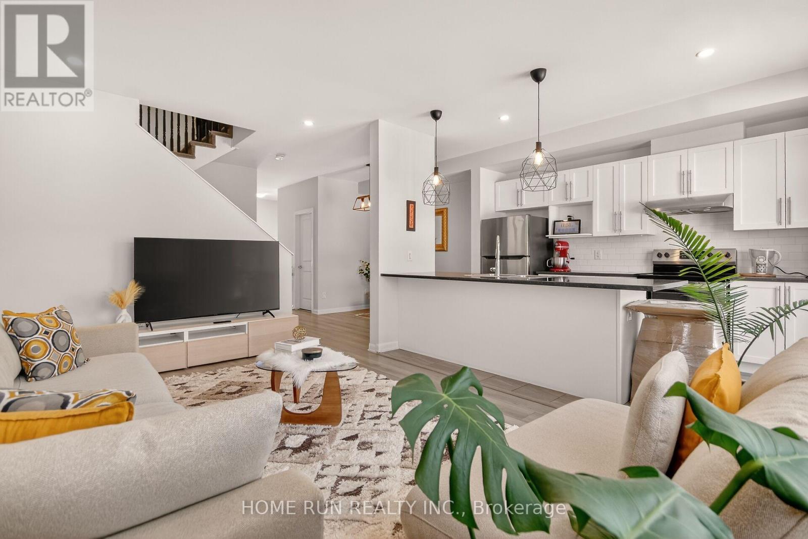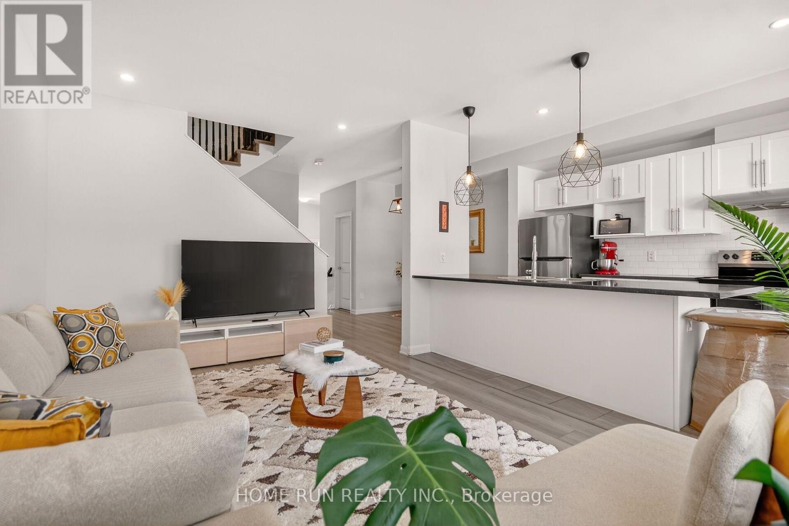 MOVE IN READY freshly painted and impeccably maintained freehold townhouse on a quiet street in Barrhaven (Mino's Harmony community). This popular Haven model built in 2022 offers 3 bedrooms, 3 bathrooms, and 1 attached garage with inside entry. The total living space is approximately 1768 sqft. including a finished basement of 390 sqft. Open-concept main floor features 9-foot ceiling, luxury vinyl floor, modern lighting, dedicated dining area, and cozy living/family area. Chef's kitchen includes a large island with quartz countertop, stainless steel appliances, and ample pantry space. Second floor boasts 3 generous sized bedrooms and 2 full bathrooms. The primary bedroom features a walk-in closet and 3-piece ensuite. On the lower level, the bright family/recreation room is fully finished as a perfect spot for office, gym, movies, or other entertainment. Within the school boundary of John McCrae Secondary School. Walking distance to schools, parks, bus stops, grocery stores, and Minto Recreation Complex. Close to all amenities. Easy access to Costco, Chapman Mills Marketplace, shopping, gas stations, and more. 24 hours irrevocable for all offers. (id:64974)