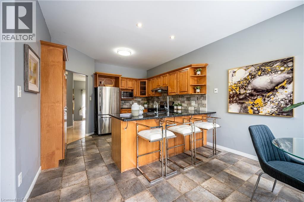 Welcome to this exceptional home in the Eastridge community! This move-in ready 2-storey detached home offers 4 bedrooms and 4 bathrooms, ideally located within walking distance to schools. Situated beside a charming neighborhood park and backing onto Rim Park and the Grand River, this property offers an unbeatable combination of convenience and natural beauty. The kitchen features granite countertops, a stylish backsplash, and a gas stove, perfect for home chefs. The main level boasts 9-ft ceilings, a laundry room, a 2-piece bath, formal living and dining areas, and a spacious eat-in kitchen. The living room impresses with soaring 12-ft ceilings, enhancing the sense of openness and light. Upstairs, you’ll find a large and versatile family room with 10-ft ceilings and a cozy gas fireplace — easily convertible into an additional bedroom for added functionality. This level also includes three additional bedrooms. The primary suite offers two separate walk-in closets and a luxurious ensuite complete with a soaker tub. The fully finished basement features a separate side entrance, providing excellent potential for future rental income or in-law setup. It includes flooring throughout, an office/bedroom, a 3-piece bath, a recreation room, and ample storage space. Don’t miss this rare opportunity to own a beautifully maintained home in one of the area’s most desirable locations! (id:64974)