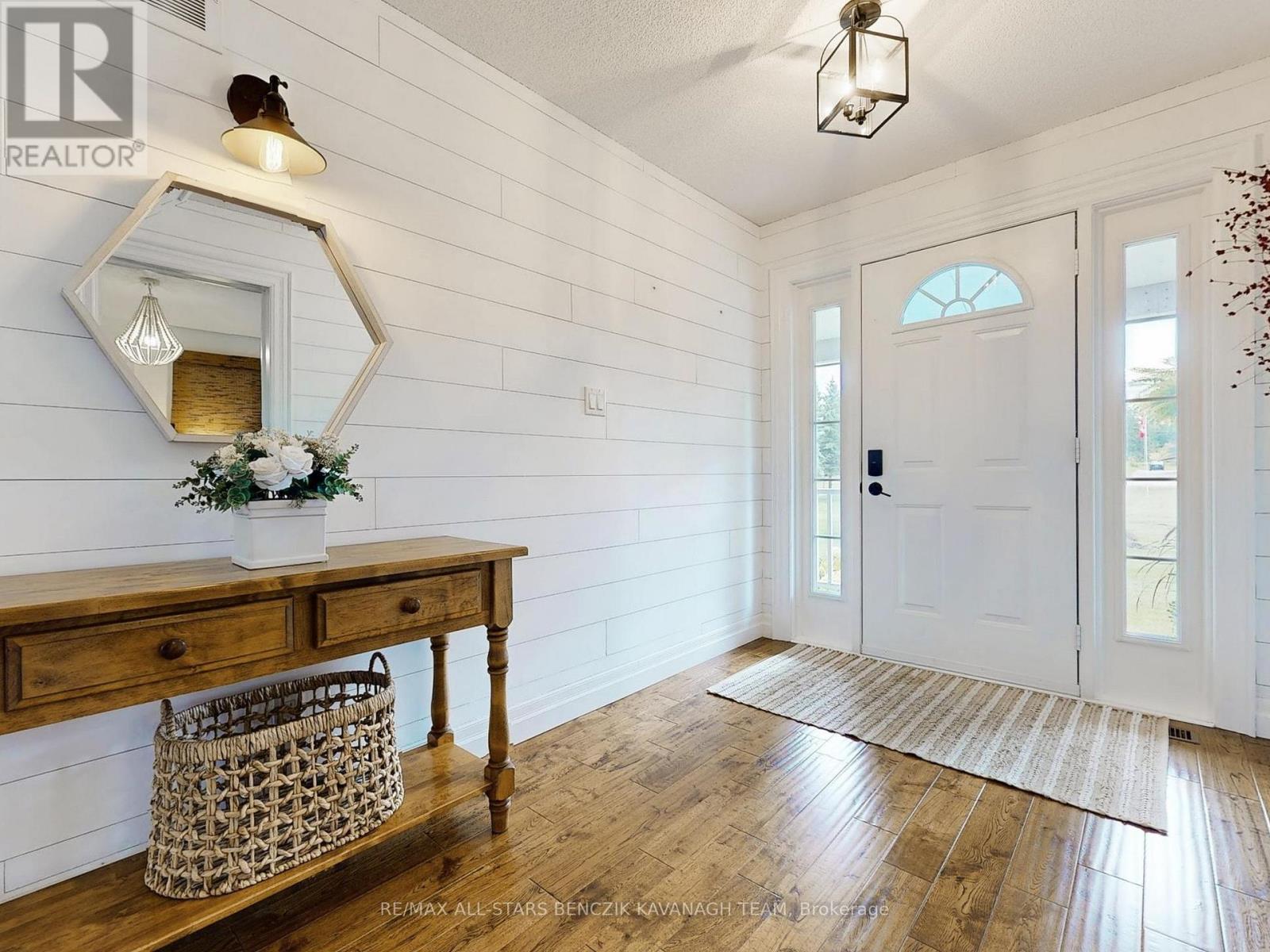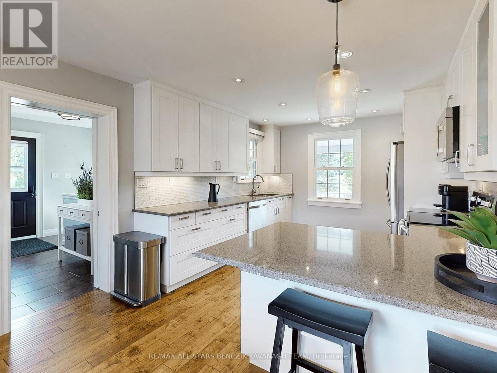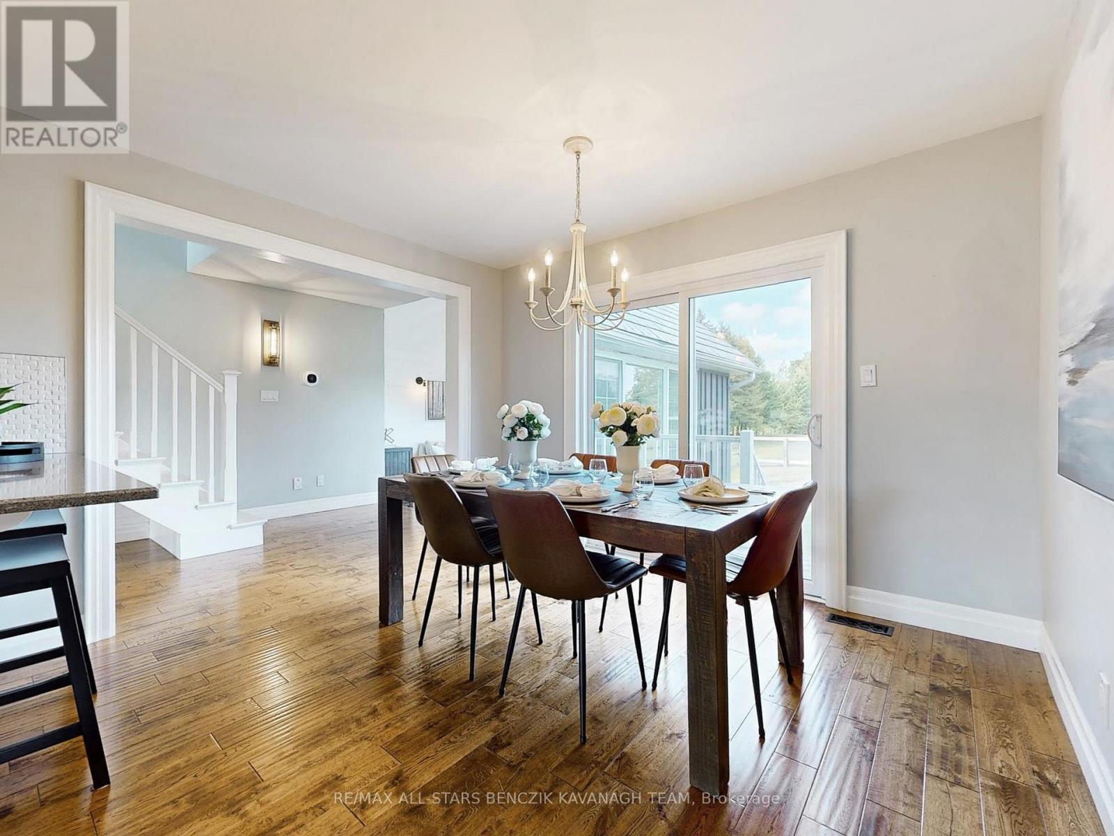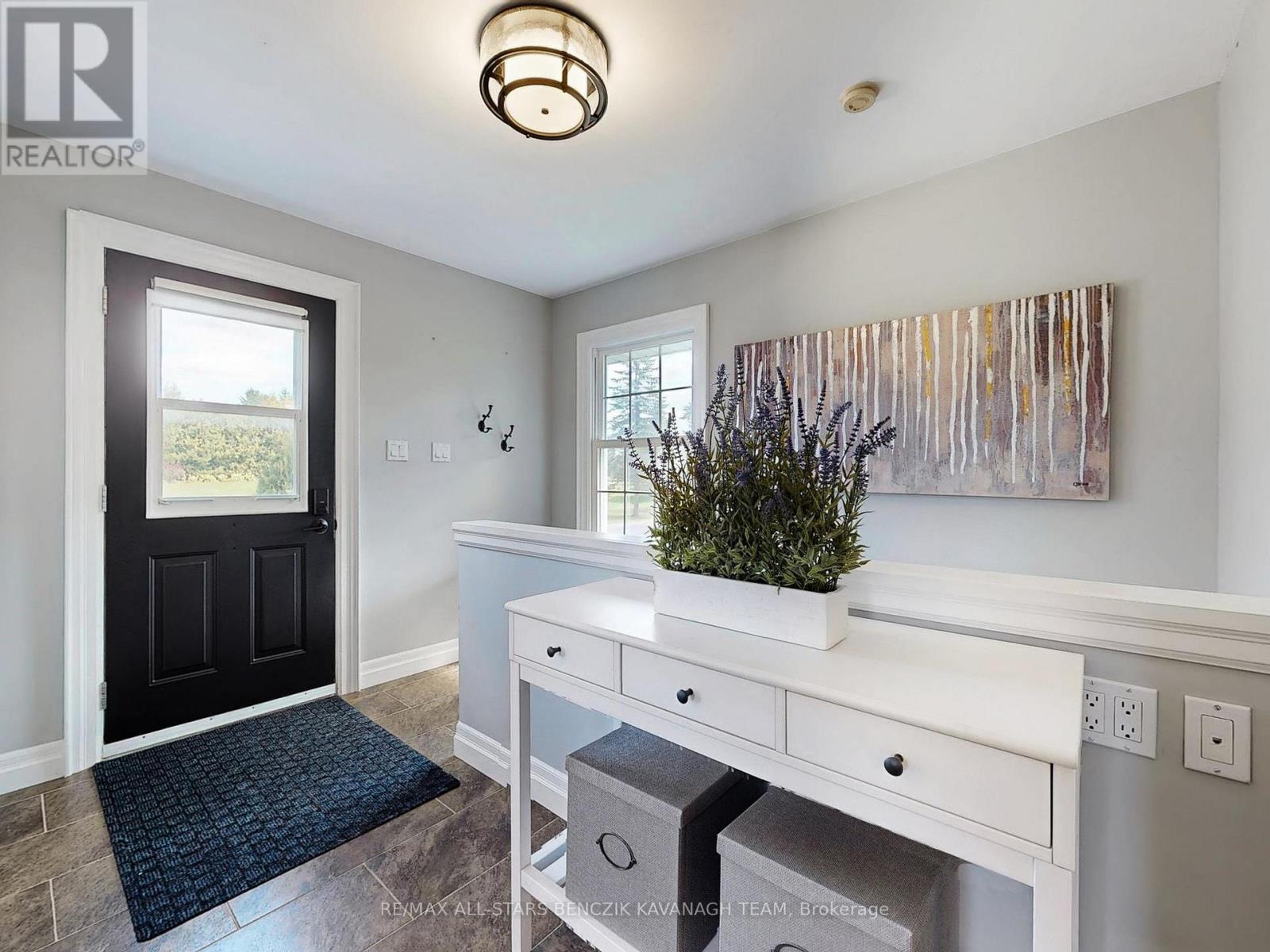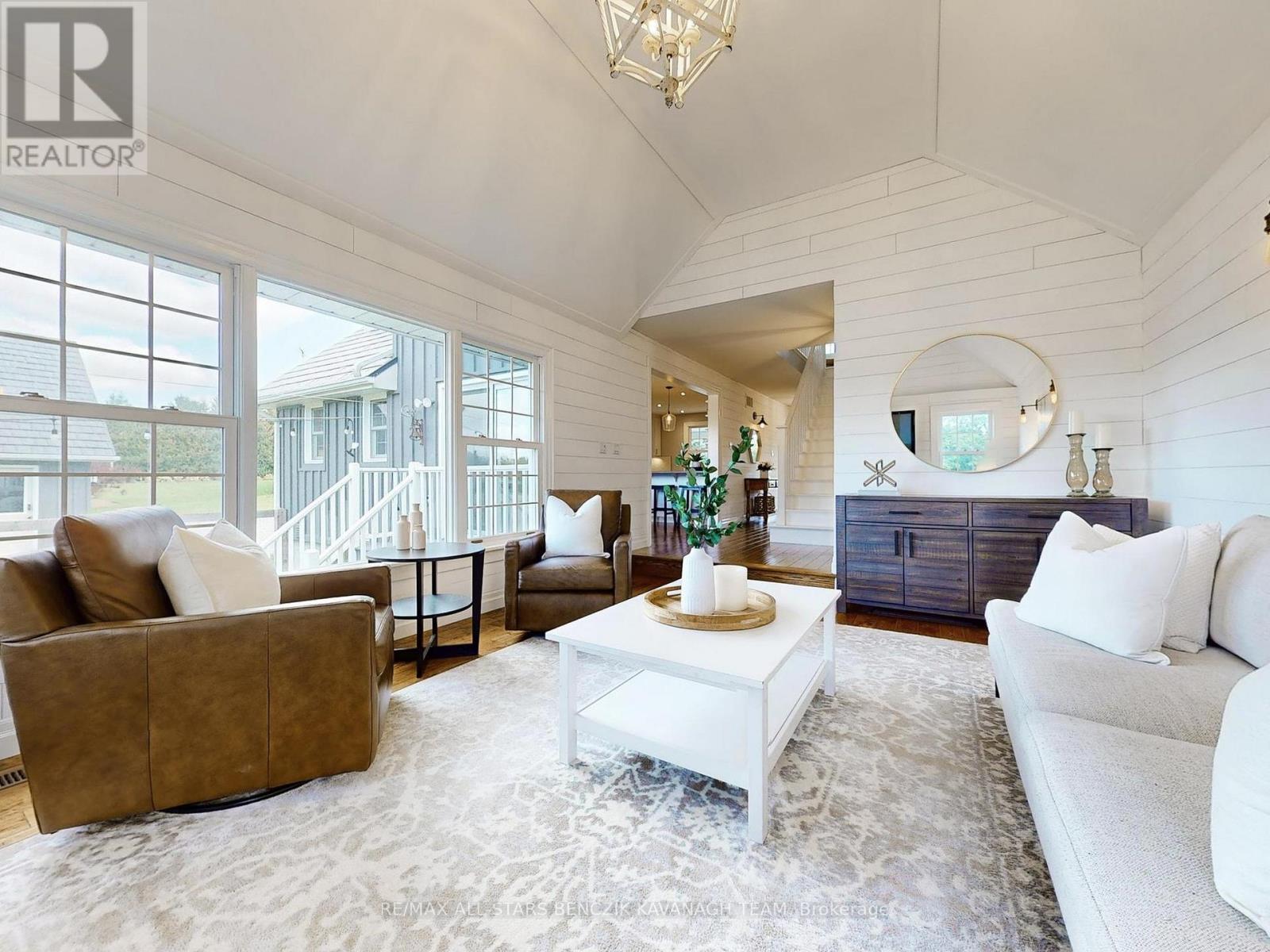 4+1 bedroom modern country home that sits on 2.31 acres of beautifully landscaped grounds, surrounded by rolling meadows, woodlands, and the serene countryside of Rural Uxbridge. Boasting exceptional curb appeal, a long lamp-lit driveway leads to an elegant board and batten exterior, a welcoming front porch, and vibrant floral gardens during the warmer months. Inside, the luxury home features a shiplap-accented foyer which opens to a refined sunken family room with hardwood flooring, fireplace, and an 11' vaulted ceiling. The elegant spacious kitchen features stainless steel appliances, granite countertops, a mosaic stone backsplash, under-cabinet lighting, a walk-in pantry, and a breakfast area with backyard access. A well-appointed mudroom provides a side entrance and direct access to the finished basement, which includes a recreation area with dry bar, fifth bedroom, laundry, and abundant storage. The main floor primary suite offers a walk-in closet and a 3-piece ensuite with a marble-topped vanity and heated floors, while the second floor features three generous bedrooms and a 4-piece main bathroom with a stone sink. Additional highlights include a heated 600sqft detached garage, a covered stone patio, fire pit surrounded by interlock stone, fenced yard, and garden shed. Conveniently located just a short drive from a local cider brewery, bison farm, fresh farm produce, and the Town of Uxbridge for everyday essentials. This home seamlessly blends elegance and lifestyle, offering refined living amongst the serenity of the countryside. (id:64974)