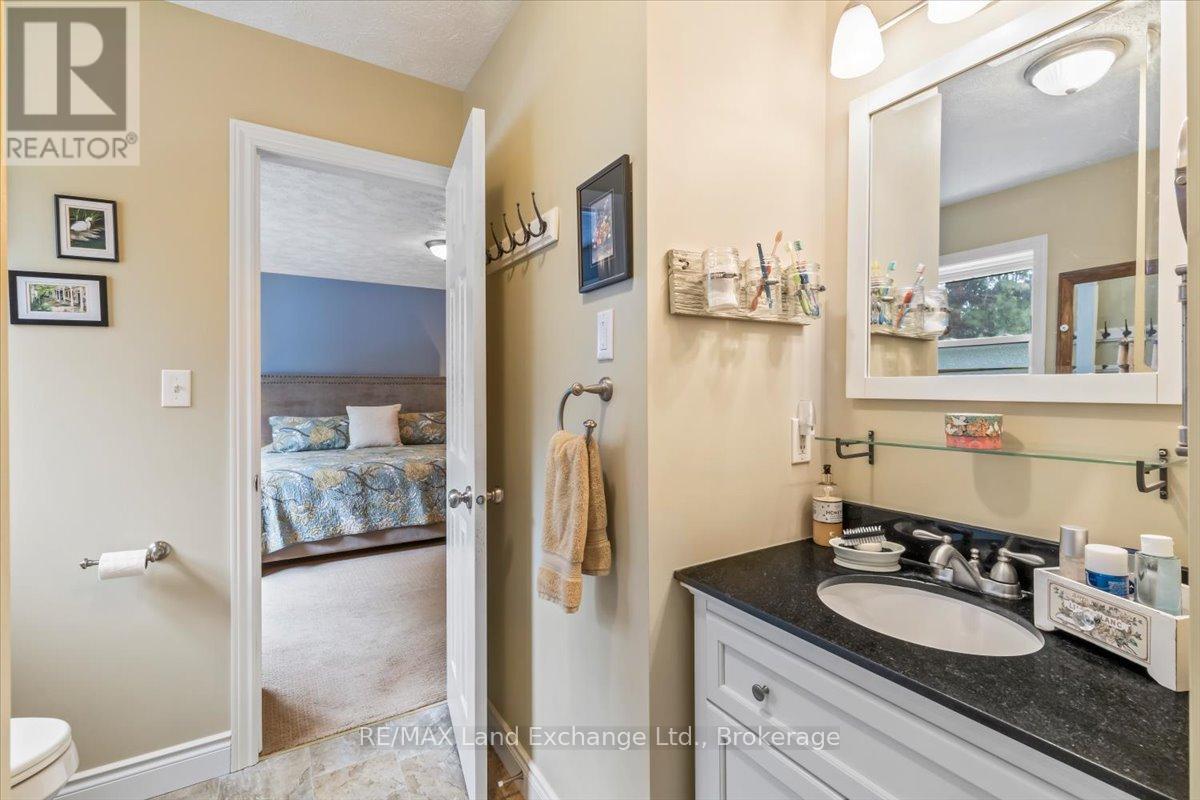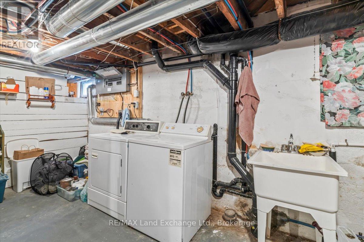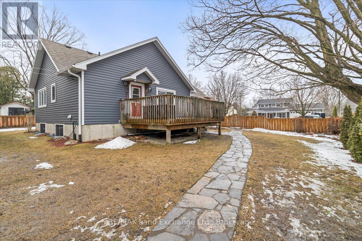Welcome to this charming bungalow offering convenient one-level living in beautiful Port Elgin. Ideally located close to amenities and within walking distance to the high school, parks, and trails, this home offers both comfort and convenience. A walking trail along the west side of the property provides added privacy and easy access to outdoor recreation. The main floor features an open-concept kitchen, dining, and living area, along with three bedrooms, a guest bathroom, a private ensuite, and main floor laundry. An addition to the main floor and basement was constructed in 2013, and the home has seen many updates over the years. The basement offers additional flexibility with large windows, a second laundry area, a den, and could easily be finished, should additional living space be desired. With both main floor living and a full basement, this property is well-suited to a variety of buyers. Additional features include a whole-home standby generator, hardwood flooring, a newer concrete driveway and walkway, and a storage shed with a concrete floor and hydro. The generous 90' x 100' lot is fully fenced, providing a great outdoor space for family, pets, or entertaining. This is an excellent opportunity to enter the real estate market. Explore the 3D Tour and schedule your private showing today. (id:64974)