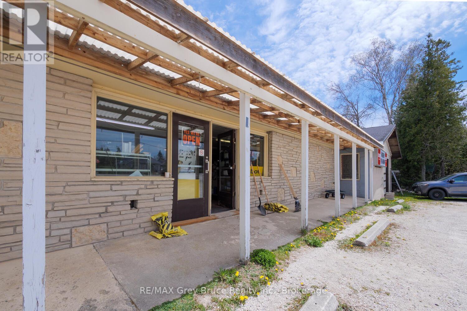 HIGHWAY COMMERCIAL OPPORTUNITY IN Tobermory - LIVE, WORK & INVEST. Unlock the potential of this high-visibility Highway 6 commercial/residential investment property in a sought-after recreational destination. With 183 ft. of highway frontage and a combined 1.3-acre parcel, this C1-a zoned mixed-use property offers exceptional exposure, strong traffic flow, and versatile income opportunities. An ideal opportunity for entrepreneurs, investors, or those seeking a business with living quarters on-site. The 2,600+ sq. ft. commercial building is designed for functionality and growth, featuring a spacious retail showroom (54' x 28.5'), additional flex space with higher ceilings, and a large, attached garage/storage area - perfect for inventory, workshop use, or service-based operations. Ample on-site parking supports customer access and commercial scalability in this high-demand tourism corridor. Connected via a convenient breezeway, the 1,550+ sq. ft. residence offers comfortable main-floor living with 3 bedrooms + office and 1.5 bathrooms. Featuring an open-concept kitchen and dining area. The living room features a cozy wood fireplace, bay window, and walkout to the front deck. Balance business and lifestyle in a thriving recreational community. Included is a second RU2-zoned vacant lot (100' x 200'), presenting further development potential. Expand your footprint or explore rental income possibilities (buyer to complete due diligence with the local municipality). The property is serviced by a drilled well and septic system. This is a rare opportunity to secure a commercial/residential property in a premier location known for tourism, outdoor recreation, and steady seasonal traffic. Capitalize on the growing demand for commercial real estate in Tobermory - a destination where business meets lifestyle. - Please kindly do not go direct for showings during business hours - a REALTOR is happy to set up a showing for you! (id:64974)