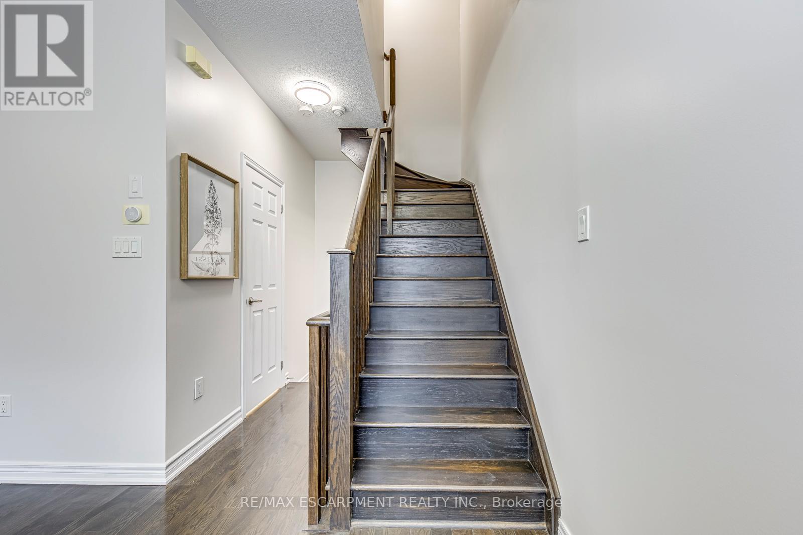 Absolutely Gorgeous 1,273 square foot Executive Freehold Townhome in Oakville's highly sought-after Westmount community, offering a perfect blend of style, comfort and unbeatable convenience. Enjoy a direct garage access from the spacious foyer.This beautifully upgraded 3-storey home features a premium stone and stucco exterior, open-concept main living level with 9' ceilings, rich dark hardwood floors, modern lighting, and a contemporary eat-in kitchen with breakfast bar, large countertops and stainless steel appliances, enhanced with a brand new range hood and stove (2025), all new faucets (2025), and LED lighting throughout (2025). The entire home has been freshly painted in 2026 and showcases new third-floor flooring (2025), creating a truly turnkey feel. Spacious living and dining areas walk out to a private balcony, ideal for relaxing or entertaining. The primary bedroom offers a walk-in closet, complemented by a generous second bedroom, upper-level laundry and a large bathroom. Located steps to parks, playgrounds, trails, community centre, hospital, shopping and everyday amenities, and just minutes to Bronte GO, Hwy 407, QEW and 403 for easy commuting. Situated in a family-friendly neighbourhood known for its highly ranked public and Catholic schools within the Westmount catchment, making it ideal for professionals, young families and investors alike. A move-in-ready home in one of Oakville's most convenient and well-connected communities. (id:64974)