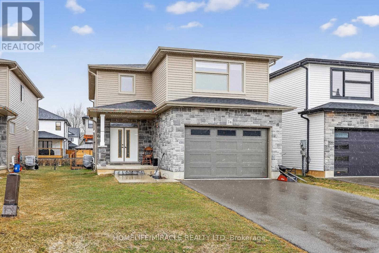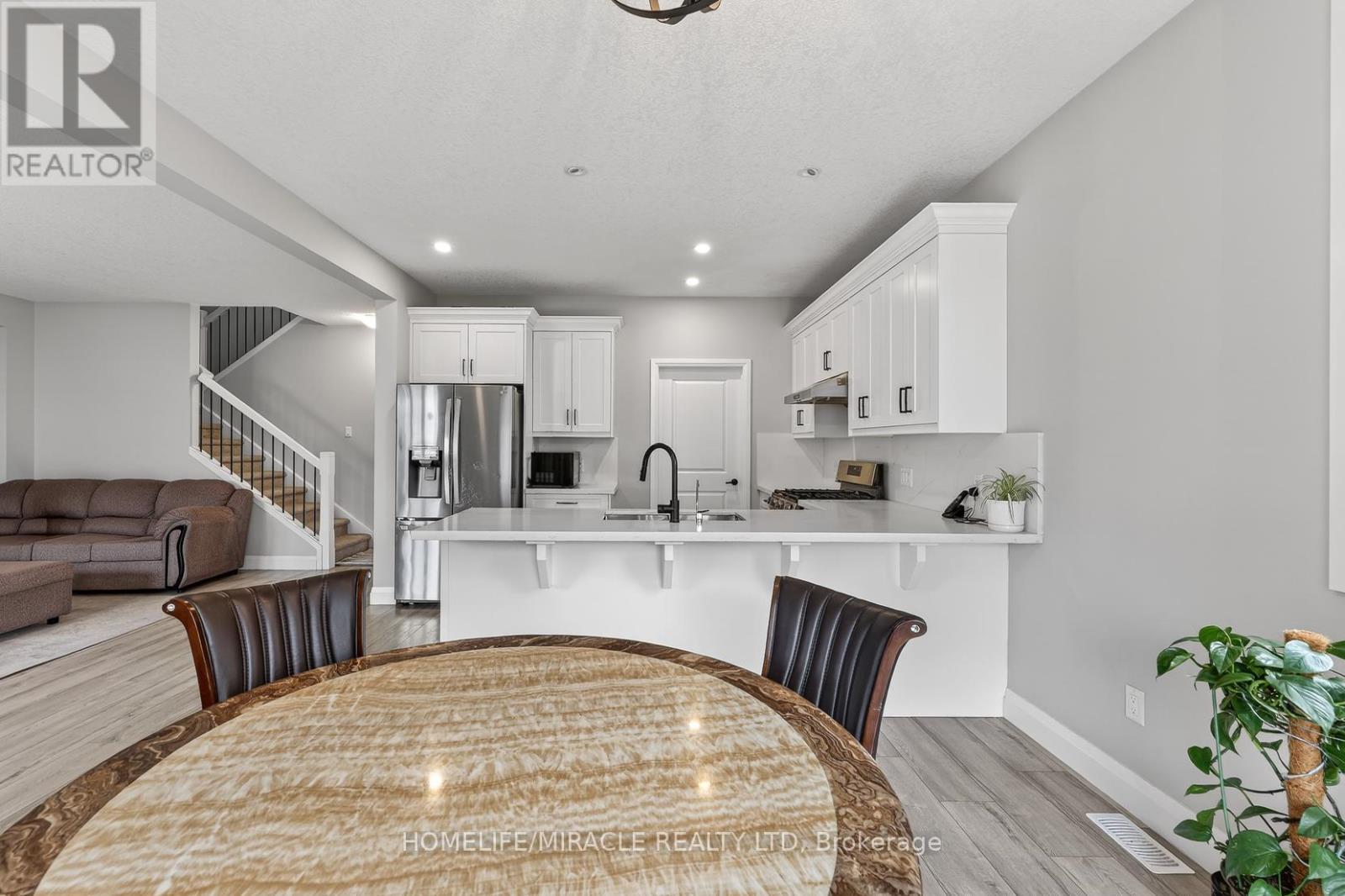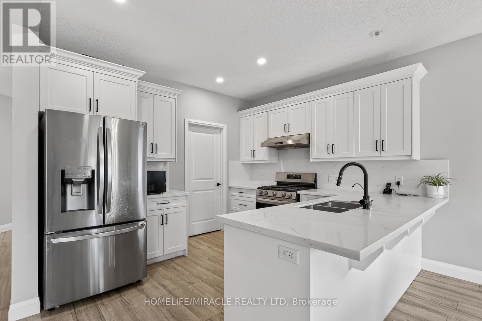 Discover refined living in this stunning modern 2-storey detached home, ideally situated in the desirable South Ingersoll community with convenient access to major highways. Nestled on a premium 40 x 98 ft lot in the sought-after Golf Estates, this home is perfectly positioned adjacent to the picturesque Ingersoll Golf Club. Showcasing exceptional curb appeal with an elegant stone façade, the home welcomes you through a spacious foyer into a beautifully upgraded, family-friendly open-concept main floor. Designed for both comfort and sophistication, the chef-inspired kitchen features quartz countertops with a seamless custom backsplash, extended white cabinetry with a large walk-in pantry. The space is enhanced by pot lights, and a generous breakfast bar-perfect for entertaining. Premium stainless steel appliances include a fridge, Gas cooktop, dishwasher, and integrated wall oven/microwave combination. A striking wood post staircase leads to the upper level, offering four generously sized bedrooms. The primary suite is a private retreat, complete with a luxurious 5-piece ensuite featuring dual vanities, a large soaker tub, and a separate glass shower. Located in a vibrant and growing community, this exceptional home is close to top-rated schools, parks, and everyday amenities-making it an ideal choice for families seeking both style and convenience. (id:64974)