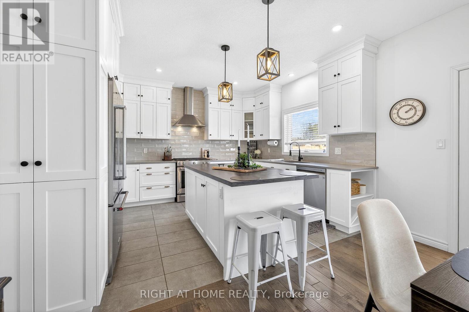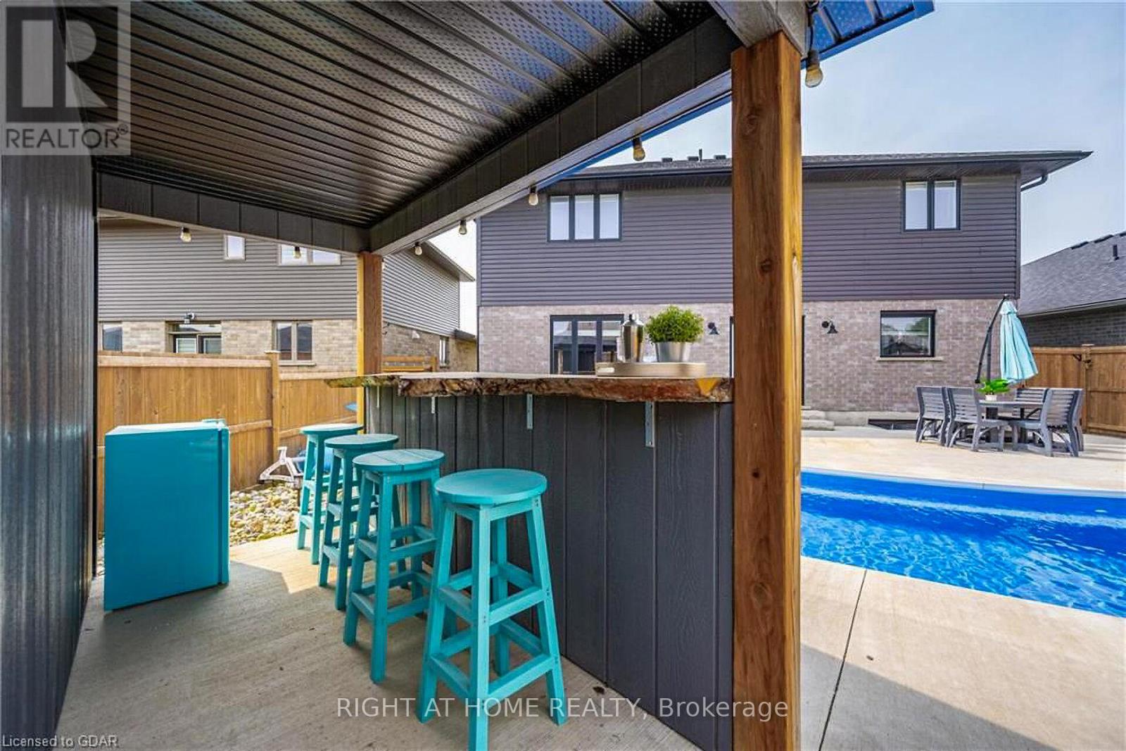 74 Farley: Where Custom Craftsmanship Meets Resort-Style Living. Experience the perfect blend of luxury and comfort in this meticulously maintained 2018 custom home by renowned builder James Keating. Thoughtfully crafted with timeless design and high-end finishes, this residence is an entertainer's dream, boasting over 3500 sq ft of living space, offering five spacious bedrooms and four bathrooms across a refined, open-concept floor plan. The main level makes a grand impression with soaring 9-foot ceilings and rich hardwood flooring. At its heart lies a chef's kitchen featuring quartz countertops, premium appliances, and a custom gathering island that flows seamlessly into a family room anchored by a stunning feature wall. For those working from home, the separate dining room doubles as a sophisticated executive office. The elegance continues upstairs with four generous bedrooms, including a primary retreat featuring a walk-in closet and a newly updated spa-inspired ensuite. The lower level extends the living space further with a professionally finished basement, complete with a custom wet bar, large rec room, and an additional bedroom with an egress window. Step outside into your private backyard oasis. Whether hosting summer soirées or enjoying quiet evenings, the heated saltwater pool and charming cabana create a vacation-at-home atmosphere. Located in a premier Fergus neighborhood, you are moments from top-tier schools, parks, and charming local amenities. (id:64974)