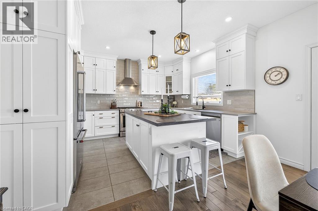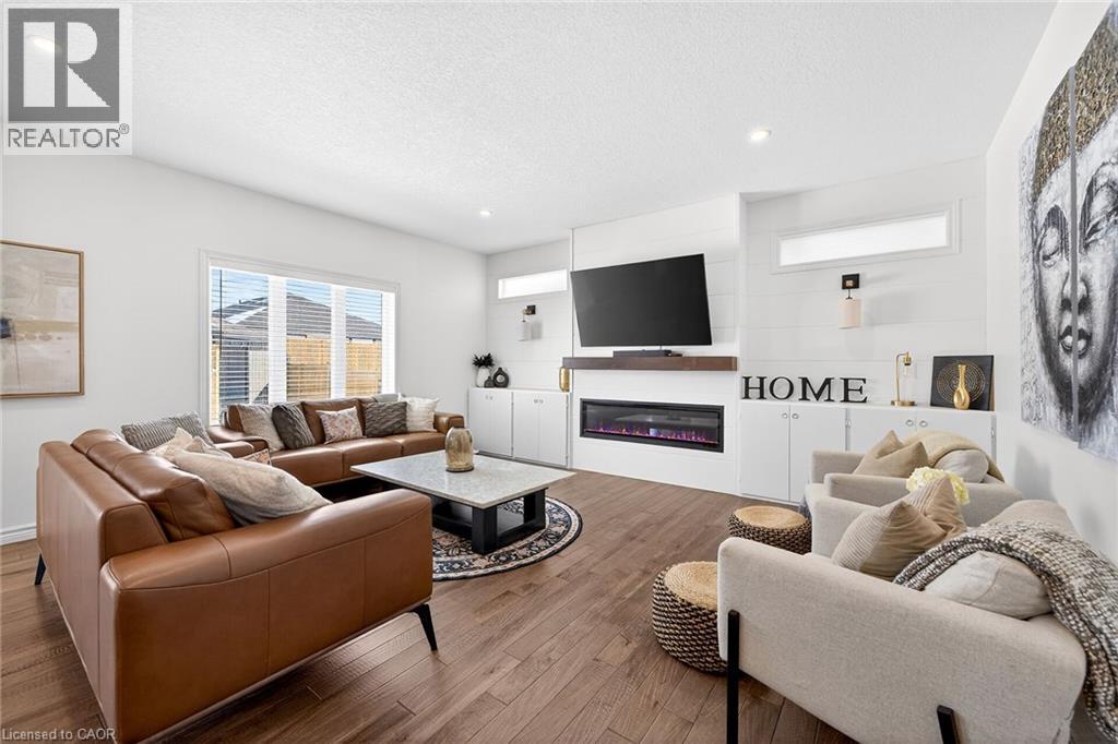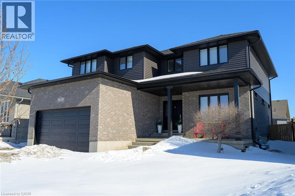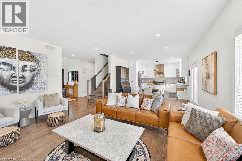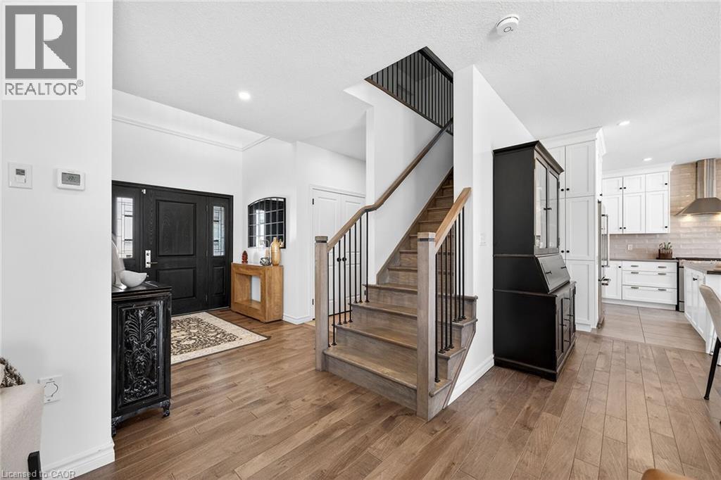 74 Farley: Where Custom Craftsmanship Meets Resort-Style Living. Experience the perfect blend of luxury and comfort in this meticulously maintained 2018 custom home by renowned builder James Keating. Thoughtfully crafted with timeless design and high-end finishes, this residence is an entertainer’s dream, boasting over 3500 sq ft of living space, offering five spacious bedrooms and four bathrooms across a refined, open-concept floor plan. The main level makes a grand impression with soaring 9-foot ceilings and rich hardwood flooring. At its heart lies a chef’s kitchen featuring quartz countertops, premium appliances, and a custom gathering island that flows seamlessly into a family room anchored by a stunning feature wall. For those working from home, the separate dining room doubles as a sophisticated executive office. The elegance continues upstairs with four generous bedrooms, including a primary retreat featuring a walk-in closet and a newly updated spa-inspired ensuite. The lower level extends the living space further with a professionally finished basement, complete with a custom wet bar, large rec room, and an additional bedroom with an egress window. Step outside into your private backyard oasis. Whether hosting summer soirées or enjoying quiet evenings, the heated saltwater pool and charming cabana create a vacation-at-home atmosphere. Located in a premier Fergus neighborhood, you are moments from top-tier schools, parks, and charming local amenities. (id:64974)