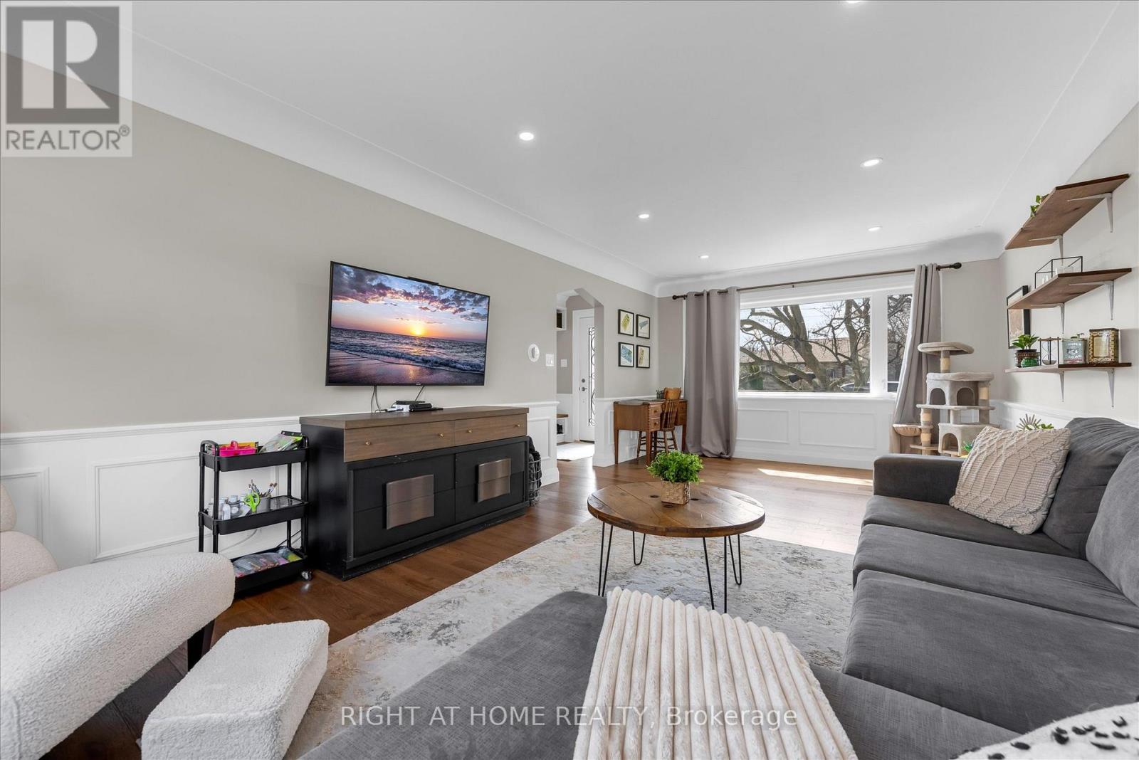 Bright and tastefully finished two storey home on a quiet cul-de-sac in desirable Stoney Creek neighbourhood. Steps to Green Acres Park and community pool. Walking distance to downtown Stoney Creek and Eastgate Mall. Property offers a private, oversized backyard with shed/workshop and plenty of potential to build your outdoor oasis. Mature trees and shrubbery throughout. Exterior features traditional red brick finish with black and white accents and large driveway. A blend of mid century character and modern updates compliment a well thought out floor plan with large living spaces and bedrooms. Finished basement with spacious laundry room and rec room featuring projector and surround setup. Recent updates include roof (2025), decking (2019), windows and doors (2013-17) and kitchen (2018). (id:64974)
