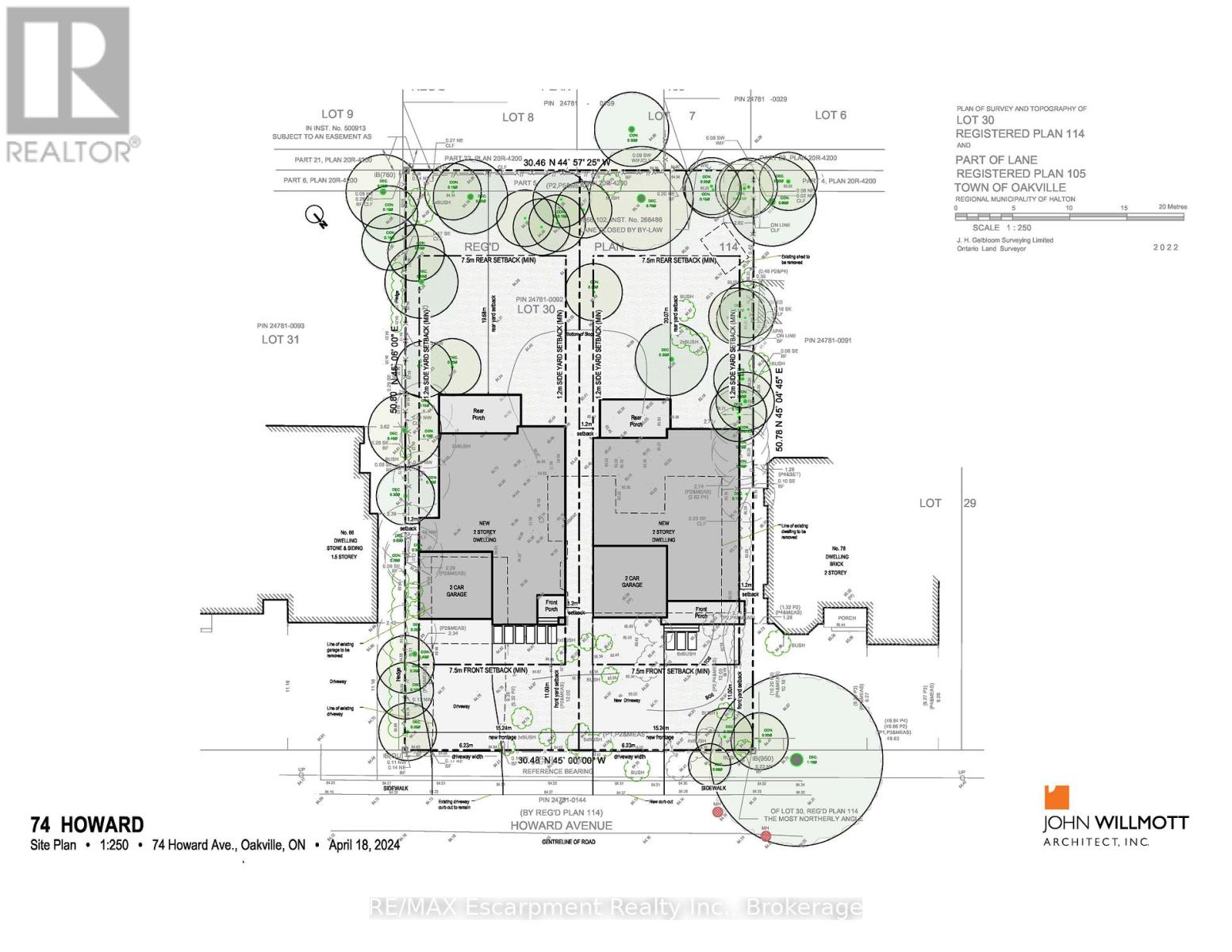 This English Country Garden home, framed by a storybook white picket fence, sits on a truly exceptional 100' x 168' lot in Orchard Beach, south of Lakeshore Rd in Old Oakville. Quiet and serene Howard Avenue, just two blocks long, is one of only a handful of streets in Oakville offering unobstructed views of Lake Ontario. Further 74 Howard Avenue enjoys coveted southwest exposure, bathing the home in golden-hour light. Cherished by the same owners for 30 years, this residence has been a wonderful home and location to raise their family. The gardens are simply stunning, with perennial plants, too numerous to mention. The home offers 4+1 bedrooms and features two thoughtfully integrated additions. The first includes a spacious kitchen, office, and principal suite with a gas fireplace. The second is a vaulted, light-filled family room with an additional gas fireplace. This is a wonderful home for dinner parties with a formal dining room and an architecturally charming living room featuring an original well enjoyed wood-burning fireplace. A detached, oversized double garage/coach house with loft has most recently been used as an office. The property offers exceptional flexibility: enjoy as-is, renovate, or redevelop. RL3-0 zoning allows premium lot coverage, with permits in place and transferable to sever and build two homes. Severance approval is based on a conceptual design by John Willmott, Architect, envisioning up to a 3,331 sq ft, 4+1-bedroom residence with a two-car garage. Morning walks deliver breathtaking sunrises by the lake, while the SW exposure provides long, light-filled evenings ideal for indoor-outdoor living. The tree-lined perimeter offers rare privacy. Just a short stroll to downtown Oakville, boutique shopping, fine dining, top-rated schools, and major highways. Premium land offerings in Old Oakville are rare-secure your legacy in one of the GTA's most prestigious settings. Luxury Certified. (id:64974)