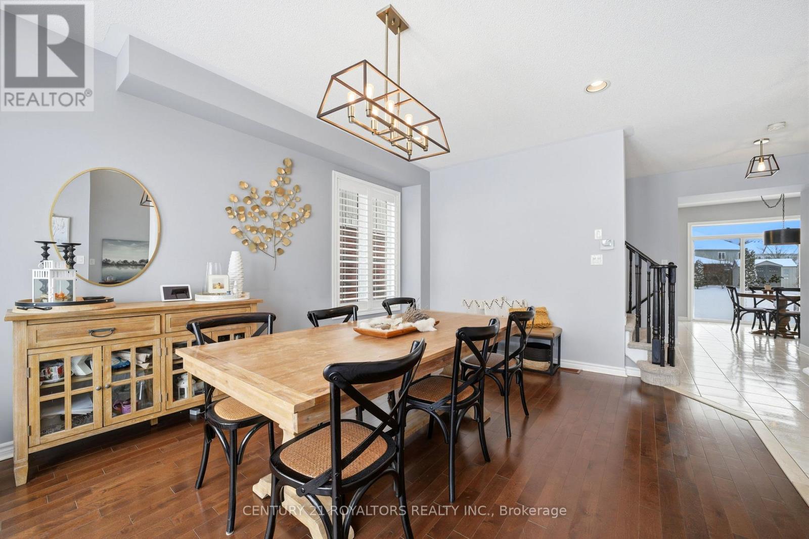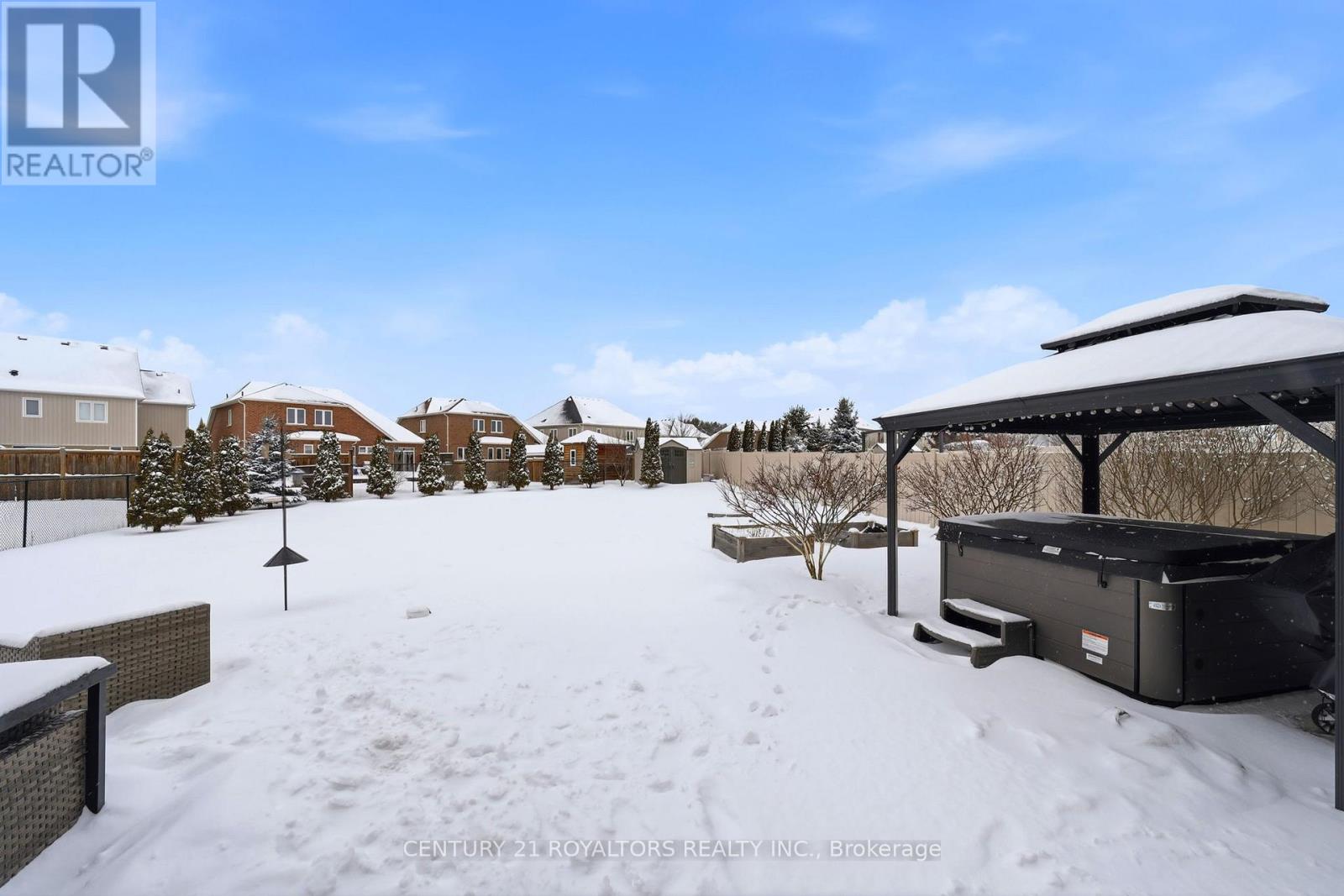 Welcome to this beautiful family home offering modern comfort and exceptional outdoor living in the growing community of Angus. Bright and spacious throughout, the home features 9-foot ceilings, elegant hardwood flooring, ceramic tile, and California shutters throughout. The inviting eat-in kitchen, a convenient breakfast bar, stove, and stainless steel appliances. Step outside to a large poured concrete patio overlooking a massive, fully fenced backyard complete with a sprinkler system and a relaxing hot tub-perfect for entertaining family and friends. Additional highlights include a top-of-the-line water filtration system, stone landscaping at the front for impressive curb appeal, main floor laundry, and inside entry to the double garage. Enjoy The Convenience Of No Sidewalk, Allowing For Extra Driveway Parking And Easier Winter Maintenance. The spacious primary bedroom retreat features a walk-in closet and a full ensuite with a luxurious soaker tub and separate shower. Three additional generously sized bedrooms provide plenty of room for a growing family. The full unfinished basement creates the perfect opportunity to design the space according to your future vision-whether it's a recreation room, home gym, theatre, or in-law suite. Located in the family-friendly community of Angus, this home is close to parks, schools, recreation facilities, and everyday amenities, while also benefiting from low property taxes-making it an outstanding opportunity for homeowners. (id:64974)