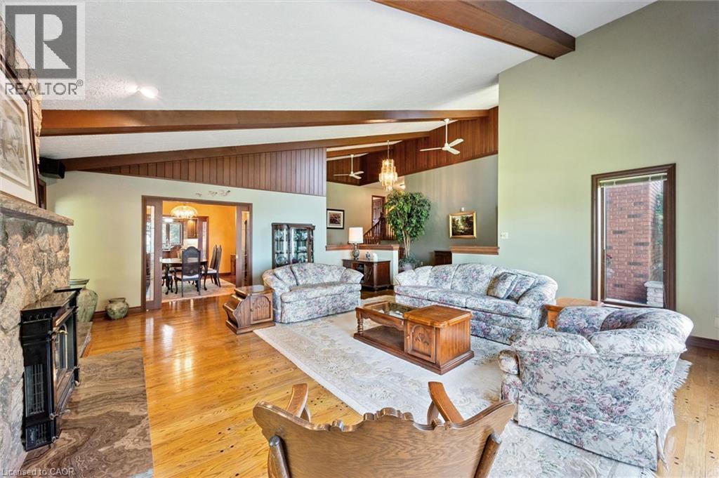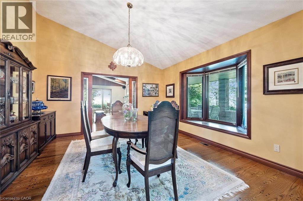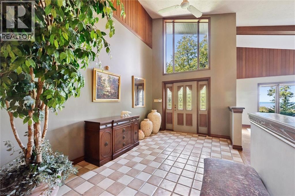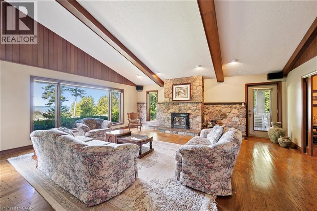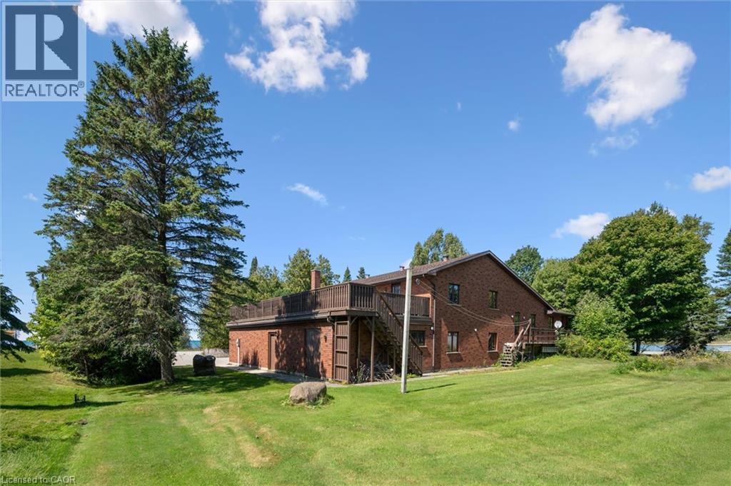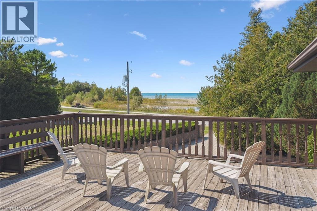 Welcome to Miramichi Bay Road Saugeen Shores! This magnificent side split home sits directly on Miramichi Bay, with panoramic views of Lake Huron from multiple sides. This home was built for entertaining with up to 5 bedrooms, multiple eating areas and outdoor spaces. The approximately one third of an acre property is beautifully landscaped with mature trees and perennials, interlock driveway with ample parking, concrete walk ways, steps and retaining walls. This home features an inviting two story front entry with large foyer open to a spacious vaulted great room, featuring a stunning wall to wall stone wood burning fireplace. This spectacular room is accented with custom wood beams, solid oak floors and other mill work. The formal dining room between the great room and kitchen allows for easy family gatherings in all seasons. The full kitchen includes an eating area that comfortably seats six and exits directly onto the large covered porch with panoramic lake views. This area has always been the heart of the home. The upper floor features three bedrooms and a large bathroom. One of the bedrooms features a kids bunky for sleepovers. The cozy lower level features a family room with wood stove and two guest bedrooms on ground level above grade, one with ensuite bath. There is a huge wood deck over the double garage with magnificent lake views where you can take in this area's renowned magical sunsets. This home was built to exacting standards, and is heavily insulated to survive the harshest weather to ensure you can enjoy living here year round. There are many trails to hike in the woods directly behind the home as well as the lake trail that runs along the shoreline directly in the front of the house. Port Elgin, Southampton, grocery, shopping, marina and community centres near by. Wonderful year round living. Open House has been cancelled this weekend. (id:64974)