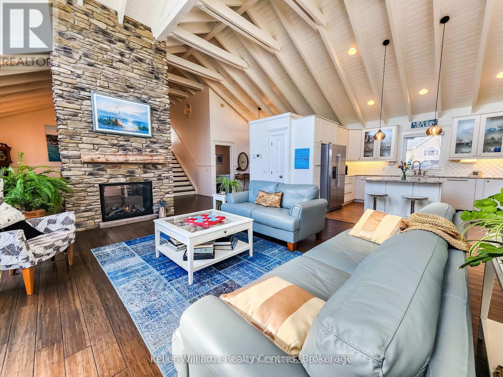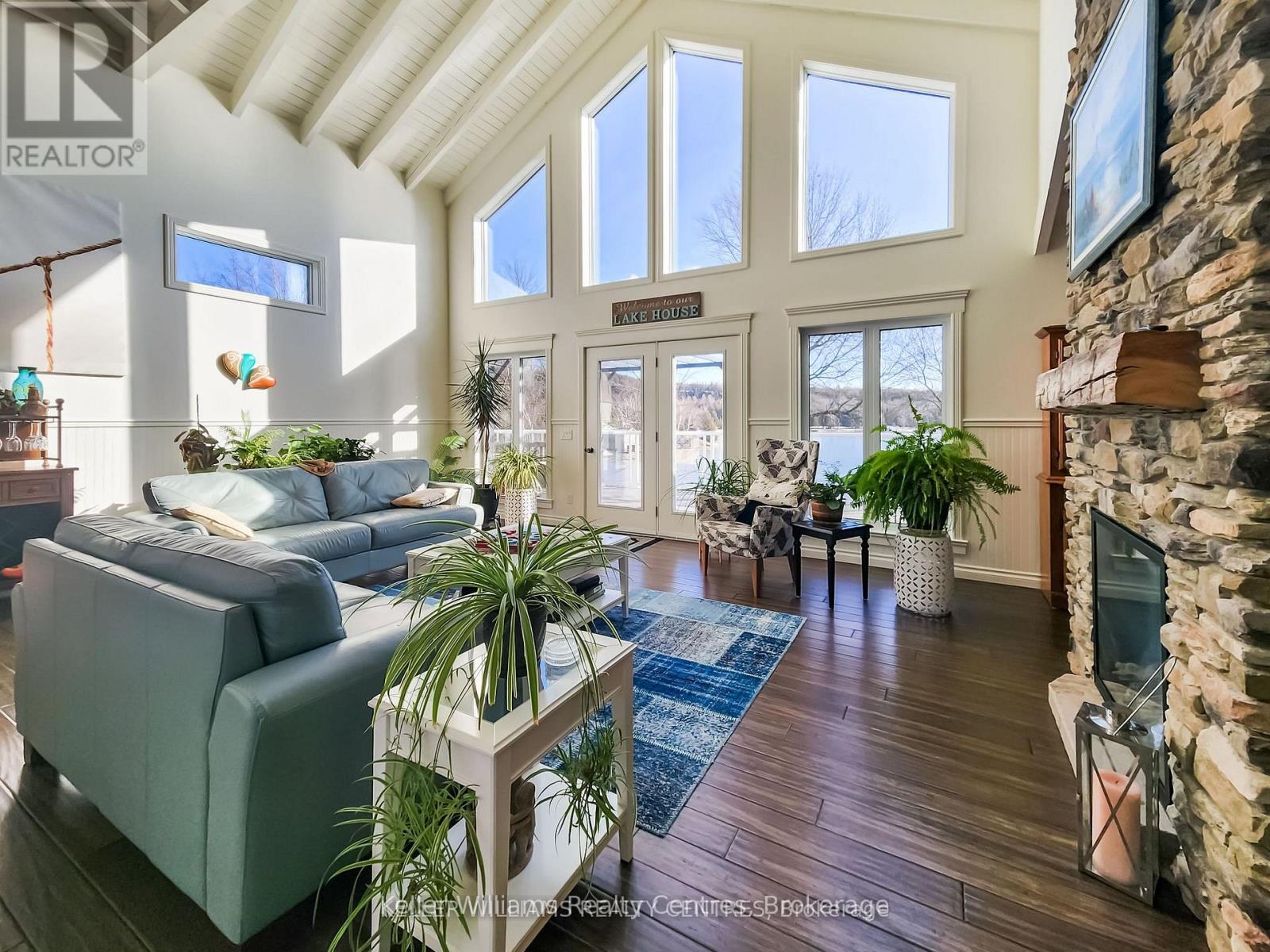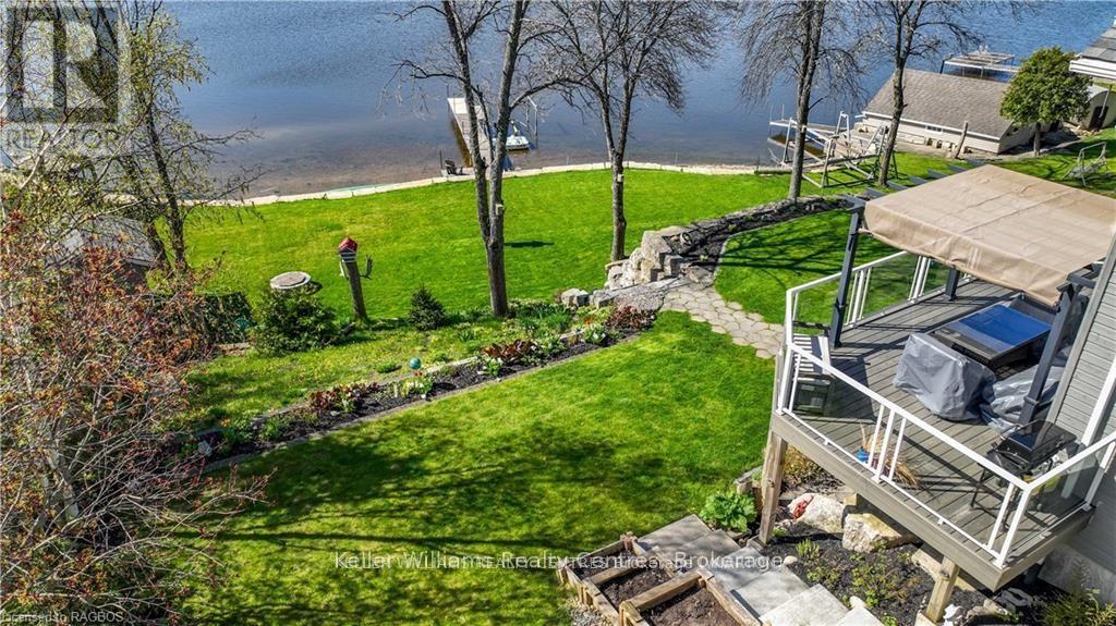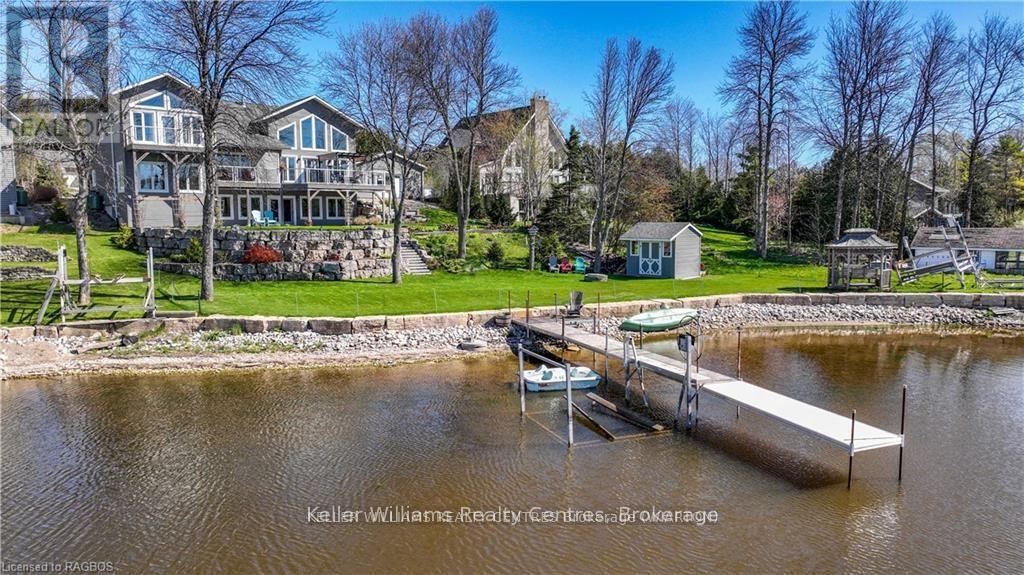 Discover the pinnacle of waterfront luxury on the Bruce Peninsula with this exquisite custom-built home, crafted in 2014. This property epitomizes elegance, set against the tranquil backdrop of Little Lake with 100 ft of pristine shoreline. Ideal for swimming and boating, it comes fully equipped with dock sections, ensuring a premium waterfront experience with direct access to Georgian Bay through a dredged channel and described as a "safe harbor" by our OPP. Spanning 3,621 sq. ft. across three finished levels, the home offers three bedrooms, three bathrooms, 2 kitchens and unparalleled living spaces. Interior highlights include bamboo flooring, Cambria quartz countertops, and a comprehensive stainless steel appliance package. The layout is thoughtfully designed for both privacy and entertainment, featuring 20 ft high ceilings on the main floor with beams that evoke a very nautical feel, adding to the home's unique charm. At the heart of this home is a majestic stone, floor-to-ceiling, see-through propane fireplace. The primary bedroom suite boasts sweeping water views, a private balcony with composite decking, and glass railings. The outdoor living space is equally impressive, featuring a partially covered deck that overlooks the water, offering breathtaking views. The property includes a cozy TV room with water vistas, a spacious lower level walkout with a second kitchen, and ample space for recreational activities, perfect for extended family or guests. Less than a year old Continental furnace. Additionally, a 22x30 detached garage and abundant storage cater to all seasonal needs. Nestled in the delightful community of Barrow Bay, this home is not just a residence but a retreat, offering a lifestyle where serene beauty meets luxury. Experience a new standard of living in this waterfront gem, where every detail is meticulously crafted for comfort and elegance. (id:64974)