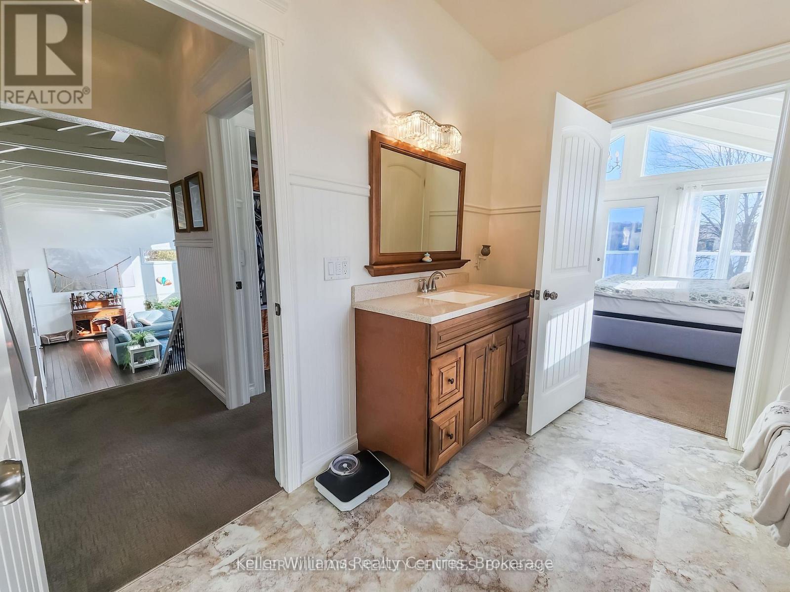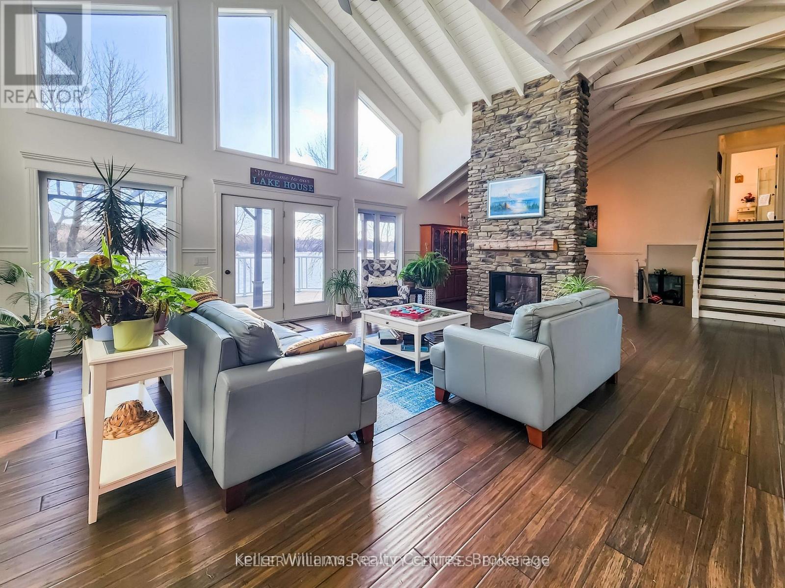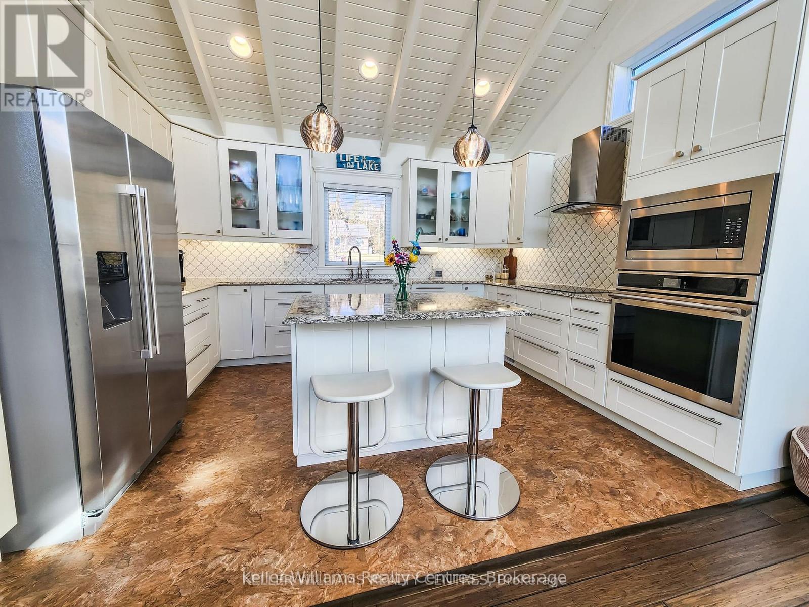 Discover the pinnacle of waterfront luxury on the Bruce Peninsula with this exquisite custom-built home, crafted in 2014. This property epitomizes elegance, set against the tranquil backdrop of Little Lake with 100 ft of pristine shoreline. Ideal for swimming and boating, it comes fully equipped with dock sections, ensuring a premium waterfront experience with direct access to Georgian Bay through a dredged channel and described as a "safe harbor" by our OPP. Spanning 3,621 sq. ft. across three finished levels, the home offers three bedrooms, three bathrooms, 2 kitchens and unparalleled living spaces. Interior highlights include bamboo flooring, Cambria quartz countertops, and a comprehensive stainless steel appliance package. The layout is thoughtfully designed for both privacy and entertainment, featuring 20 ft high ceilings on the main floor with beams that evoke a very nautical feel, adding to the home's unique charm. At the heart of this home is a majestic stone, floor-to-ceiling, see-through propane fireplace. The primary bedroom suite boasts sweeping water views, a private balcony with composite decking, and glass railings. The outdoor living space is equally impressive, featuring a partially covered deck that overlooks the water, offering breathtaking views. The property includes a cozy TV room with water vistas, a spacious lower level walkout with a second kitchen, and ample space for recreational activities, perfect for extended family or guests. Less than a year old Continental furnace. Additionally, a 22x30 detached garage and abundant storage cater to all seasonal needs. Nestled in the delightful community of Barrow Bay, this home is not just a residence but a retreat, offering a lifestyle where serene beauty meets luxury. Experience a new standard of living in this waterfront gem, where every detail is meticulously crafted for comfort and elegance. (id:64974)