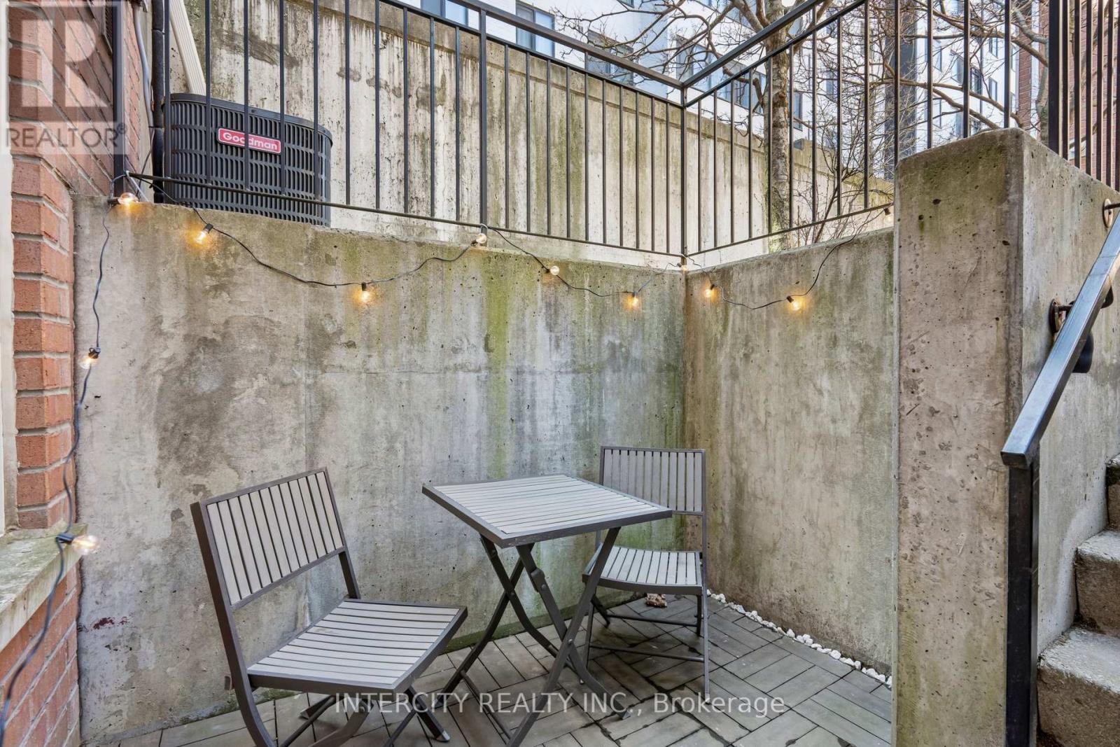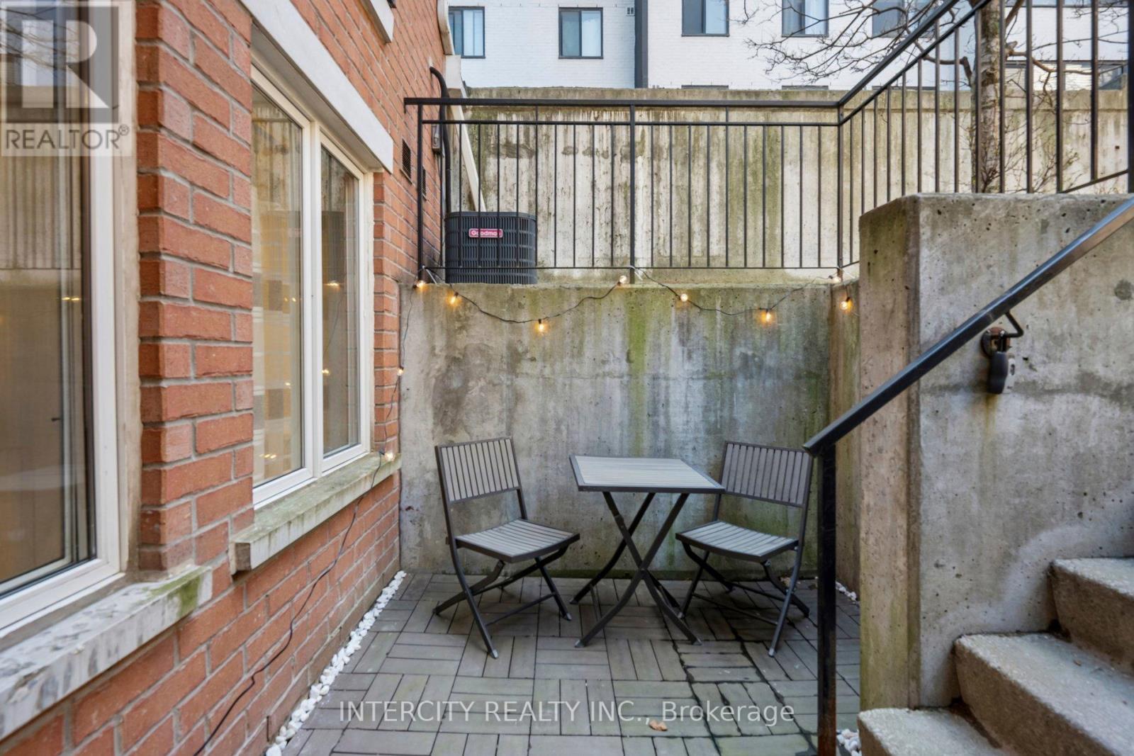 Luxuriously renovated end unit stacked townhouse at the gateway to Liberty Village! This turn-key home features smooth ceilings, dimmable pot lights, and new vinyl flooring throughout. The modern kitchen shines with new quartz countertops and premium new stainless steel appliances, including a high-end Bosch dishwasher (5-yr transferable warranty on appliances). Relax on your private patio or explore the best of Queen West and Trinity Bellwoods just steps away. Includes one underground parking spot and the convenience of underground visitor parking for your guests. Incredible transit access (King/Queen streetcars) and low maintenance fees. A perfect blend of style and location! (id:64974)