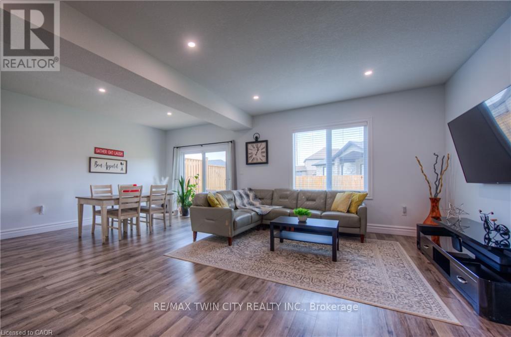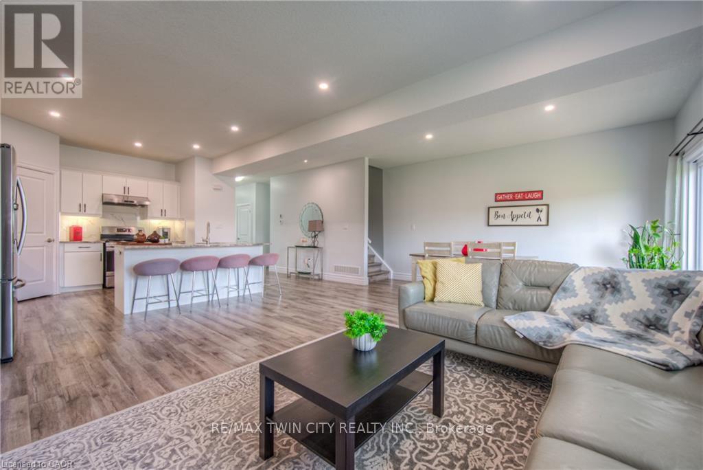 Welcome to this stunning 4-bedroom, 2.5-bath freehold townhome in the heart of Listowel. Built in 2021, this home combines modern style with practical design, perfect for families or anyone looking for space and comfort. From the moment you walk in, you'll love the high 9-foot ceilings and the bright, open-concept layout that makes everyday living feel easy and inviting. The main floor features beautiful modern finishes with high end appliances, large island with quartz countertops. Enjoy a spacious living and dining area that flows seamlessly from the kitchen-ideal for entertaining or cozy nights in. Upstairs, you'll find four generous bedrooms, a full laundry room for added convenience, and plenty of natural light throughout. The unfinished basement is a blank canvas, ready for you to make it your own-add a home office, gym, or extra living space. Located in a quiet, family-friendly neighbourhood, this home is just a 45-minute drive to Kitchener-Waterloo, making it a great option for commuters too. Stylish, functional, and full of potential-this townhome is ready to welcome you home. (id:64974)