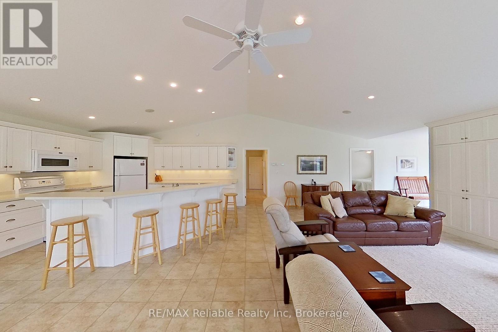 DARLING LAKESIDE HOME NEAR BAYFIELD!! Nestled in the peaceful community of Homestead Heights, this meticulously maintained year-round home is a true standout. Featuring an open-concept layout with soaring cathedral ceilings, heated ceramic floors, and an abundance of windows, natural light floods every room. The oversized kitchen with center island flows effortlessly into the spacious family room, highlighted by a cozy gas fireplaceperfect for entertaining or relaxing. Enjoy quiet mornings or evenings in the inviting sunroom, and step through the terrace doors to a beautiful stamped concrete patio. The generous primary bedroom includes a private ensuite, while two additional guest bedrooms share a well-appointed 4-piece bath. Main-floor laundry provides direct access to the attached double garage.. Additional features include natural gas in-floor heating, A/C, high-speed fibre internet, and included appliances. Furnishings are also available. The low-maintenance exterior is complete with a welcoming covered front porch and a concrete driveway offering ample parking. Approximately 2,500 sq.ft including garage. Just a one-minute walk to beach access, and only minutes from wineries, breweries, golf courses, marinas, and the shops and restaurants of Bayfield. Wonderful Curb Appeal! (id:64974)
