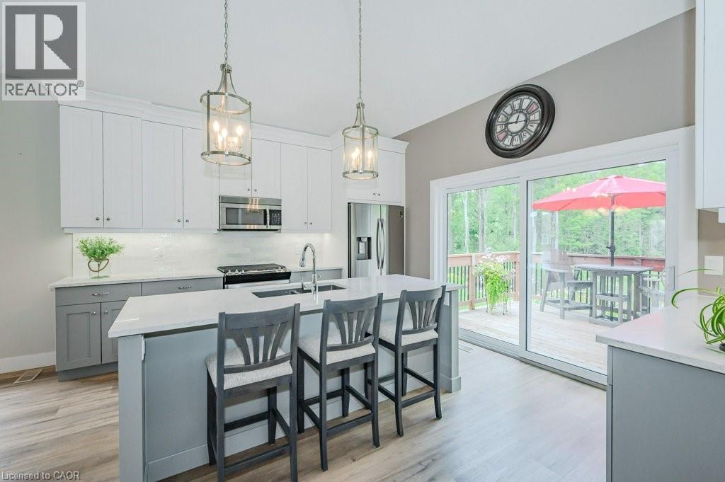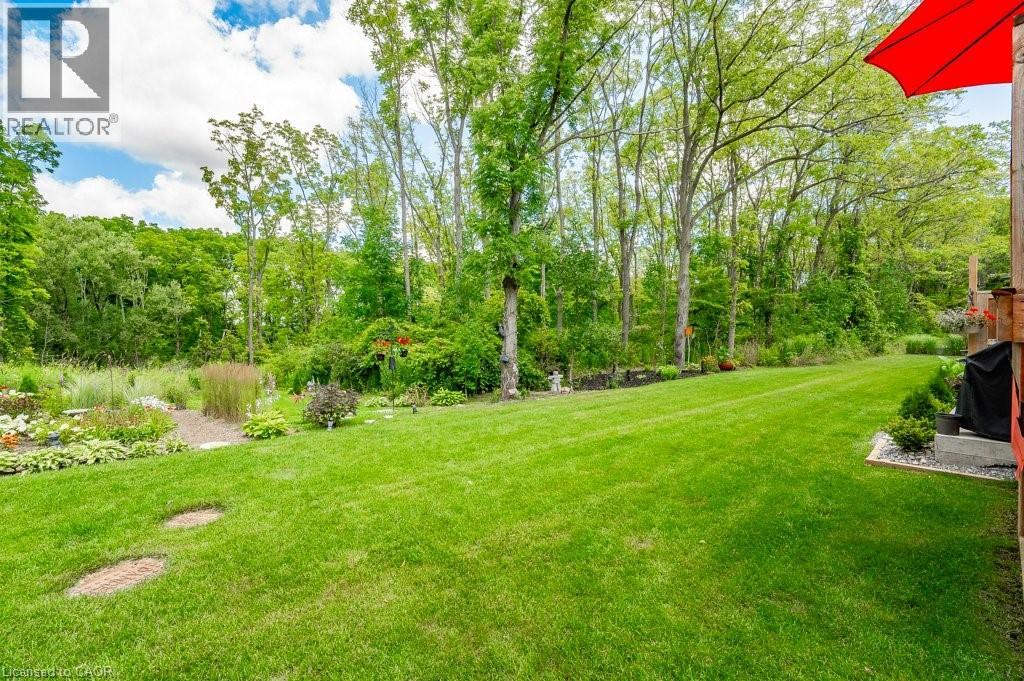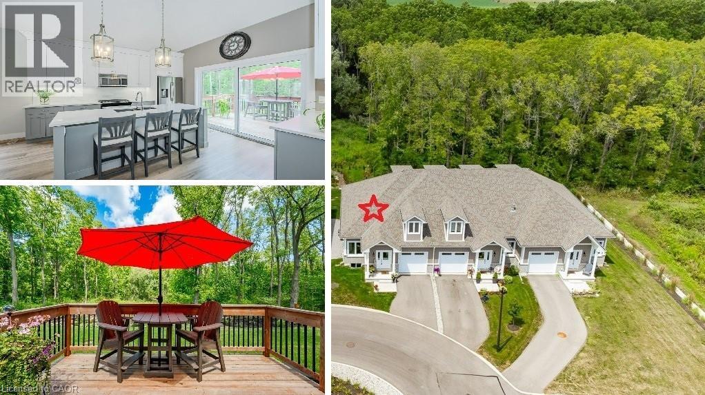 Carefree lifestyle a stones throw to the lake! Located at the end of a cul-de-sac backing onto wooded area; 1 of only 6 in the complex in this highly desired spot. INCREDIBLE backyard area for peace & quiet. Fully upgraded 3 bedroom, 2.5 bath END UNIT townhome featuring impressive main floor primary suite. True ONE LEVEL LIVING can be yours here if you desire. Soaring ceilings greet you upon entering the stunning open concept main floor. The generous living room features a gas fireplace and tons of natural light from many oversized windows. An expansive open dining area can accommodate a table of practically any size. The DREAM KITCHEN is absolutely breathtaking with massive island, tasteful timeless cabinetry, quartz counters and SS appliances. Massive glass doors overlook your incredible backyard oasis complete with the perfect sized deck and poured concrete patio, the ideal place to relax in comfort for your morning coffee or evening glass of wine. The primary bedroom tucked away at the rear of the home's main floor for privacy features a large walk-in closet and beautiful 3 pce ensuite with glass walk-in shower. Grand oak staircases with custom carpet runners lead you up or down. Upstairs features 2 huge additional bedrooms and a 3pce bath. You may even catch glimpses of the lake from the front bedroom window! The large wide open basement with tall ceilings, multiple large windows and bathroom rough-in is a blank canvas for your ideas. Luxury plank flooring throughout, stunning light fixtures, custom window coverings, main floor laundry and powder room, attached garage + too many upgrades to list complete this fine home. Situated in idyllic Port Dover known for it's stunning beach, quaint downtown, outdoor recreation and easy access to city amenities in nearby communities. Walk or bike to downtown and beach! The ultimate beach town lifestyle can be yours. Book your private tour today! (id:64974)