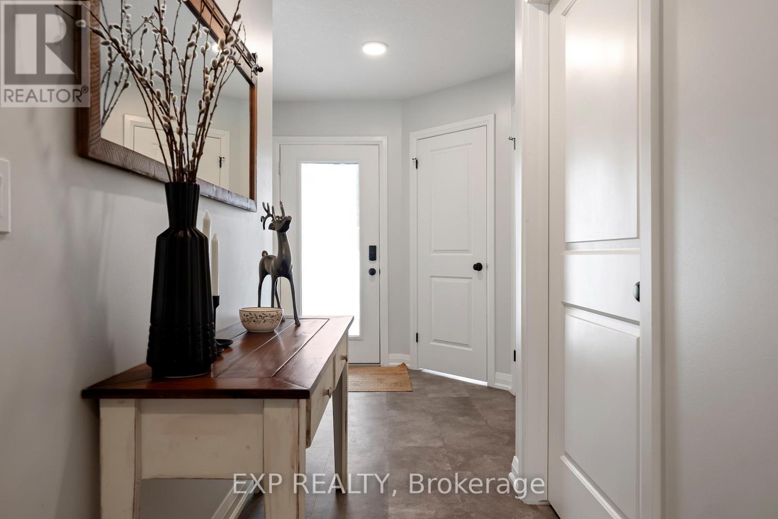 This 3-year-old freehold townhouse offers a rare combination of space, privacy, and peaceful surroundings that is seldom found in town. Set on an exceptional 300-foot deep lot, the property enjoys cottage-like views that create a sense of calm and openness, making it feel more like a country retreat while still benefiting from neighbours, convenience, and community. Thoughtfully finished with long-term living in mind rather than short-term resale, this home delivers both comfort and quality throughout. The layout is functional and inviting, featuring three bedrooms and three bathrooms, well suited for everyday living, entertaining, or working from home. The kitchen serves as the heart of the home and is highlighted by custom cabinetry with soft-close drawers and doors, offering a clean, timeless look paired with practical storage and quality craftsmanship. Natural light flows through the main living spaces, enhancing the home's warm and welcoming atmosphere. Outside, the depth of the lot provides room to relax, entertain, or simply enjoy the quiet backdrop that sets this property apart from typical in-town offerings. Additional features include a single-car garage and a two-car driveway, ensuring ample parking and convenience. Ideal for buyers seeking a move-in-ready home that feels finished, intentional, and genuinely different, this property is perfectly suited for those who appreciate space, tranquility, and thoughtful design without sacrificing location or lifestyle. (Exterior photos have been digitally enhanced to remove snow for visual clarity. Landscaping and exterior features may appear different depending on season and current conditions.) (id:64974)