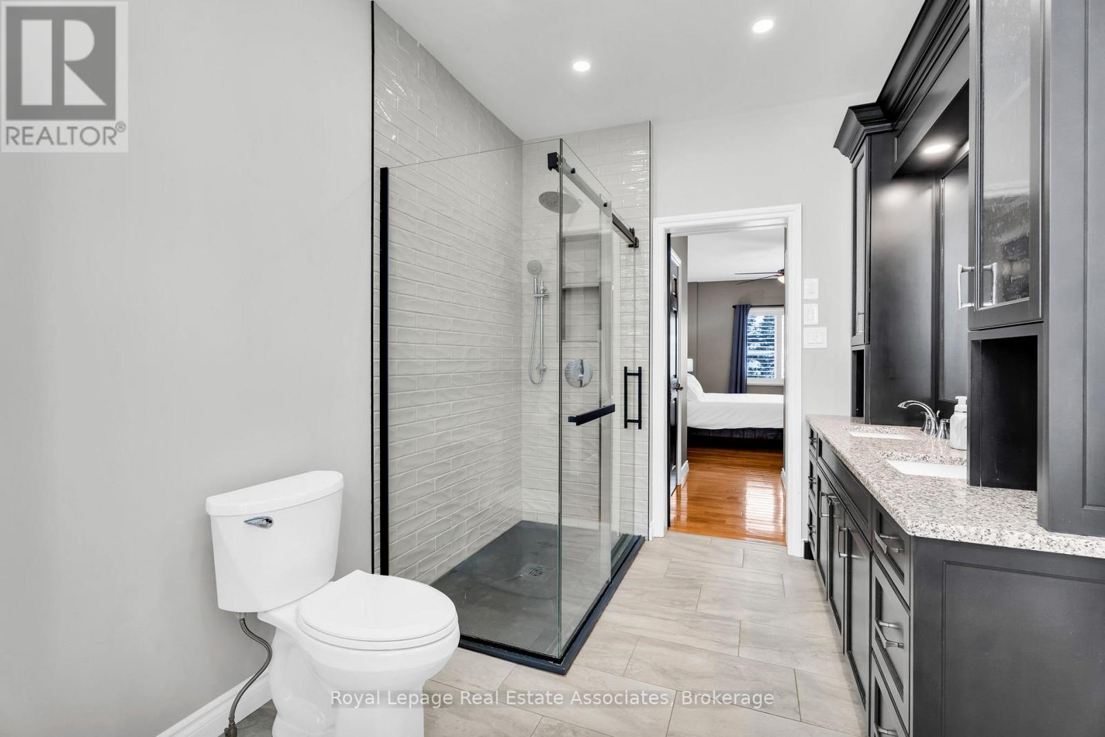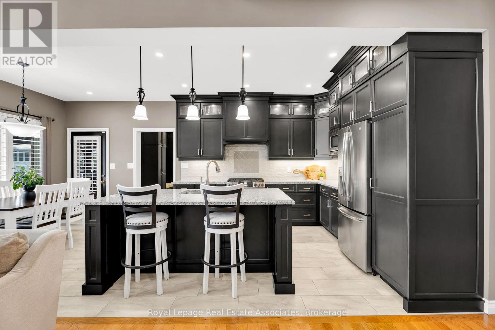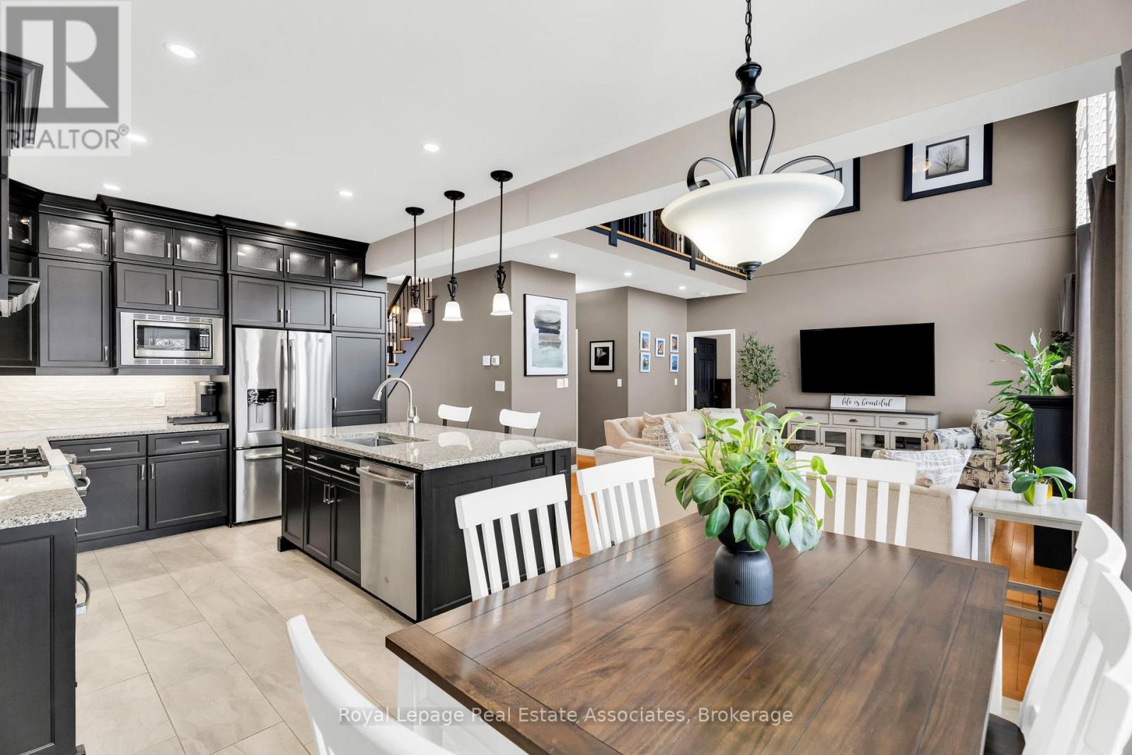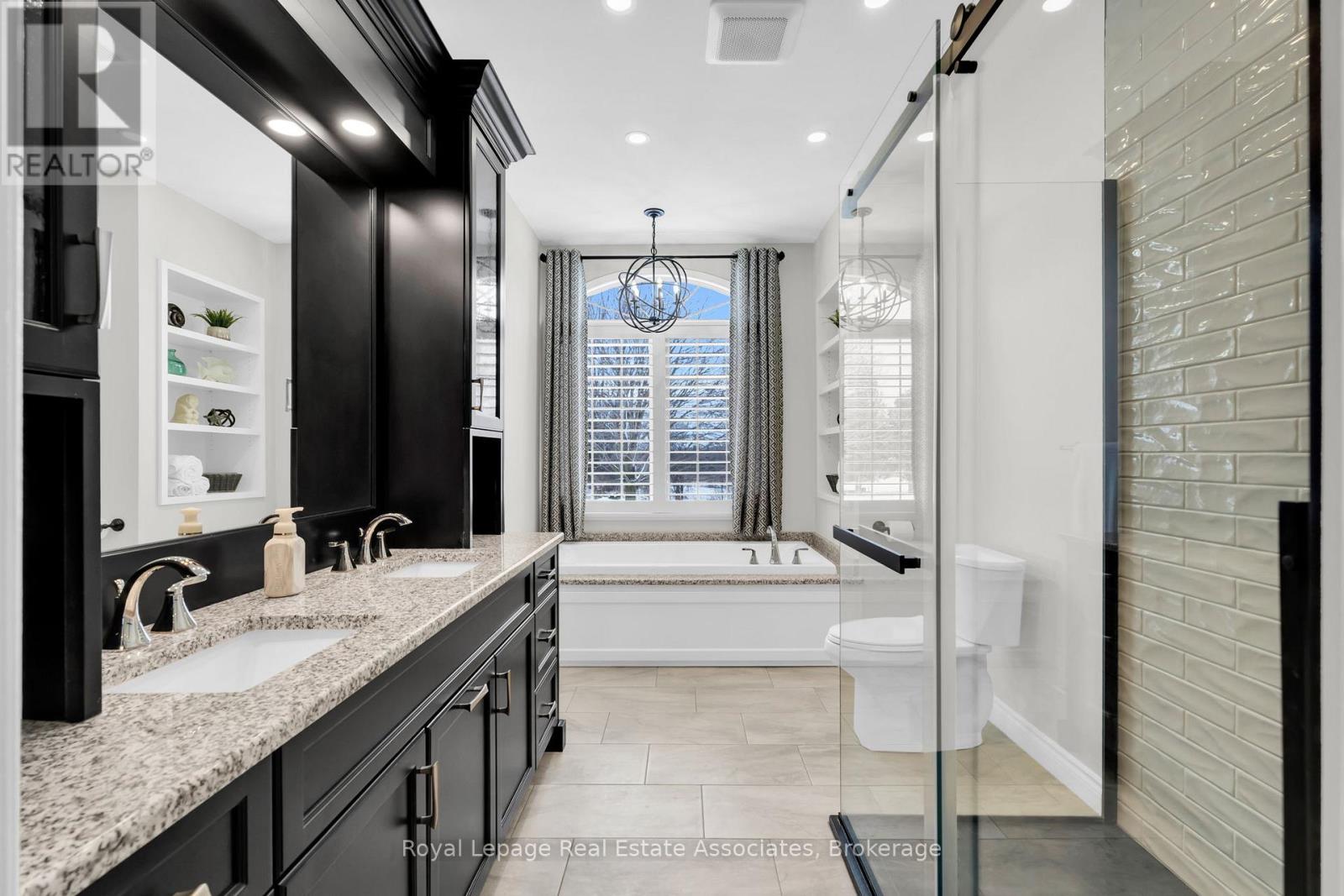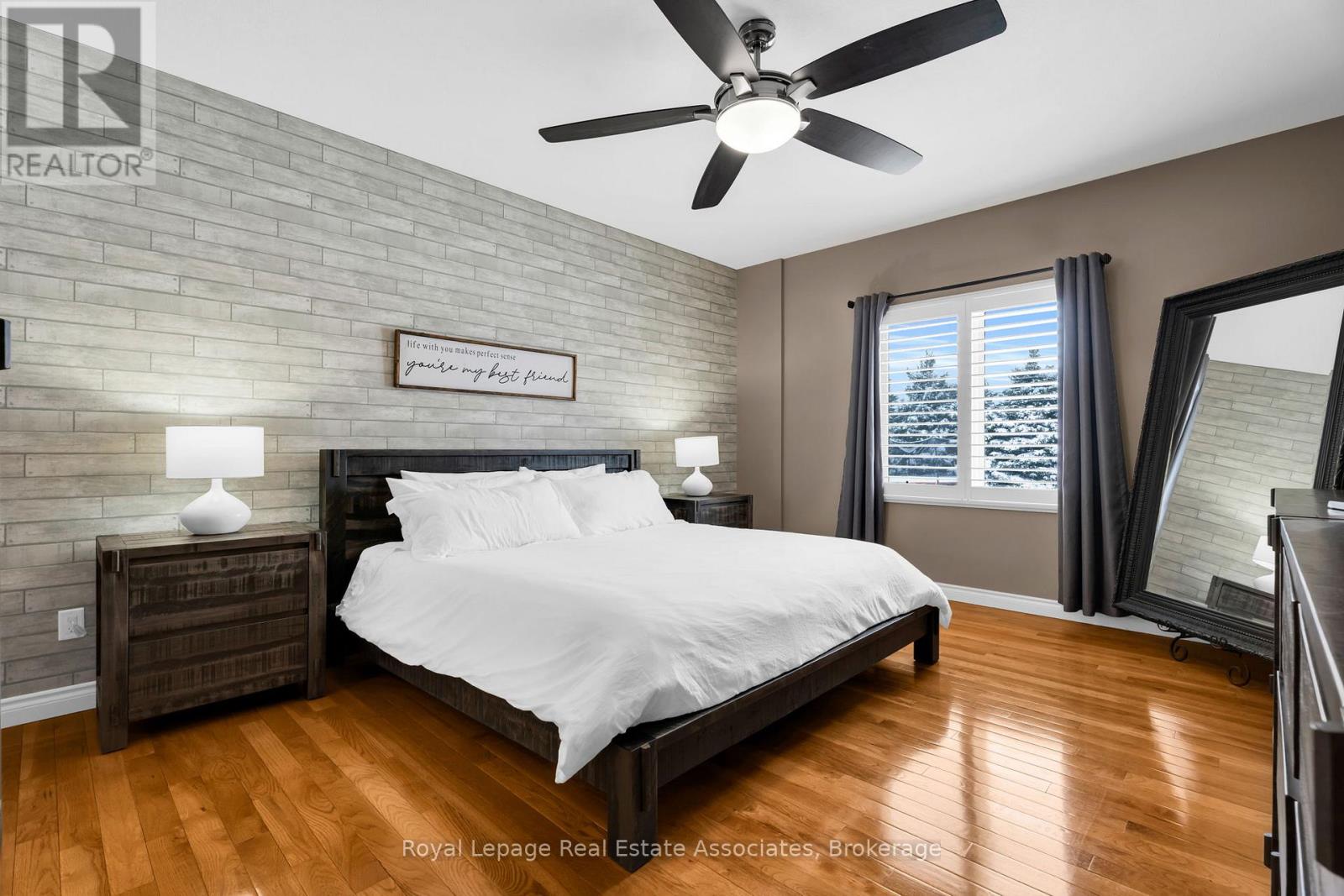 If you're looking for that country setting with the convenience of city amenities, this custom built 3+1 bedroom bungaloft offers privacy & comfort on a beautiful 1 Acre lot minutes from Downtown Guelph. The main area of the home is open concept with 19ft vaulted ceilings & expansive windows that flood the home with natural light. The main great room flows into the stunningly updated Barzotti kitchen (2020) with eat-in area, breakfast bar & center island. The main-floor primary bedroom has a walk-in closet & renovated ensuite bathroom, complete with soaker tub, standup glass shower & Barzotti cabinets (2023). Off the kitchen is a lovely newer renovated (2020) laundry and mudroom with access to the oversized double-car garage. On the second level the two bedrooms, each with their own ensuite bathroom, are situated on either side of the floor providing privacy. The fully finished basement offers a large rec room, gym, lots of storage and a separate area perfect for an in-law or guest suite complete with its own kitchenette, bedroom, 4-piece bathroom, & a separate entrance through the garage. The property also has a heated & insulated workshop approx 1000 sqft. Great for the car lover or he/she cave!! The property is surrounded by farmers fields, few amazing neighbors & located on a dead end street. You will not want to miss this home!!! (id:64974)