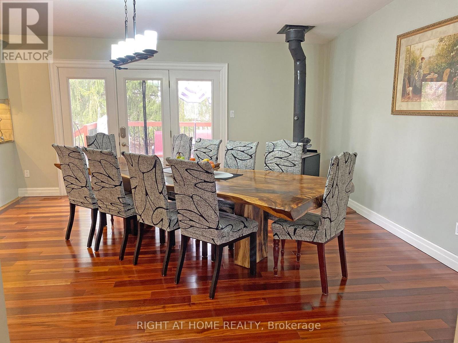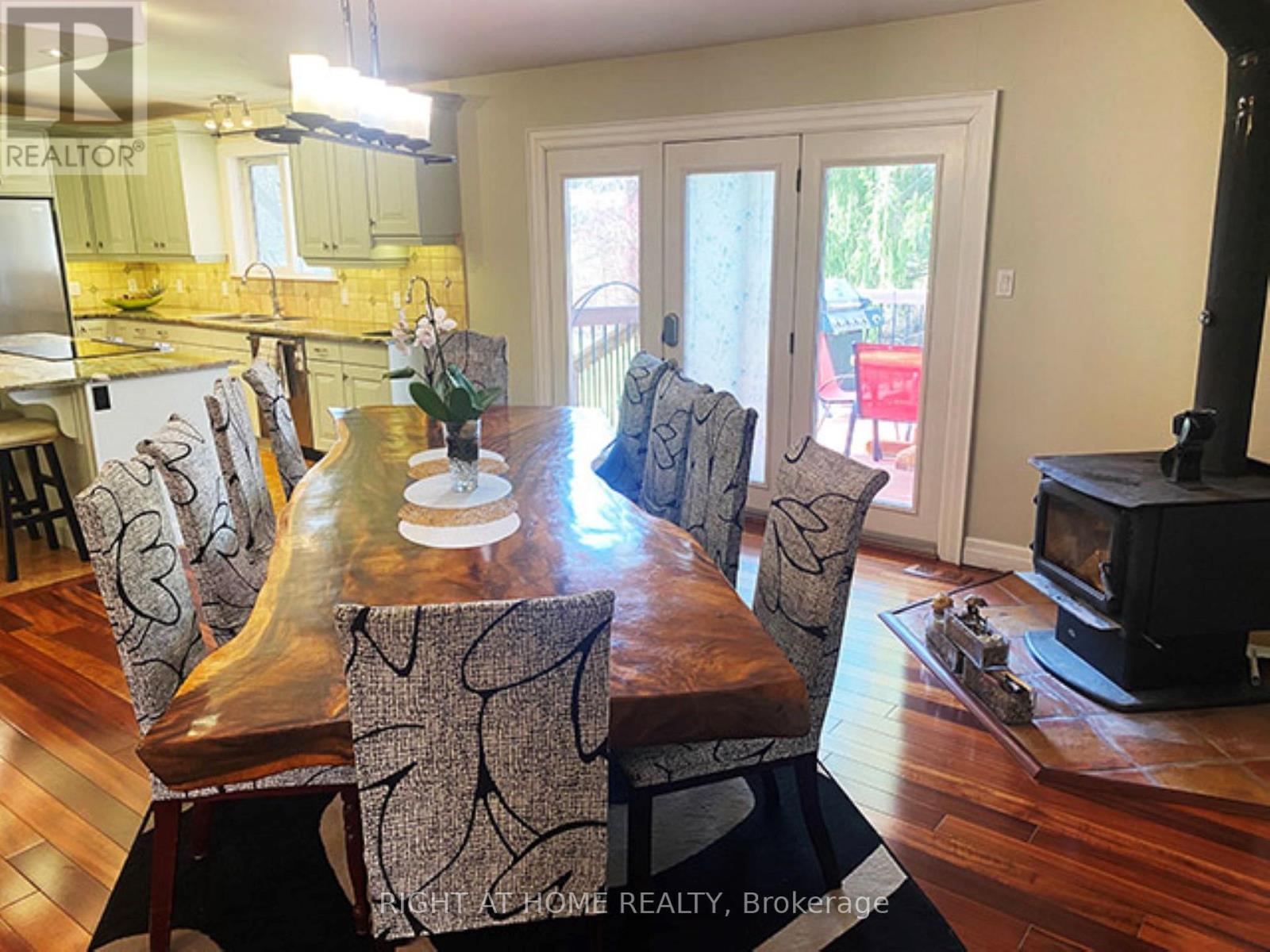This beautiful 3.7-acre property offers space, flexibility, and great potential for extended families or additional income. The main home is a spacious ranch-style bungalow, and there's also a separate apartment for added versatility. A standout feature is the large barn/workshop, complete with a full mezzanine-perfect for hobbies, storage, or keeping your recreational equipment. The property also includes a peaceful pond and plenty of parking for multiple vehicles. You'll enjoy the quiet feel of country living while still being conveniently located-just 30 minutes from Pearson Airport and only minutes from schools, gyms, and everyday amenities. If you enjoy the outdoors, you'll love the easy access to nearby trails, parks, and conservation areas. Inside the main home, you'll find a modern, updated kitchen, four bedrooms, and a spa-like bathroom with a sauna. The bright solarium is a great place to relax and take in the surrounding views. Additional features include hardwood floors, a two-sided fireplace, a wood stove, and plenty of charm throughout. The lower level is ideal for multigenerational living, offering a comfortable in-law suite with its own kitchen, a large great room with a wood-burning fireplace, and lots of storage space. In addition, there is a fully self-contained apartment with its own private separate entrance. It features a spacious great room with a walk-out, a kitchenet, and a bedroom with its own ensuite bathroom. (id:64974)