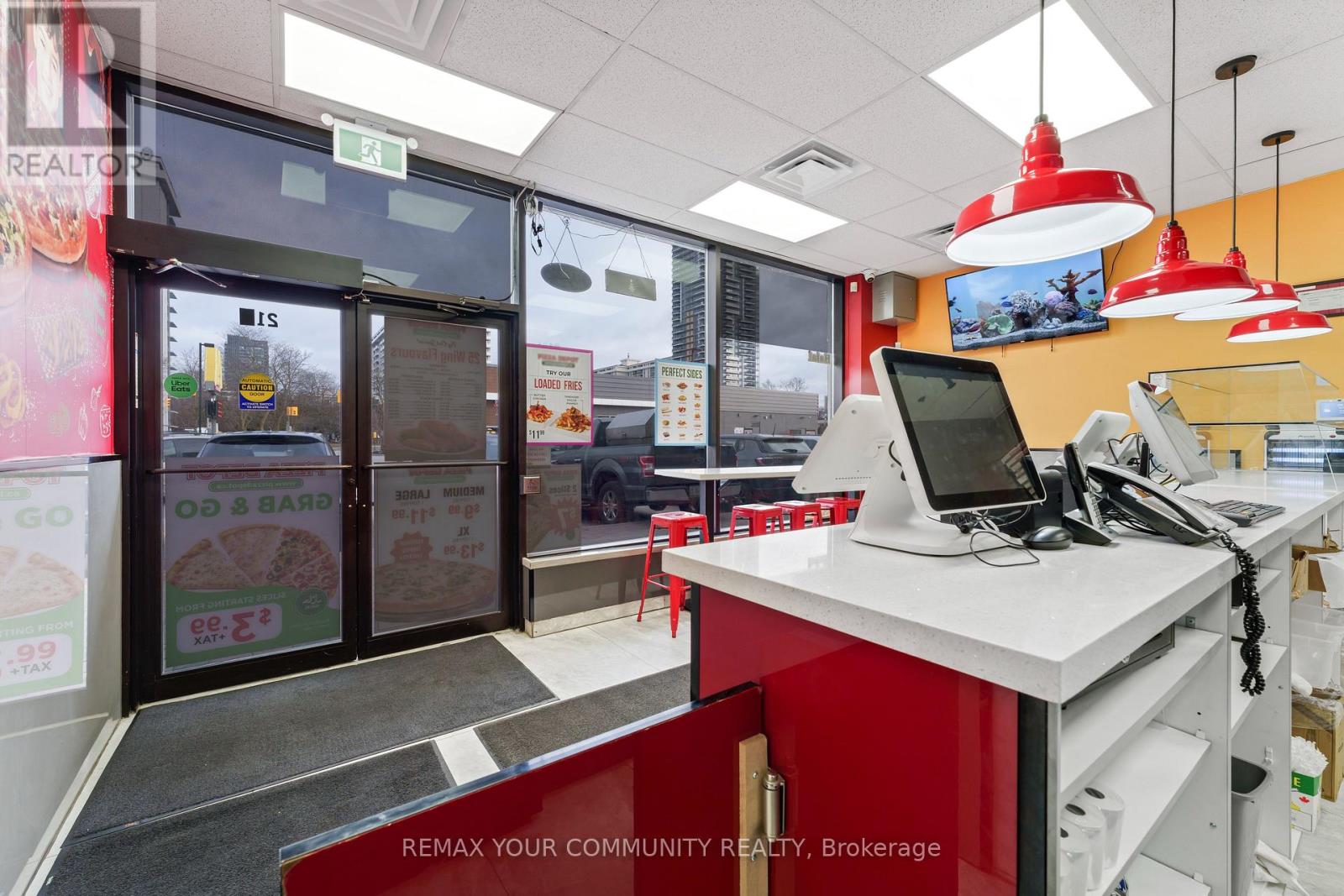 An exceptional opportunity to acquire a well-established branded pizza franchise in the heart of North York. Strategically located in a high traffic plaza anchored by AAA tenants including Mc Donald's & TimHorton's; this location benefits from daily foot traffic and excellent visibility surrounded by schools, high rises and commercial establishments. This store enjoys a consistent and growing customer base with strong repeat business. The brands first fully Halal location in Canada giving it a unique competitive advantage, with stores across Canada and the United States. Turnkey operation - fully equipped and operational, open 7 days a week with long term lease in place. All showings must be arranged through the listing sales person by appointment only. Kindly maintain discretion as this is an active business. (id:64974)