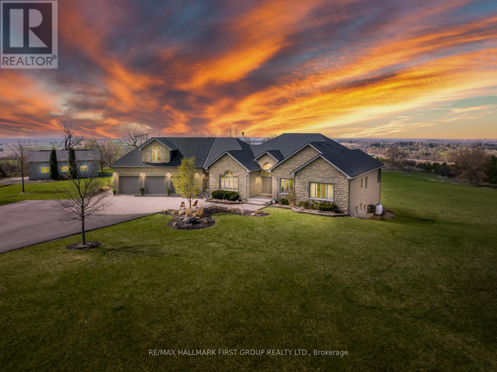 Welcome to the picturesque 7472 Aked Rd. - a masterfully designed Peter Keuning custom built bungalow situated on 10 mesmerizing acres w/ unobstructed panoramic Lake Ontario views that mimic the Swiss Alps and the rolling Tuscany countryside, this architecturally designed bungalow w/exquisite finishings is not to be missed. With over 6,000 sq ft of finished living space including a finished walk-out lower level & your very own finished upper level loft w/hardwood floors & pot lights, this rare offering exudes exceptional quality & taste. Experience resort-like seasonal activities at your doorstep, including: hiking, 4-wheeling, snowshoeing, tobogganing, snowmobiling, and much more! Your property also boasts personal ATV/snowmobile trail access to a forested area. The 1,000 sq ft. outbuilding is complete w/heat, hydro & water. 35 minutes to the DVP over 418/401 toll-free and less than 30 mins to 404 over 407. 45 Mins to Toronto Pearson Airport. Low Property Taxes Reflect Farm Designation. Extensive Hardscaping/Asphalt/Interlocking. Exquisite Celestial & Terrestrial Views Night & Day. See Feature Sheet for More! (id:64974)