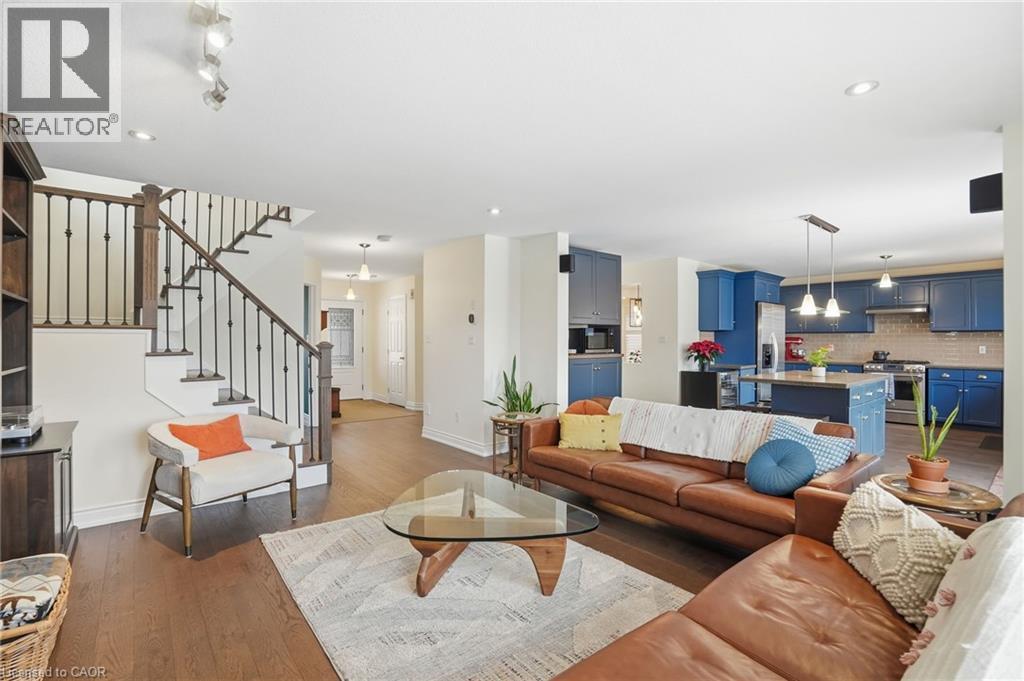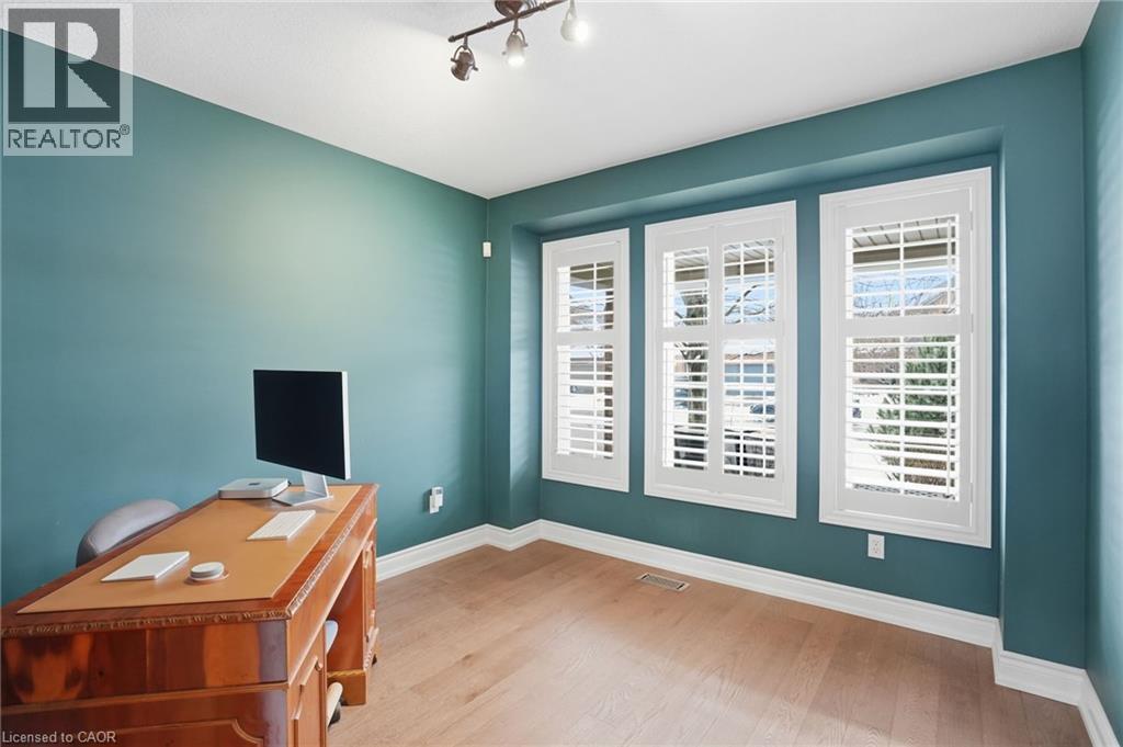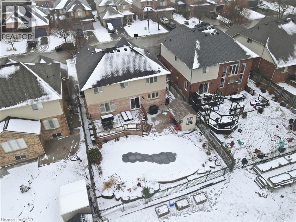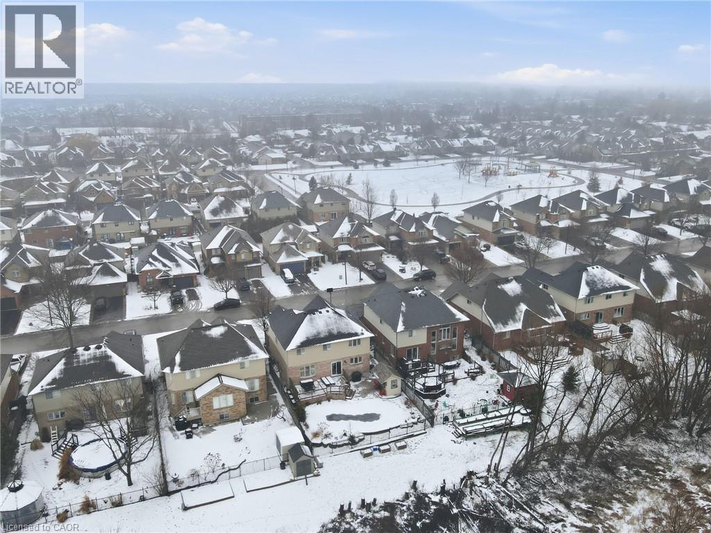 Welcome to this exceptional Binbrook residence, elegantly backing onto serene green space and offering refined living throughout. Thoughtfully updated with a complete first-floor renovation, the home showcases stunning flooring and timeless finishes. The chef-inspired kitchen features a statement island and stainless steel appliances, seamlessly flowing to a spectacular backyard retreat with expansive decks, an inground pool, and lush surroundings. Entertain with ease in the inviting family room with gas fireplace or the formal dining room accented by a coffered ceiling. A main-floor den with custom wood detailing, front staircase, and railings adds both warmth and sophistication. The upper level offers four generous bedrooms, including a luxurious primary suite with a newly redesigned spa-like ensuite featuring a deep soaker tub and separate shower, along with the convenience of second-floor laundry. Offers an oversized 2 Car Garage, measuring 22.8ft wide, 20.5 deep, and a height of 9.4ft high allowing plenty of space for parking & storage. Homes of this calibre on this sought-after street are rarely available - Book your showing today! Won't Last! (id:64974)