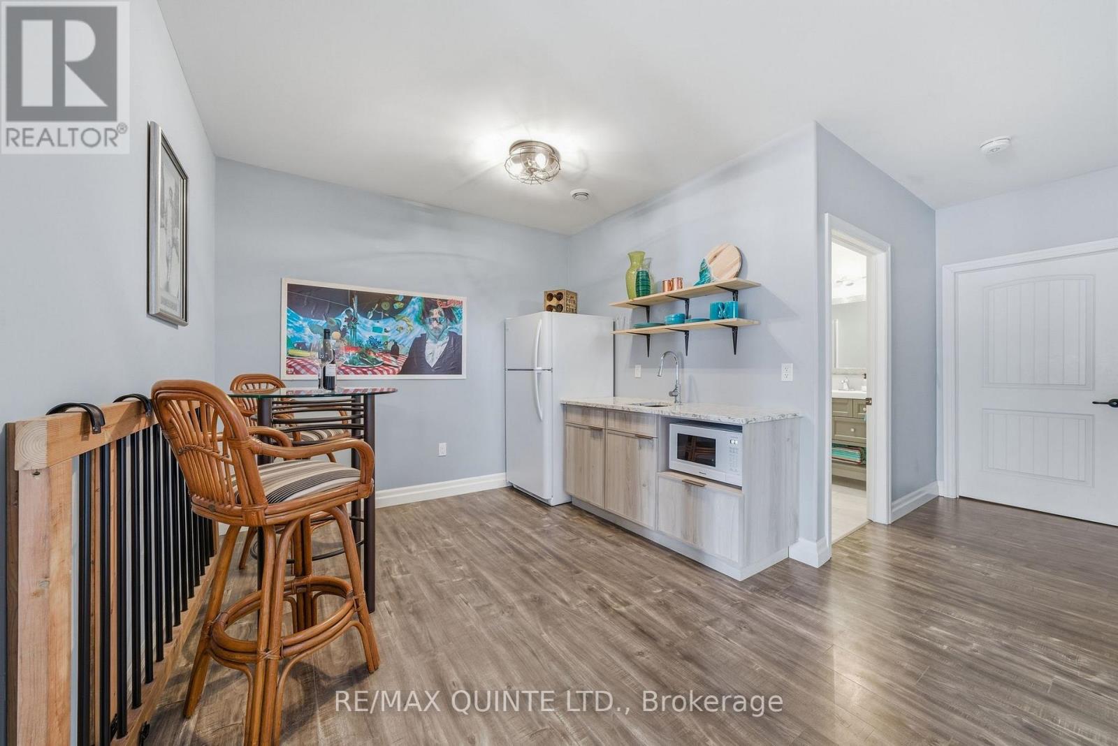 Welcome to Oak Lake - where life slows down, the views stretch wide, and every season tells its own story. Built in 2019, this 4-bedroom bungalow offers 2,800 sq ft of beautifully finished living space and rests on 0.37 acres with over 60 feet of private shoreline - your front-row seat to summer swims, fiery fall reflections, and peaceful winter mornings. Step inside and the view steals your breath before you even set your keys down. Vaulted ceilings rise above the open-concept great room, and an expansive wall of windows frames the water like living art. From the kitchen, dining, and living areas, the lake is always in sight. Designed for real life, the kitchen flows seamlessly to the upper deck - perfect for effortless entertaining and long summer evenings outdoors. The kitchen features granite countertops, an abundance of cabinetry, and a walk-in pantry with built-in shelving and stand-up freezer. The primary suite is a true retreat. Wake to the sounds of nature, step out through patio doors, and ease into your day. A walk-through closet and a spa-inspired ensuite with in-floor heating create comfort in every detail. A second main-floor bedroom offers space for guests or a home office, and the thoughtfully designed laundry room features built-in storage, folding space, and utility sink. The walkout lower level extends the lifestyle with two additional bedrooms, a spacious rec room, and a full kitchenette - ideal for teens, extended family, or weekend visitors. A 3-piece bath with heated floors adds extra comfort. Outside, a covered patio leads to the shoreline where days are spent swimming, boating, fishing, or gathering around the fire pit. With ample parking and a storage shed, this home was built for easy, year-round living. Located under 15 minutes to Stirling and Belleville with quick Highway 401 access, you're never far from what you need. This isn't just a waterfront property. It's four-season lake living - exactly as it should be! (id:64974)
