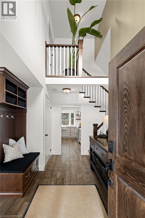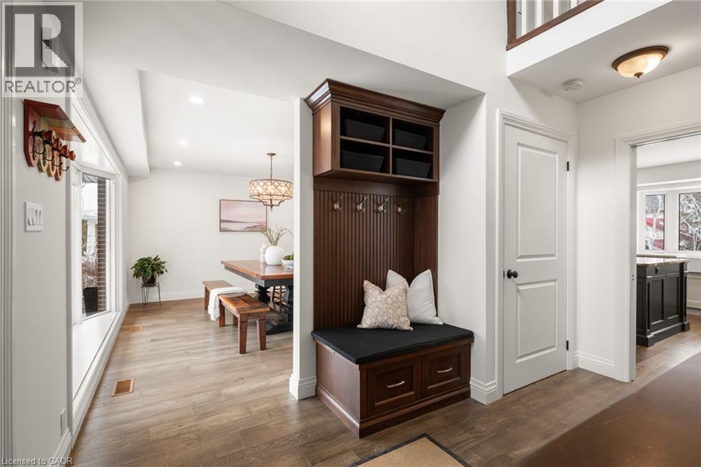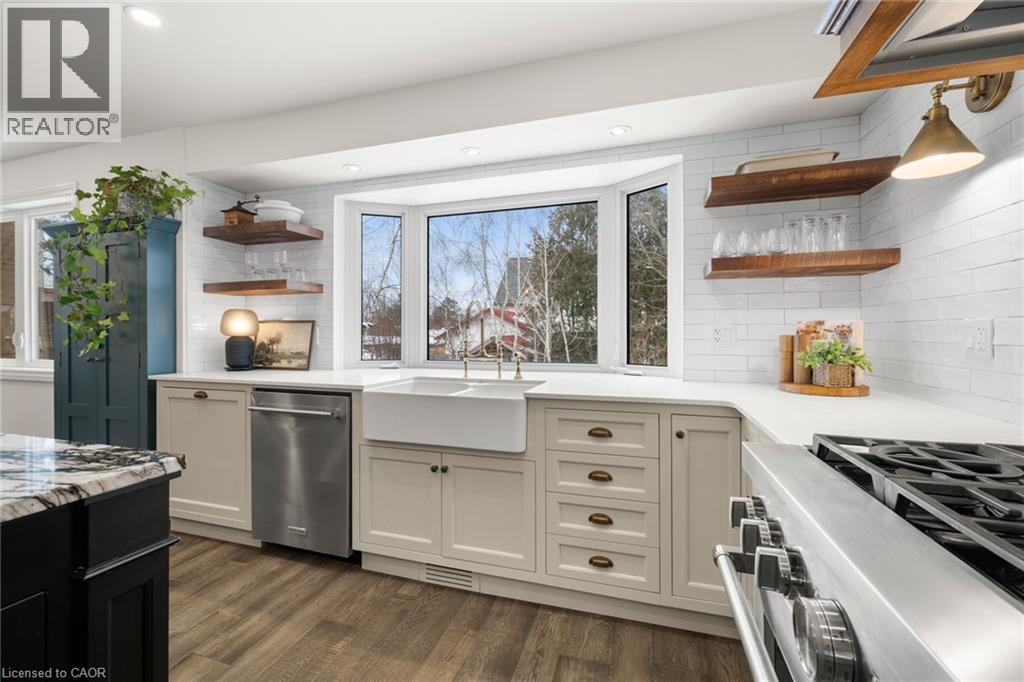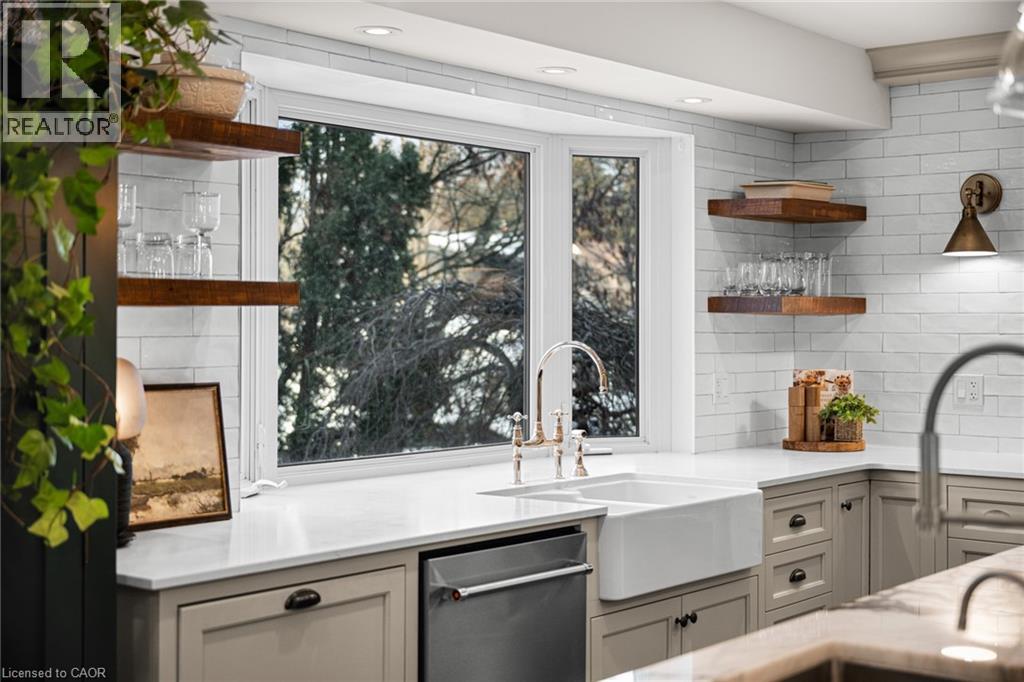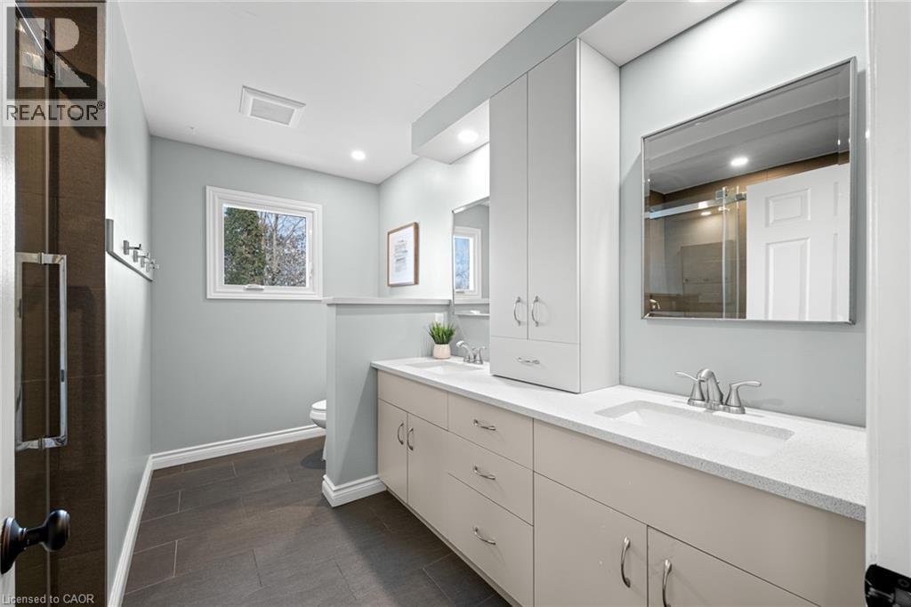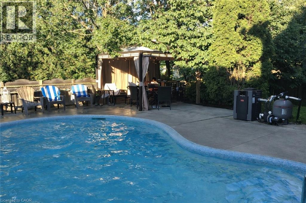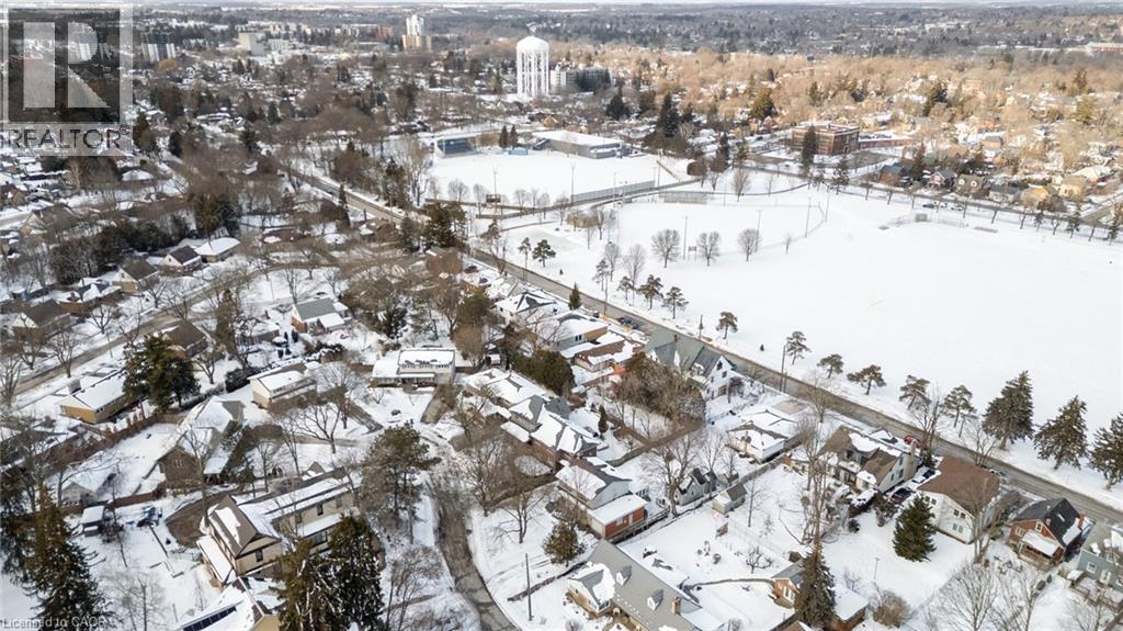Tucked away at the quiet dead end of Lyon Avenue in the heart of Exhibition Park, this renovated 5 bedroom home offers a rare opportunity in one of Guelph’s most sought after neighbourhoods. Known for its mature tree lined streets, strong sense of community, parks, schools, and walkability to downtown, Exhibition Park consistently holds value. Homes on this street rarely come to market. Thoughtfully expanded and redesigned, the home blends timeless character with modern updates. The kitchen was completely reimagined in 2021 by Newlife Cabinetry Kitchens and showcases quartz and granite counters, a nearly 12 ft island with prep sink, full apron sink overlooking the backyard, oversized gas range with custom hood, built in appliances, and extensive custom cabinetry with premium storage. Abundant windows and cabinet lighting enhance warmth and natural light. The foyer features cathedral ceilings and open to above design with built in cubbies for everyday organization. A French glass pocket door offers flexibility between the kitchen and great room. The dining area, highlighted by a large bay window overlooking the streetscape, flows from the kitchen and can also serve as a formal living space. Just steps down, the spacious great room offers custom built ins, detailed trim work, gas fireplace, garage access, walkout to the yard, and convenient 3 piece bath ideal for pool use. The private primary suite is set in its own wing with 12 ft ceilings, hardwood floors, lounge or office space, and a luxurious ensuite with heated floors, soaker tub, glass shower, granite double vanity, and custom built ins. Four additional bedrooms, upper laundry, and a spa inspired main bath complete the upper level. The backyard is a private oasis featuring a heated Gunite pool, hot tub, conversation area, and raised garden boxes. A partially finished lower level with high ceilings, framed space, rough in bath, storage, and cold room offers future potential. Exhibition Park living awaits. (id:64974)