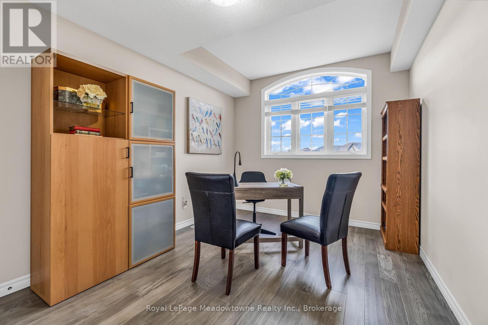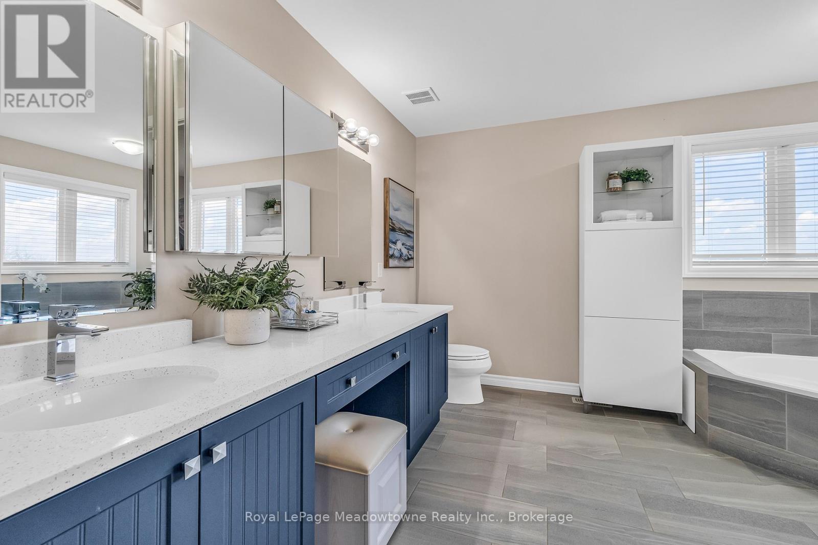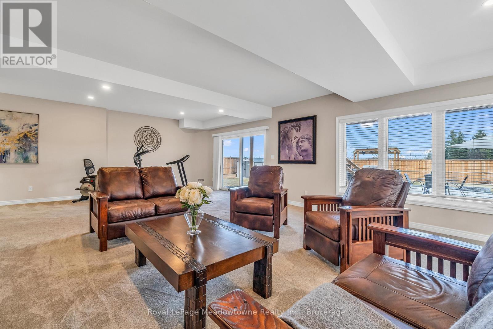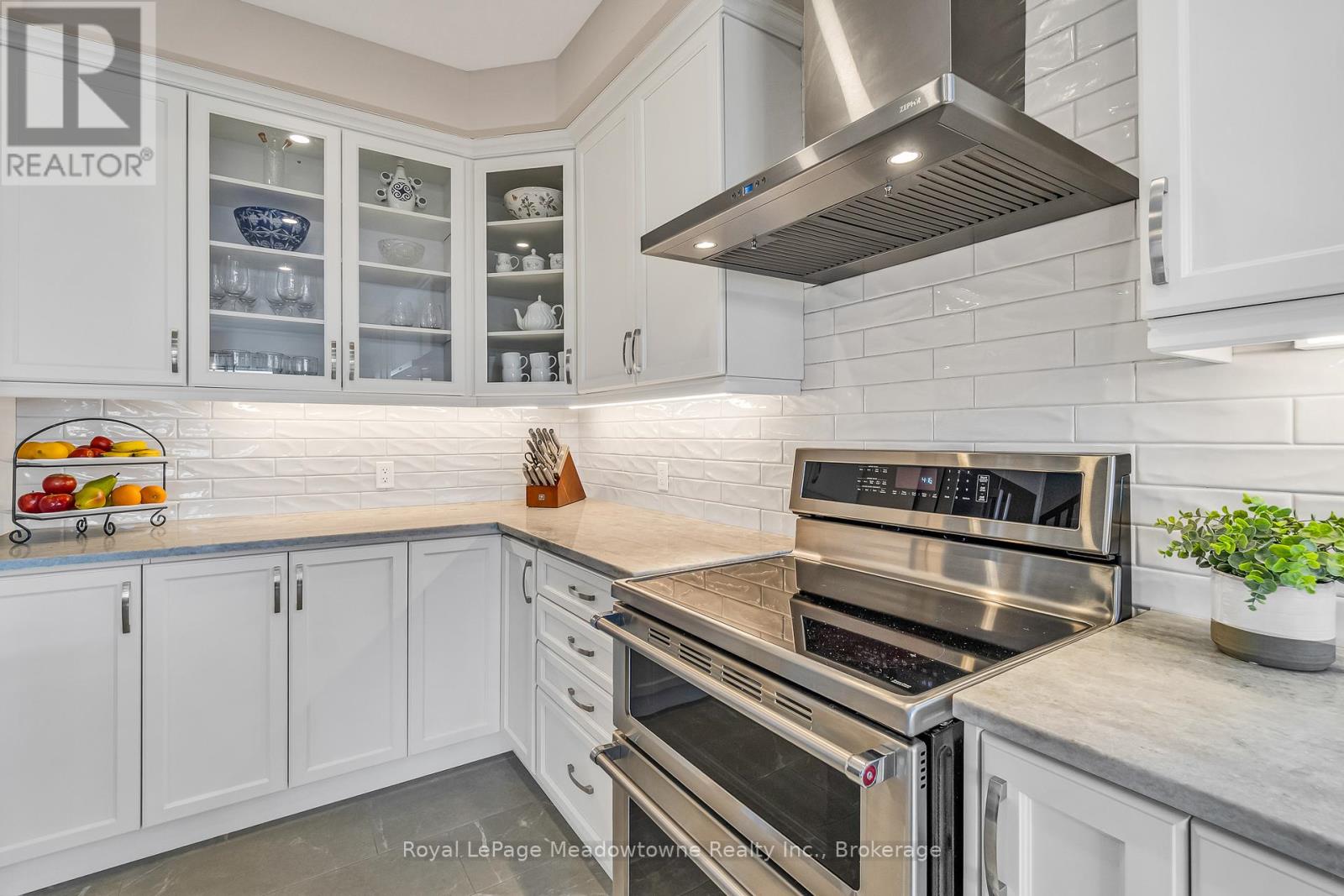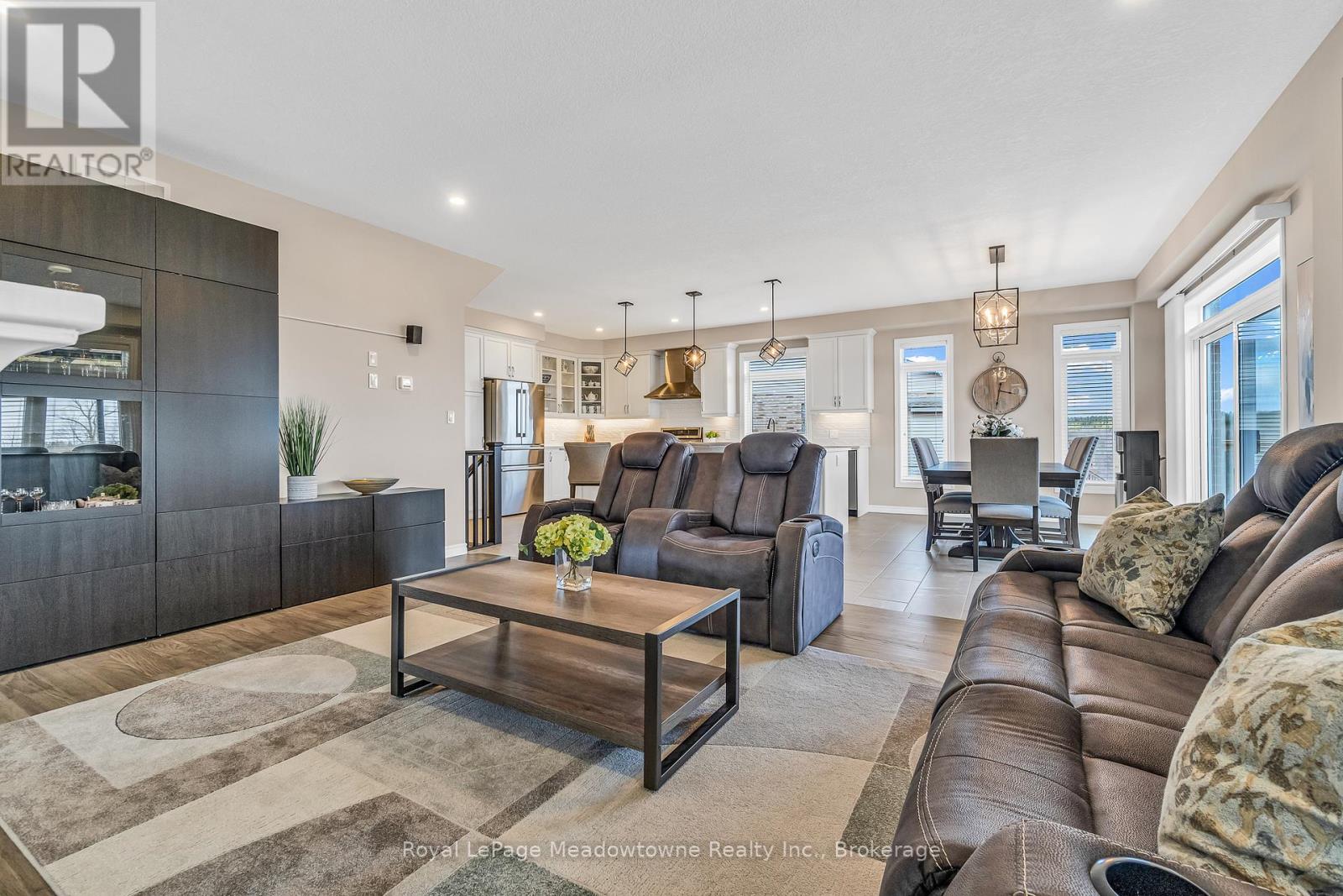 Perched proudly on a premier corner of Norma Crescent, this custom-built Reid's Home is a rare find, blending high-quality construction on an oversized pie-shaped lot that backs onto the lush greenspace & park. The home is designed for those who love to entertain. The main level boasts 9ft ceilings and a spacious 2500+ sq. ft. layout. The gourmet kitchen is a showstopper, featuring: Crisp white cabinetry & subway tile backsplash, premium Bosch S/S appliances & sleek granite counters, massive center island and breakfast bar that seamlessly flows into the family room, anchored by a cozy gas fireplace and views of the forest beyond. Retreat upstairs to a primary suite that feels like a high-end hotel. Enjoy large windows overlooking the trees, a walk-in closet with a laundry chute, and a spa-like ensuite featuring double sinks, a corner jet tub, and a walk-in glass rain shower. Three additional generously sized bedrooms provide plenty of space for family, guests, or a dedicated home office. The finished walk-out basement is the ultimate space. With 9ft ceilings, a full bath, and a separate entrance, it's perfect for a media room, gym, or guest suite. But the real magic happens outdoors. Step out from the dining room onto the 30x10 balcony for panoramic views, or head down to the extensive paver patio. This is no ordinary backyard- it's a culinary oasis featuring: a custom pizza oven and built-in grill station, prep area with sink, beverage fridge & ample storage, a fenced yard with a large powered storage shed. From the heated driveway (no more shoveling), to the quick access to hiking trails and the proximity to Guelph Lake, this home is a haven for nature lovers. Whether you're hosting a summer pizza party or enjoying a quiet morning stroll through the conservation trails, this property offers a level of convenience and sophistication that is hard to match. Don't settle for the ordinary. Come home to quality, nature, and the perfect space to gather. (id:64974)