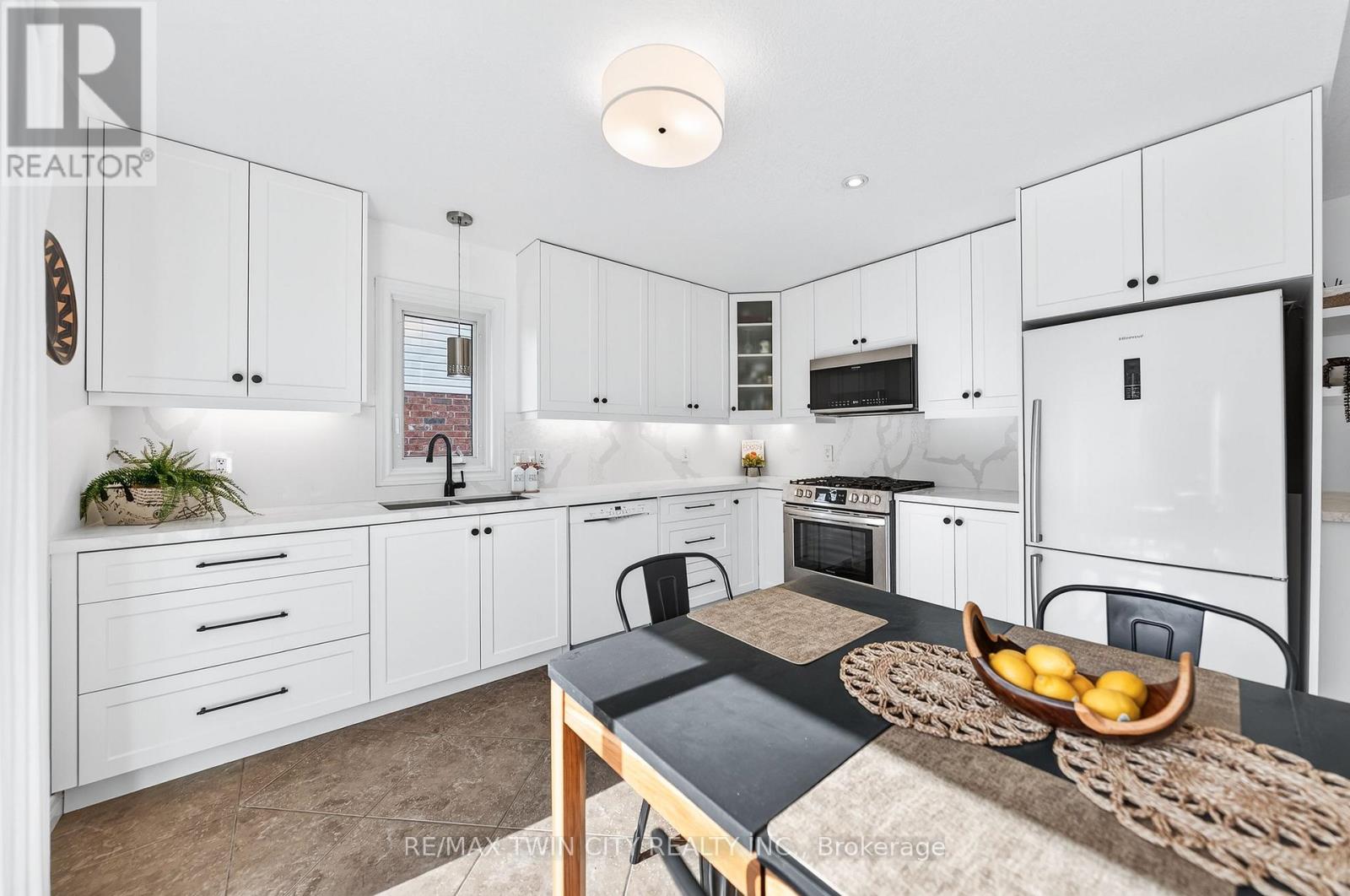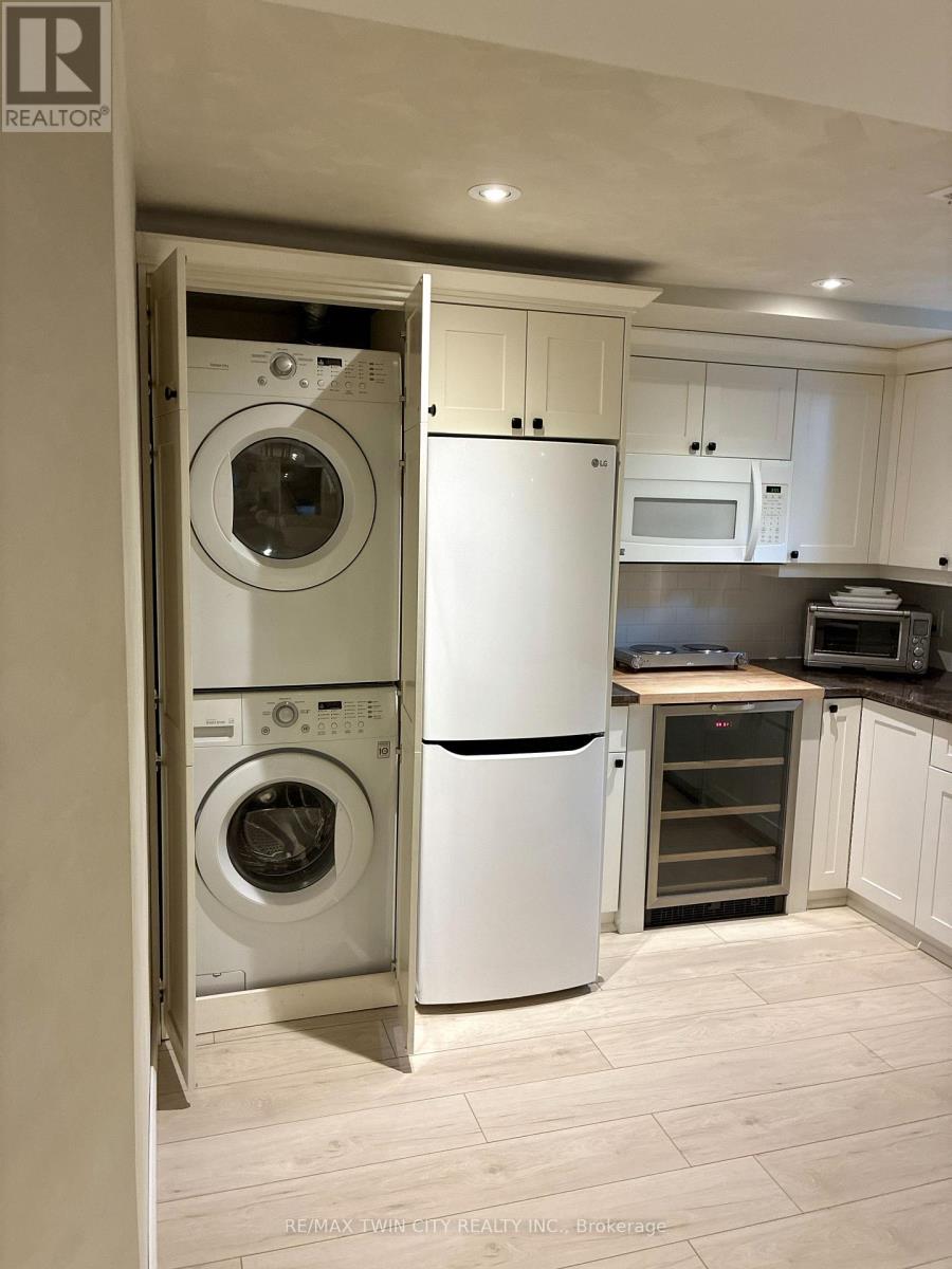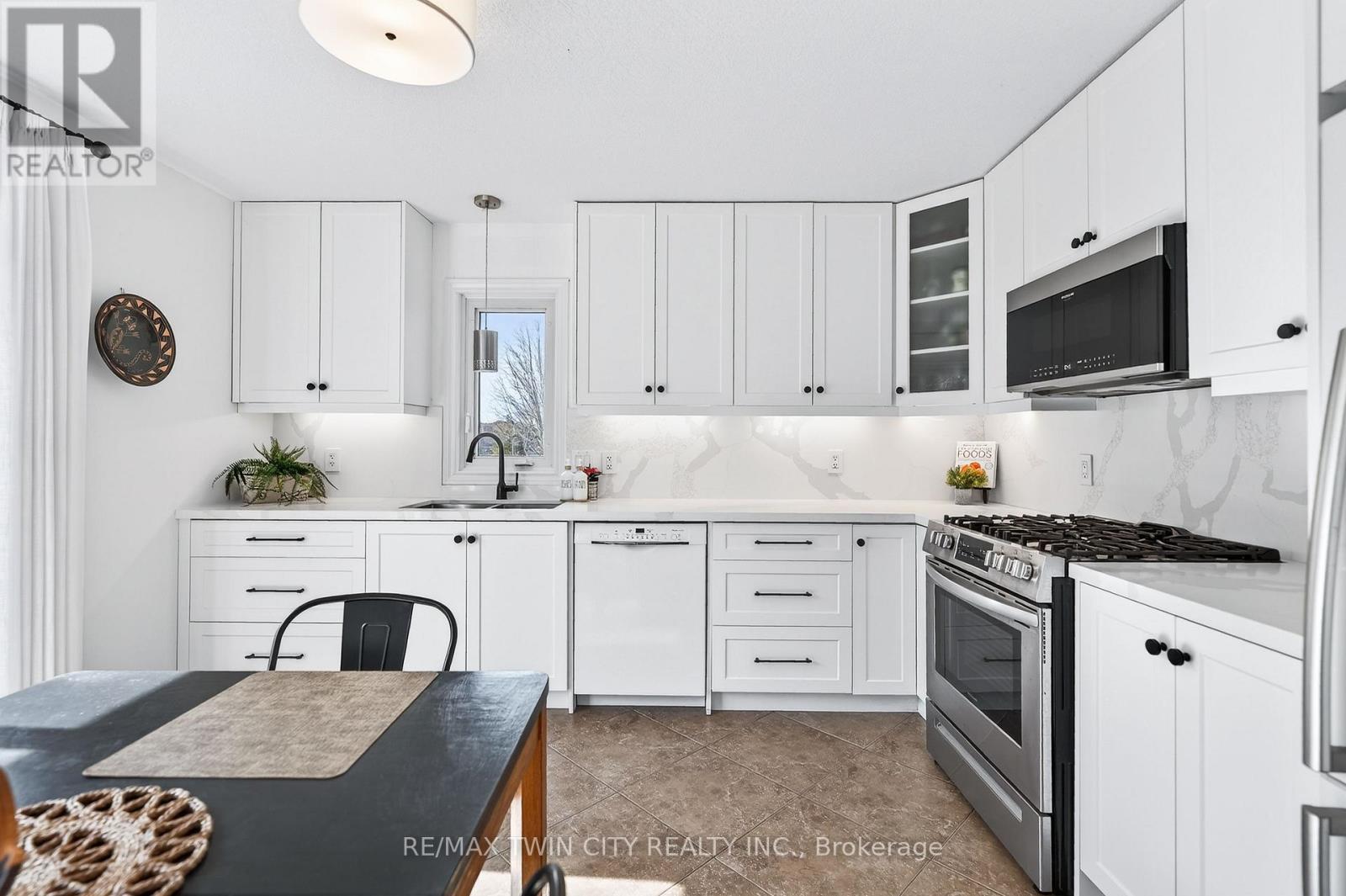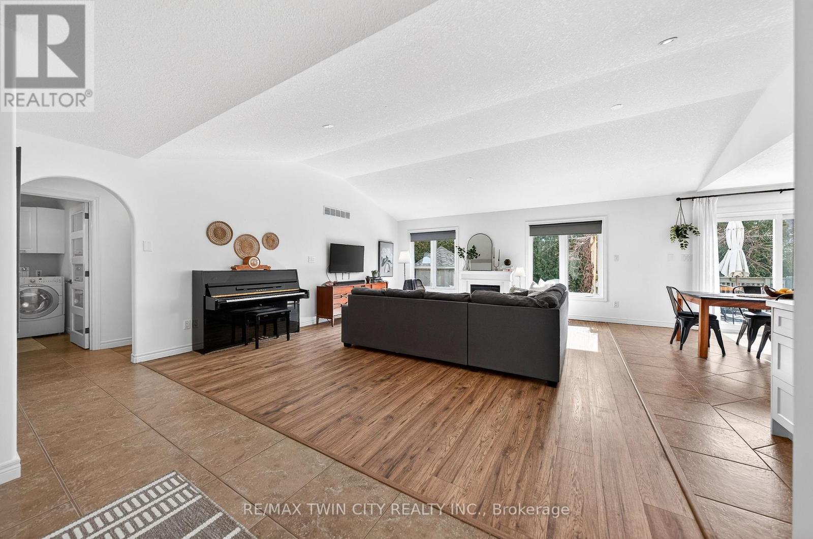 Often sought & rarely found-welcome to 75 Schneller Drive in Baden, an exceptional executive bungalow offering 2,930+ SF of beautifully finished living space with 2+2 bedrms, 3 full bathrms, & a fully finished lower level with a private in-law suite-ideal for multi-generational living or extended family. This impressive home combines generous space, modern finishes, & a private setting in a quiet Baden neighbourhood. Located across from parkland with greenspace views, the home features a bright open-concept layout & spacious great rm with vaulted ceilings & laminate flooring. The updated kitchen offers quartz counters & backsplash, under-cabinet lighting, premium appliances, integrated dining area & bonus servery. Sliding doors lead to the back deck & private backyard. The primary suite features vaulted ceilings, dual closets including a walk-in closet, & a spa-like 5-pc ensuite with dual sinks, quartz counters & tub/shower combo. The main level also includes a second spacious bedrm, updated 4-pc main bathrm, & convenient laundry/mudrm with basement access & side entry to the garage. The finished lower level offers excellent additional living space with a private in-law suite featuring a kitchenette with appliances, stackable laundry area, 2 bedrms, full 4-pc bathrm, & lrg rec rm with tray ceiling-ideal for extended family or guests. Laminate & tile flooring, pot lights, designer light fixtures & custom window coverings are found throughout, along with many recent updates. Outdoor living is equally appealing with a private, fully fenced backyard surrounded by mature trees. The lrg deck is perfect for relaxing or entertaining & the yard includes a storage shed. Located on a quiet family-friendly street in the charming community of Baden, close to downtown shops, cafés & amenities. Just 10 minutes to Costco & The Boardwalk shopping district with restaurants, groceries & services. Rebel Creek Golf Club nearby with easy access to Waterloo, Kitchener & surrounding areas. (id:64974)