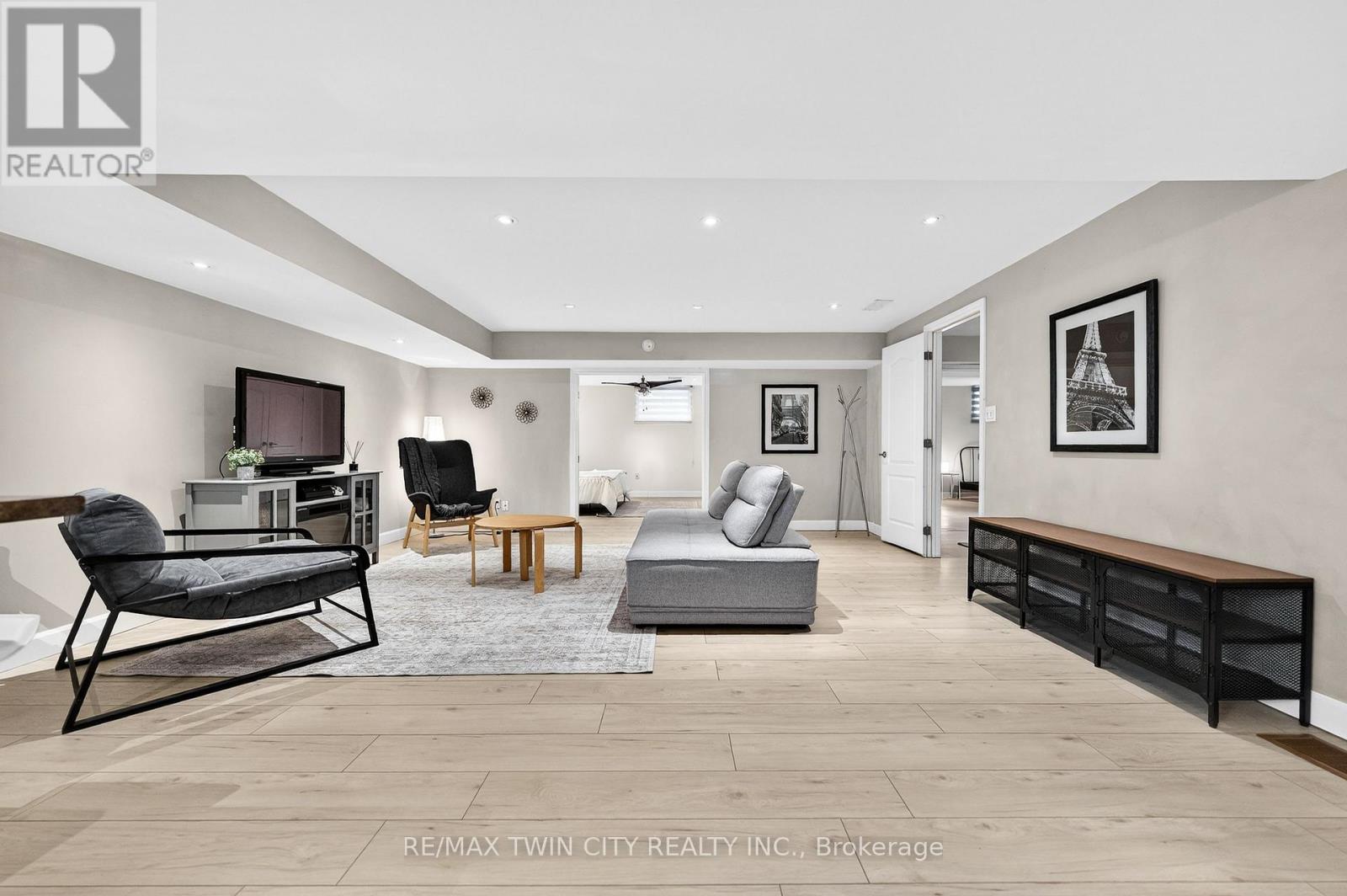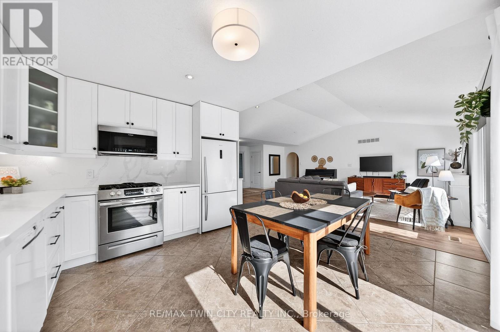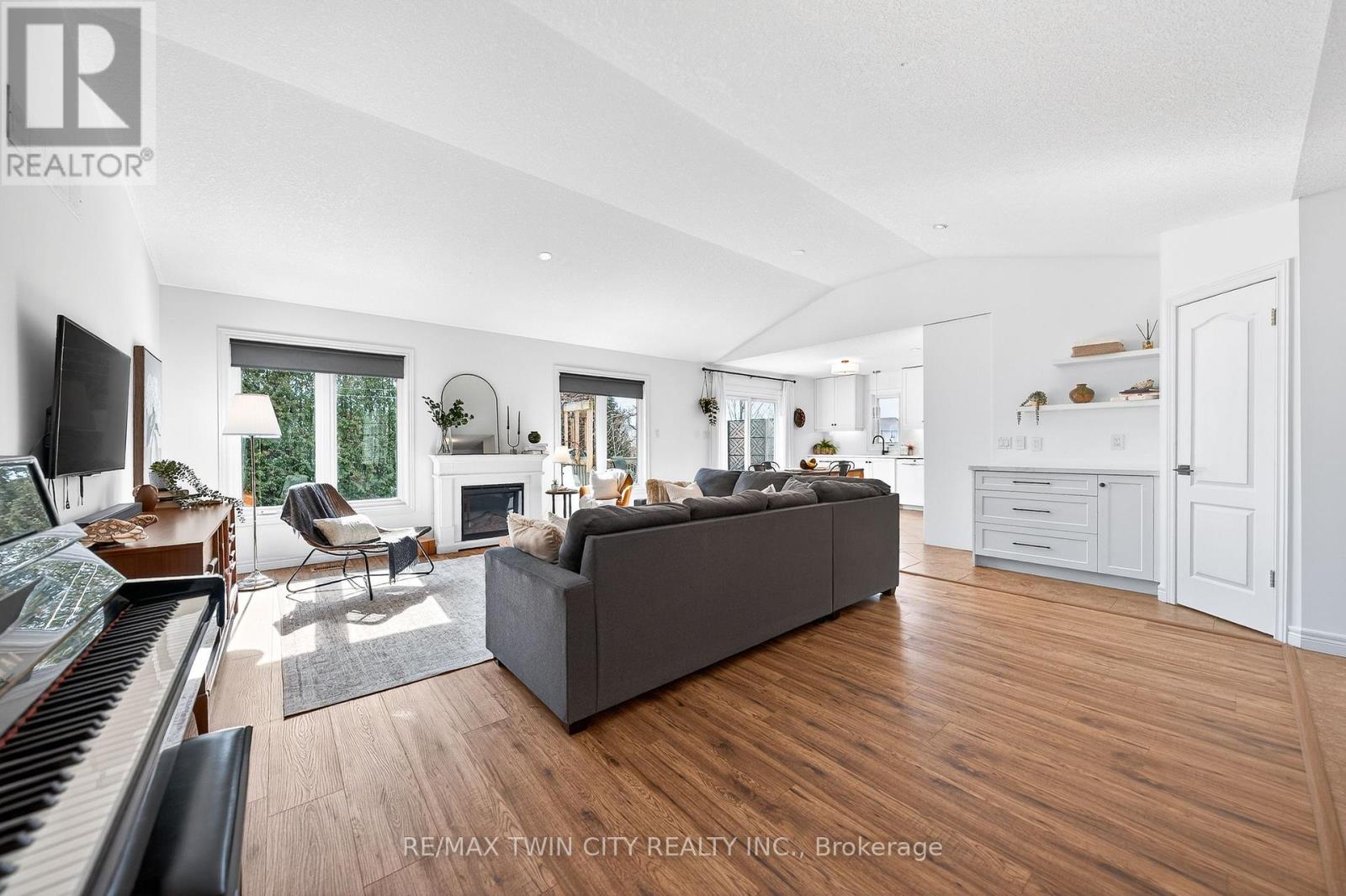 Often sought & rarely found-welcome to 75 Schneller Drive in Baden, an exceptional executive bungalow offering 2,930+ SF of beautifully finished living space with 2+2 bedrms, 3 full bathrms, & a fully finished lower level with a private in-law suite-ideal for multi-generational living or extended family. This impressive home combines generous space, modern finishes, & a private setting in a quiet Baden neighbourhood. Located across from parkland with greenspace views, the home features a bright open-concept layout & spacious great rm with vaulted ceilings & laminate flooring. The updated kitchen offers quartz counters & backsplash, under-cabinet lighting, premium appliances, integrated dining area & bonus servery. Sliding doors lead to the back deck & private backyard. The primary suite features vaulted ceilings, dual closets including a walk-in closet, & a spa-like 5-pc ensuite with dual sinks, quartz counters & tub/shower combo. The main level also includes a second spacious bedrm, updated 4-pc main bathrm, & convenient laundry/mudrm with basement access & side entry to the garage. The finished lower level offers excellent additional living space with a private in-law suite featuring a kitchenette with appliances, stackable laundry area, 2 bedrms, full 4-pc bathrm, & lrg rec rm with tray ceiling-ideal for extended family or guests. Laminate & tile flooring, pot lights, designer light fixtures & custom window coverings are found throughout, along with many recent updates. Outdoor living is equally appealing with a private, fully fenced backyard surrounded by mature trees. The lrg deck is perfect for relaxing or entertaining & the yard includes a storage shed. Located on a quiet family-friendly street in the charming community of Baden, close to downtown shops, cafés & amenities. Just 10 minutes to Costco & The Boardwalk shopping district with restaurants, groceries & services. Rebel Creek Golf Club nearby with easy access to Waterloo, Kitchener & surrounding areas. (id:64974)