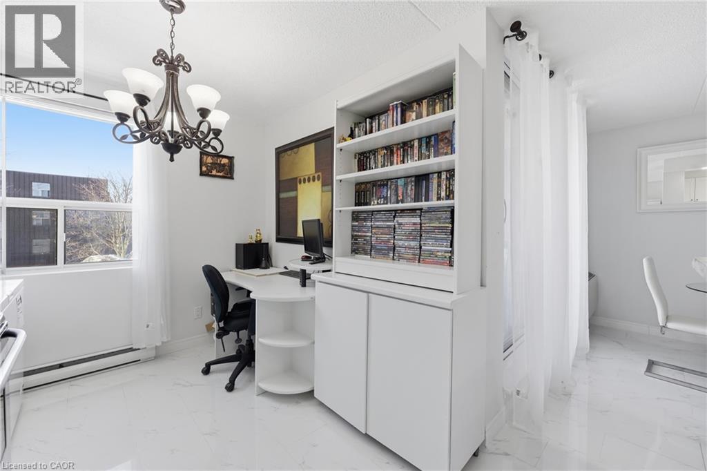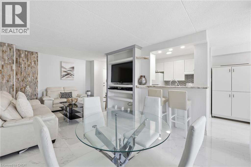Welcome to 75 Silvercreek Parkway North, Unit 308, located in Guelph's West End. This bright, spacious, and updated corner unit is move-in ready. The two-bedroom, one-bathroom home features a fresh neutral paint palette and carpet-free living with luxurious vinyl plank and tile flooring throughout. The large living room leads to a private covered balcony with sliding doors, and large windows in every room provide ample natural light. The kitchen offers a sleek, contemporary design with pot lights, abundant cabinetry, a beautiful tile backsplash, and recently updated appliances (2024/2025). The kitchen flows seamlessly into the dining room, perfect for family dinners and entertaining.The primary bedroom includes a walk-in closet, and this unit offers plenty of storage throughout. For added convenience, the unit is located near the elevator and includes a dedicated parking spot close to the building entrance, along with ample visitor parking.Ideally situated near schools, parks, restaurants, the Hanlon Parkway, and the University of Guelph, this property is an excellent opportunity for first-time buyers, young families, investors or those looking to downsize.This is one unit not to be missed! (id:64974)