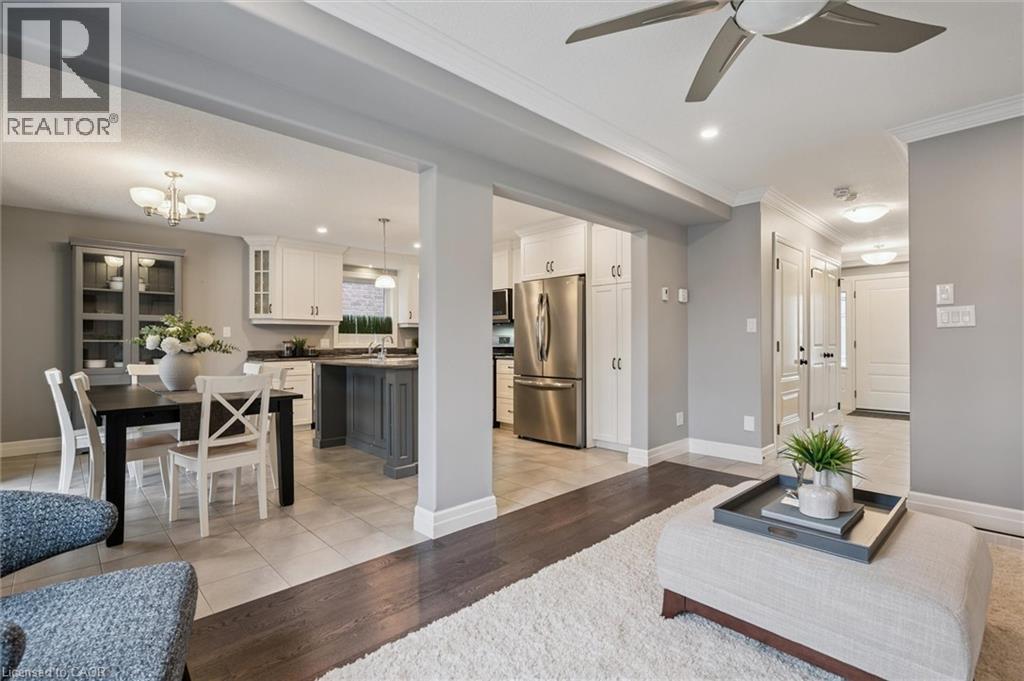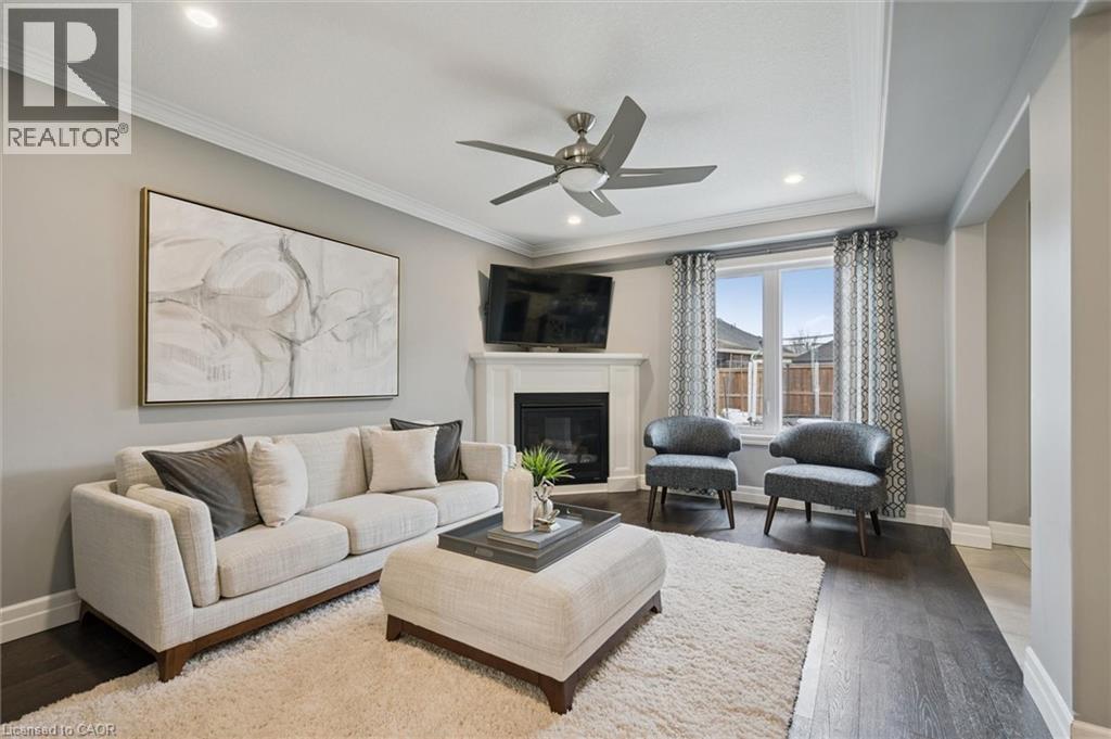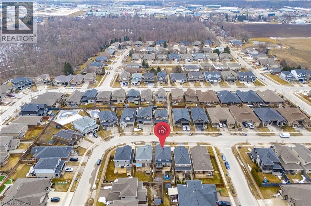 Welcome to this wonderful 3+ bedroom 4 bathroom Family home built by Paradigm (Elmira) Homes in the sought after South Parkwood Estates neighbourhood! Lovely curb appeal with a double asphalt driveway and 1.5 car garage. A nice sized covered porch highlighted by a large flowerbed, is very inviting. This home was built in 2016 and ticks off a lot of boxes for many potential Buyers. The clean, fresh and neutral palette of paint provides a modern atmosphere with a sense of warmth. On the main floor you have a powder room at the front with a guest closet and easy access to the garage. A bright living room offers a gas fireplace, large window and is open to the kitchen and dining area. The custom kitchen boasts an island/breakfast bar and plenty of counter and cupboard space. You have plenty of space in the dining area to entertain your Family and Friends and a walkout to the large deck, makes barbequing outside a breeze! Enjoy the canopy for shade on sunny days or as a covered deck when it's raining. The back deck is the perfect spot to appreciate your completely fenced in private yard with a corner garden shed, flowerbeds and stunning sunsets! Back inside the upper level has a spacious primary with 4 piece ensuite bathroom (walk-in shower) and a walk-in closet. There are two additional very generously sized bedrooms, laundry room and a 2nd 4 piece bathroom on this level. The basement is finished with a rec. room/sitting area, 3 piece bathroom and a bedroom or den. This area could easily be opened up to have a larger recreation room. You couldn't ask for a better neighbourhood to live in. Steps to walking trails through the forest or around the pond as well as parks, pickle ball and basket ball court. This home is situated close to city transit, schools and shopping. Don't miss out on the beauty and book your appointment today! (id:64974)